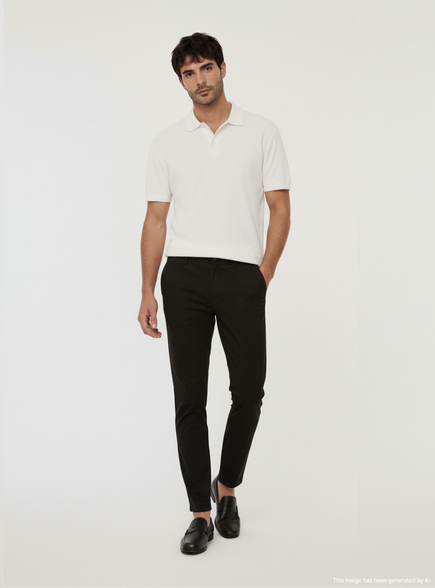 Pánské chino kalhoty moderního designu, charakterizované skinny siluetou, která zvýrazňuje postavu. Jednobarevný vzhled dodává všestrannost, ideální pro každou příležitost, zatímco praktické boční a zadní kapsy přidávají funkčnost. Regular fit s předním zapínáním zajišťuje pohodlí a přiléhavost, což dělá tyto kalhoty dokonalou volbou pro upravený a současný vzhled.