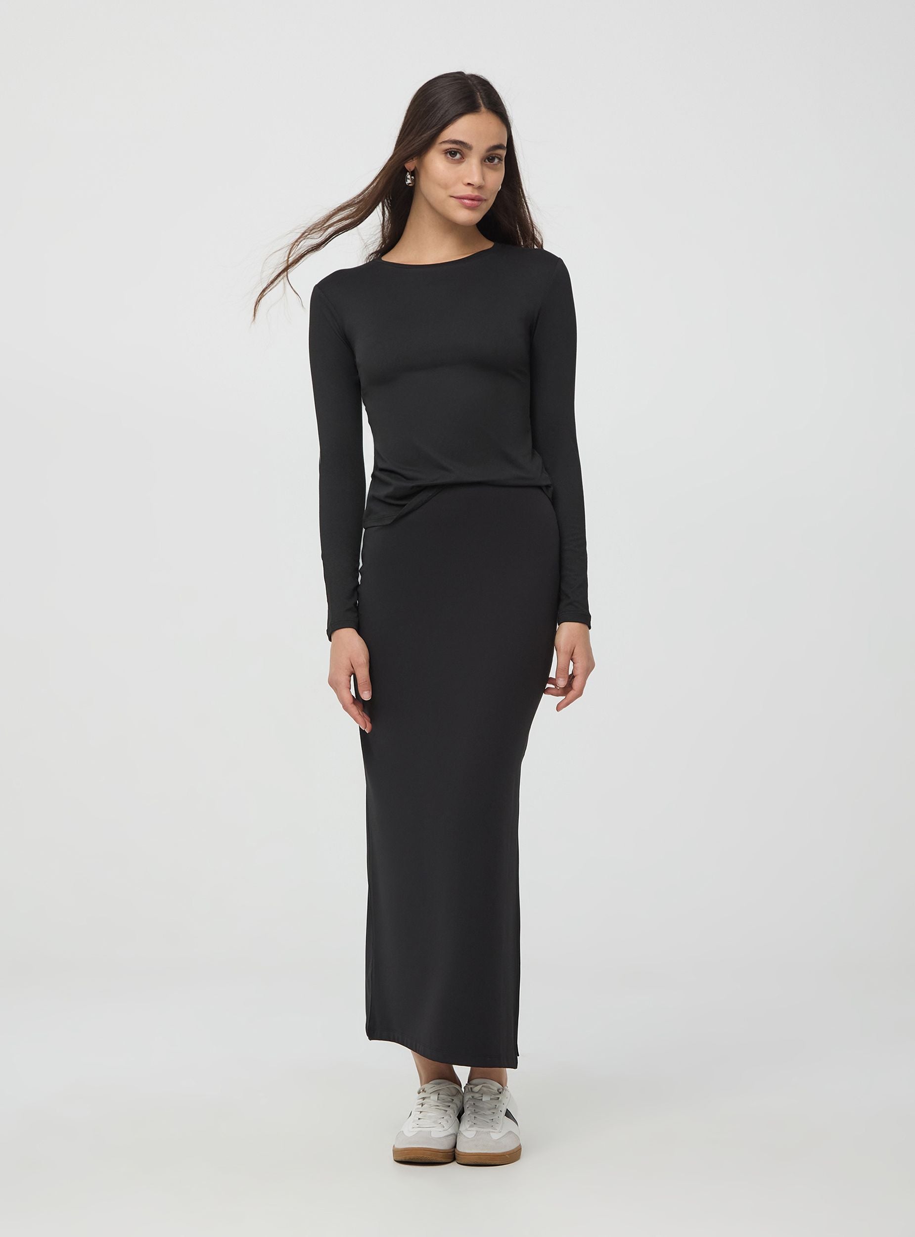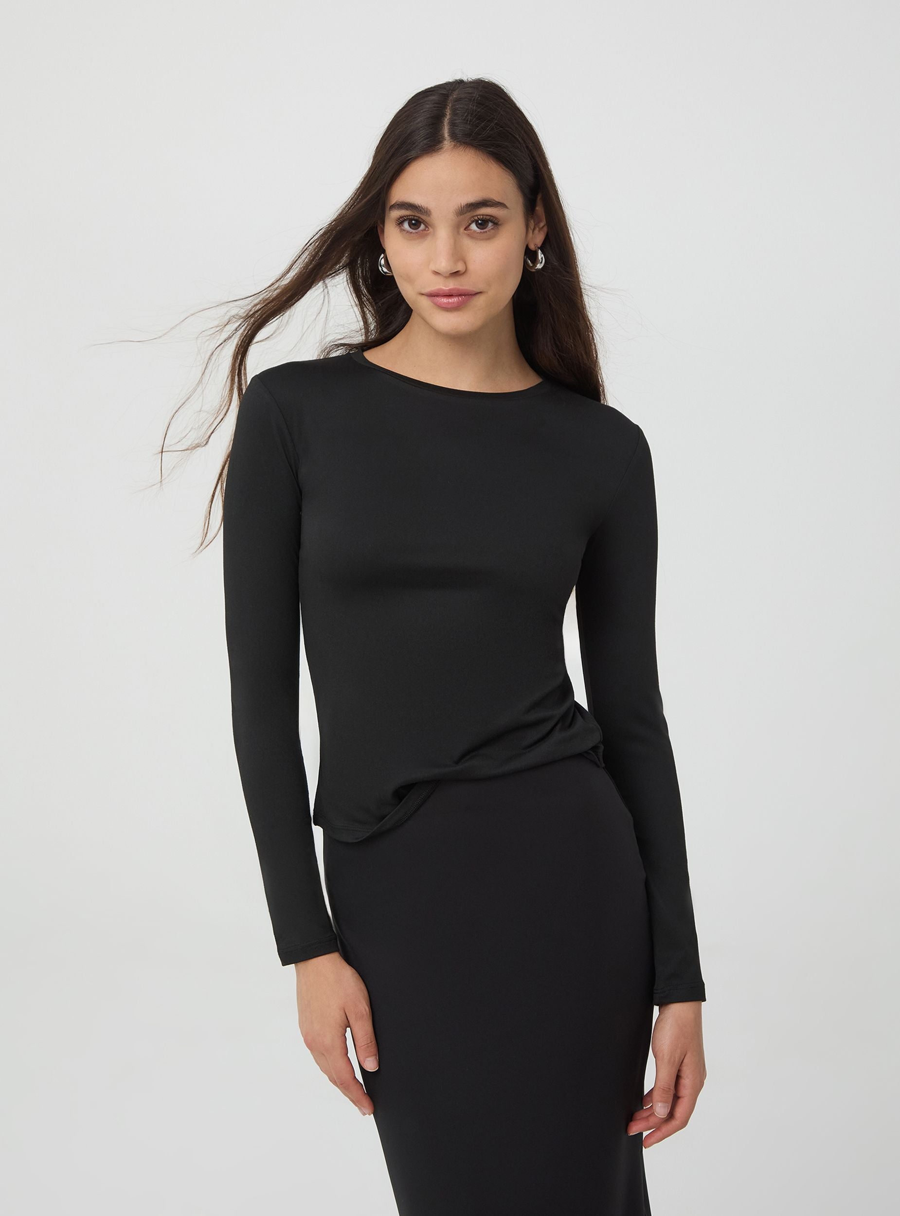 Dámské tričko s dlouhým rukávem a kulatým výstřihem, z jednobarevného elastického materiálu. Základní kousek, který se hodí k jakémukoli stylu a příležitosti. Regular fit. Toto tričko je nezbytným kouskem v šatníku každé ženy, ideální k nošení samostatně nebo jako základ pod sako, svetr nebo mikinu. Perfektní pro každodenní casual look, je vhodné do práce, na volný čas a venkovní aktivity. Její jednoduchost a všestrannost ji činí vhodnou pro každý styl a příležitost.