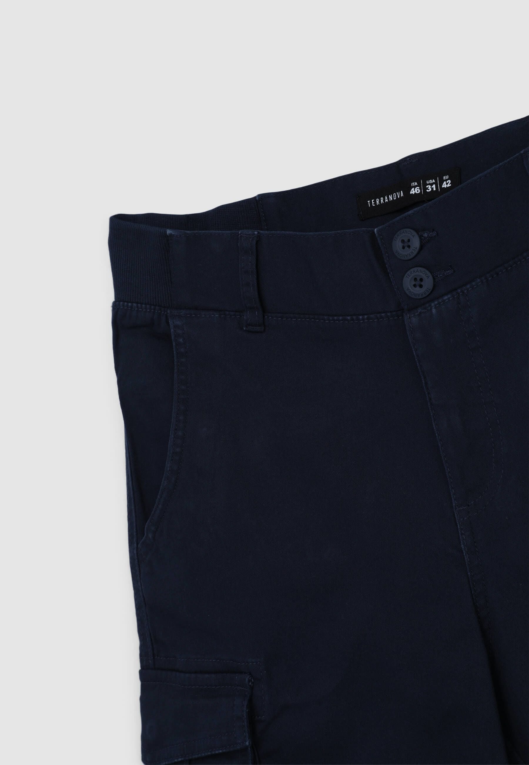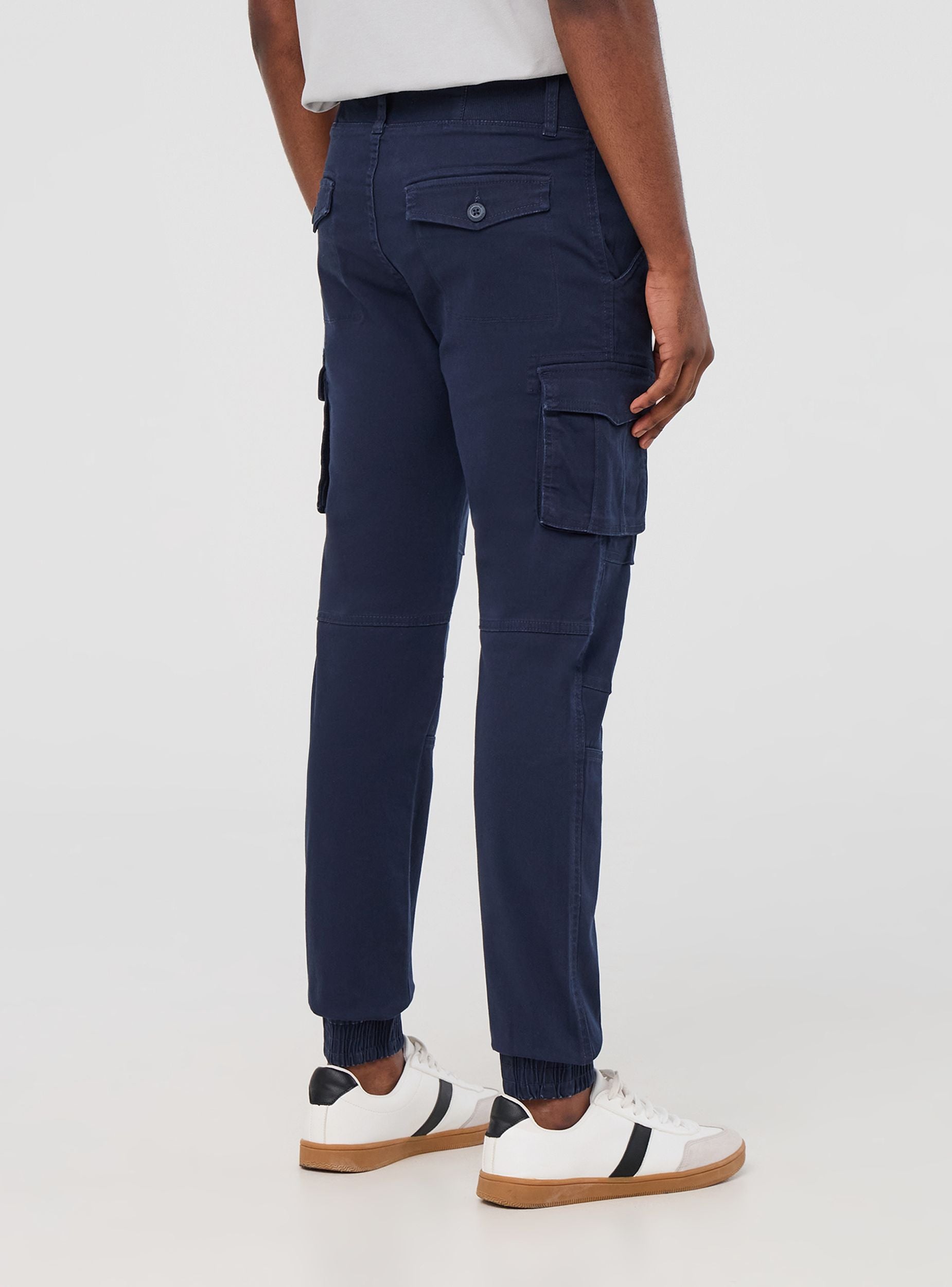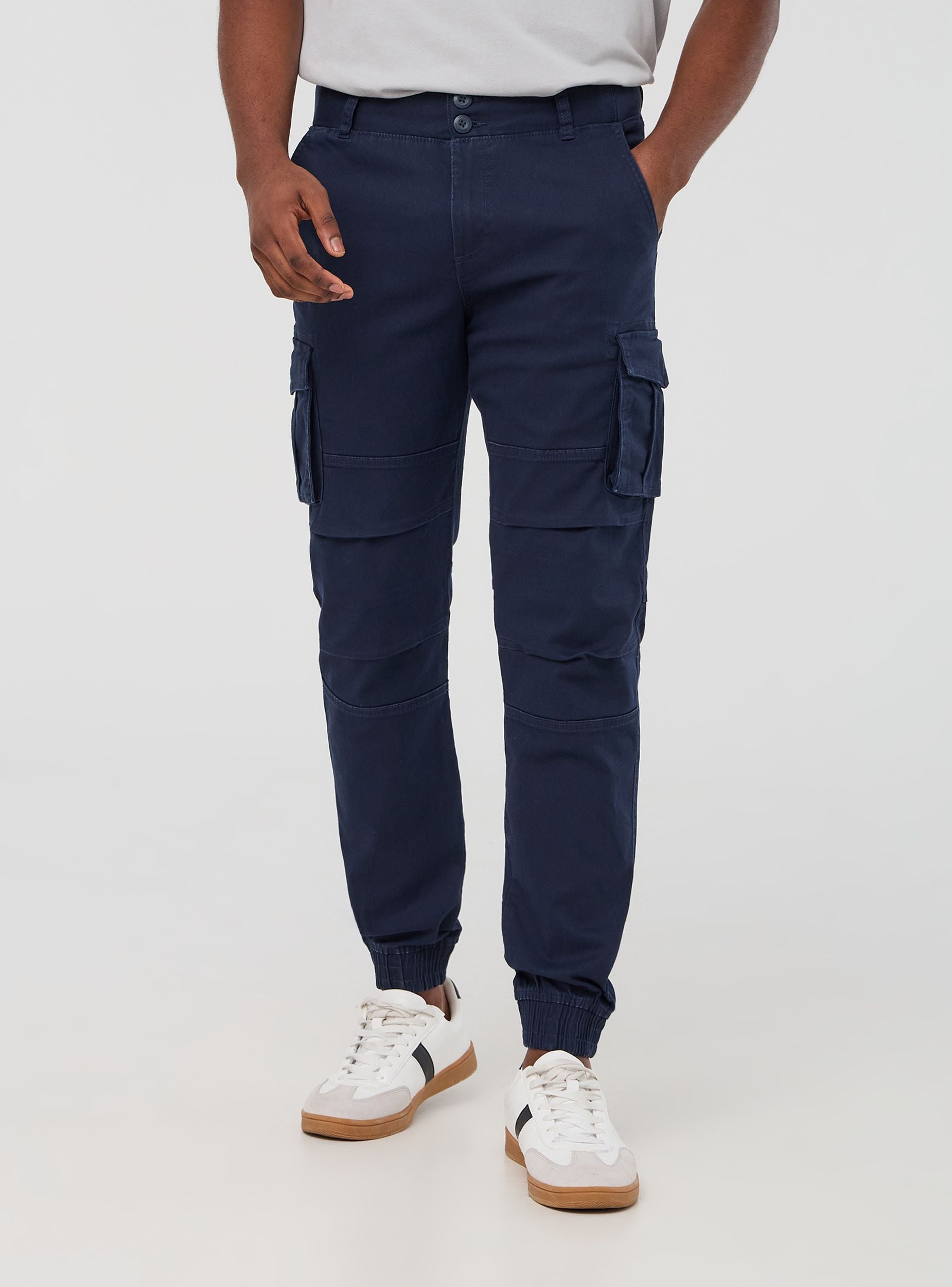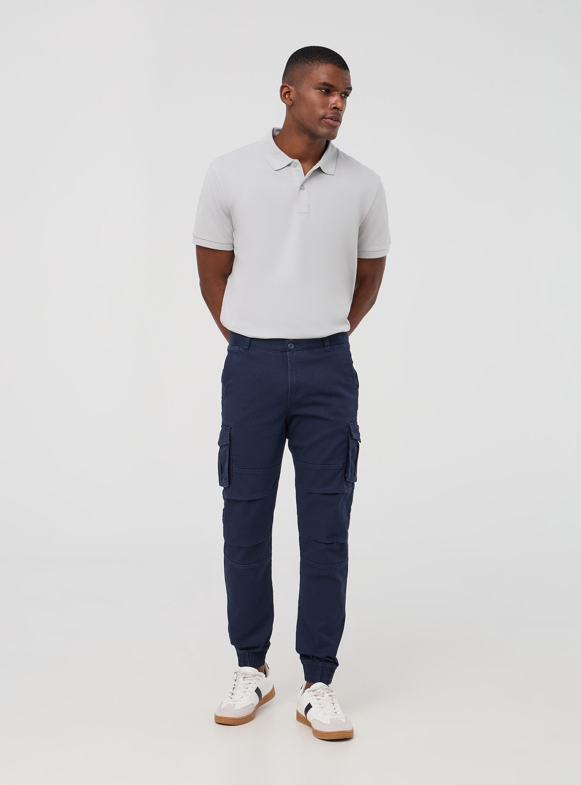 Pánské cargo kalhoty, ideální pro praktický a ležérní vzhled. Mají jednobarevný design, manžety na spodním okraji, zapínání na knoflíky a zip a prostorné boční a zadní kapsy pro větší funkčnost. Ideální na volný čas, hodí se k tričkům nebo mikinám pro pohodlné a všestranné outfity.Detaily
