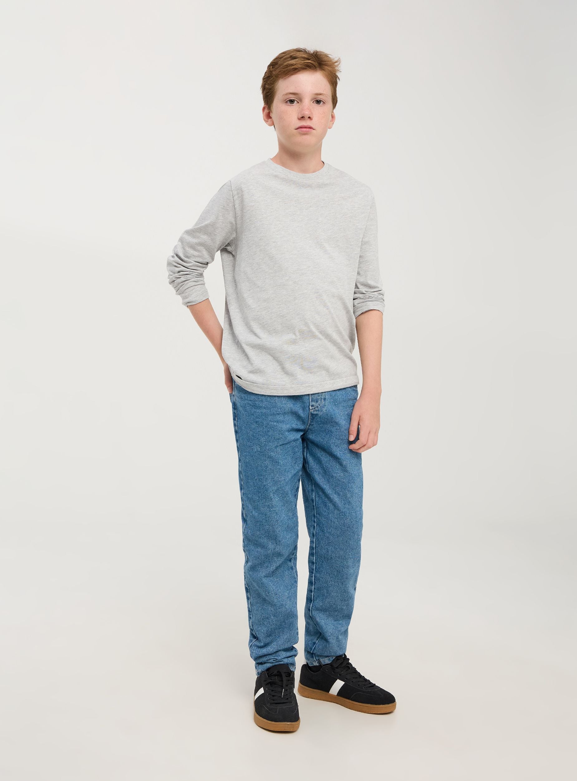 Balení 3 dětských triček s dlouhým rukávem a kulatým výstřihem, z jednobarevné bavlněné látky. Nezbytné základní kousky pro volný čas, které se snadno kombinují s jakýmkoli outfitem. Regular fit.Detaily
