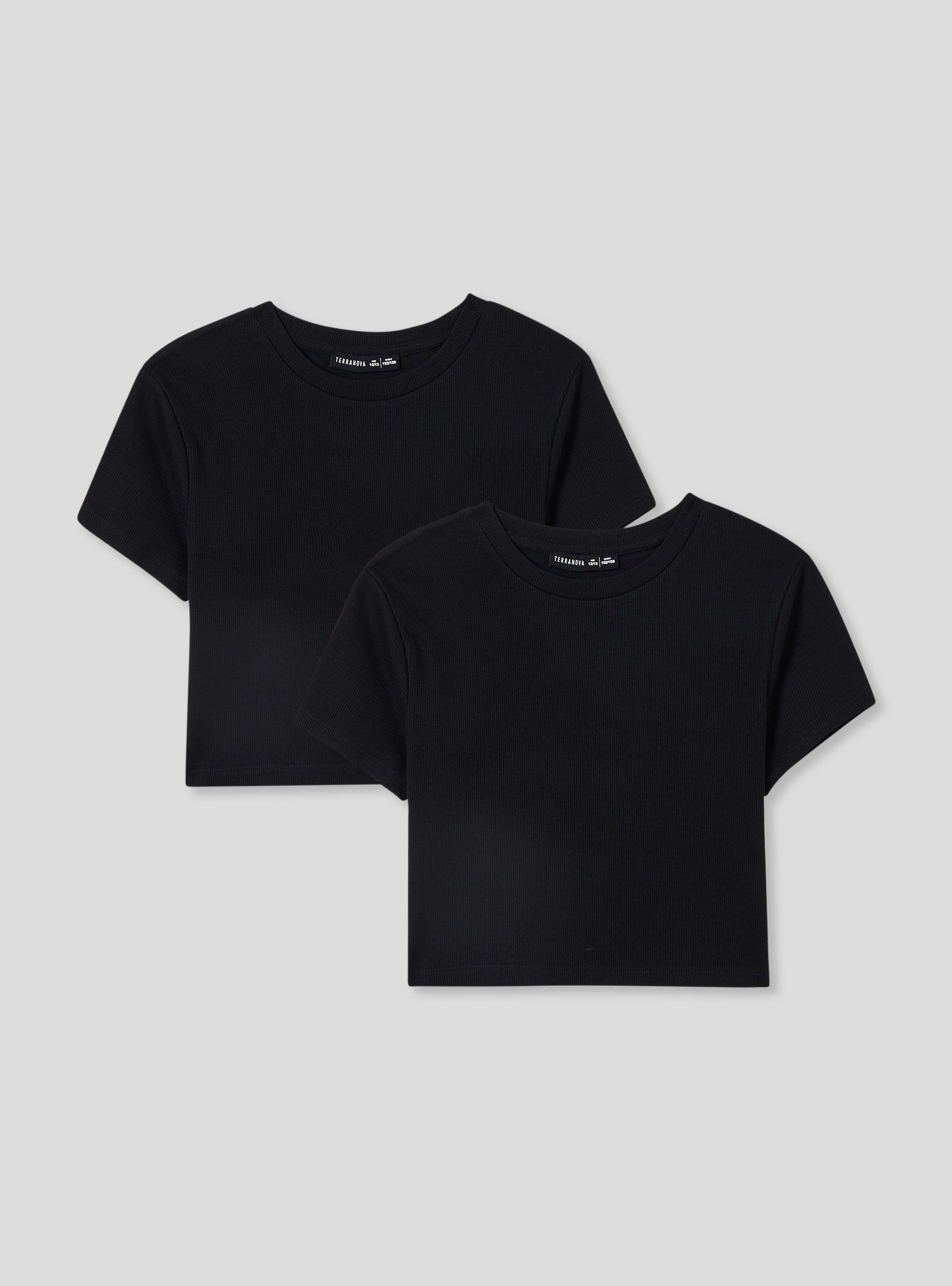 Sada složená ze 2 triček pro dívky, ideální pro vytváření ležérních a módních vzhledů. S krátkými rukávy, kulatým výstřihem a jednobarevným designem se tato žebrovaná trička vyznačují crop střihem, ideálním pro teplejší dny nebo pro sportovní a dynamický outfit. Komfort a styl zaručeny pro každou příležitost.Detaily