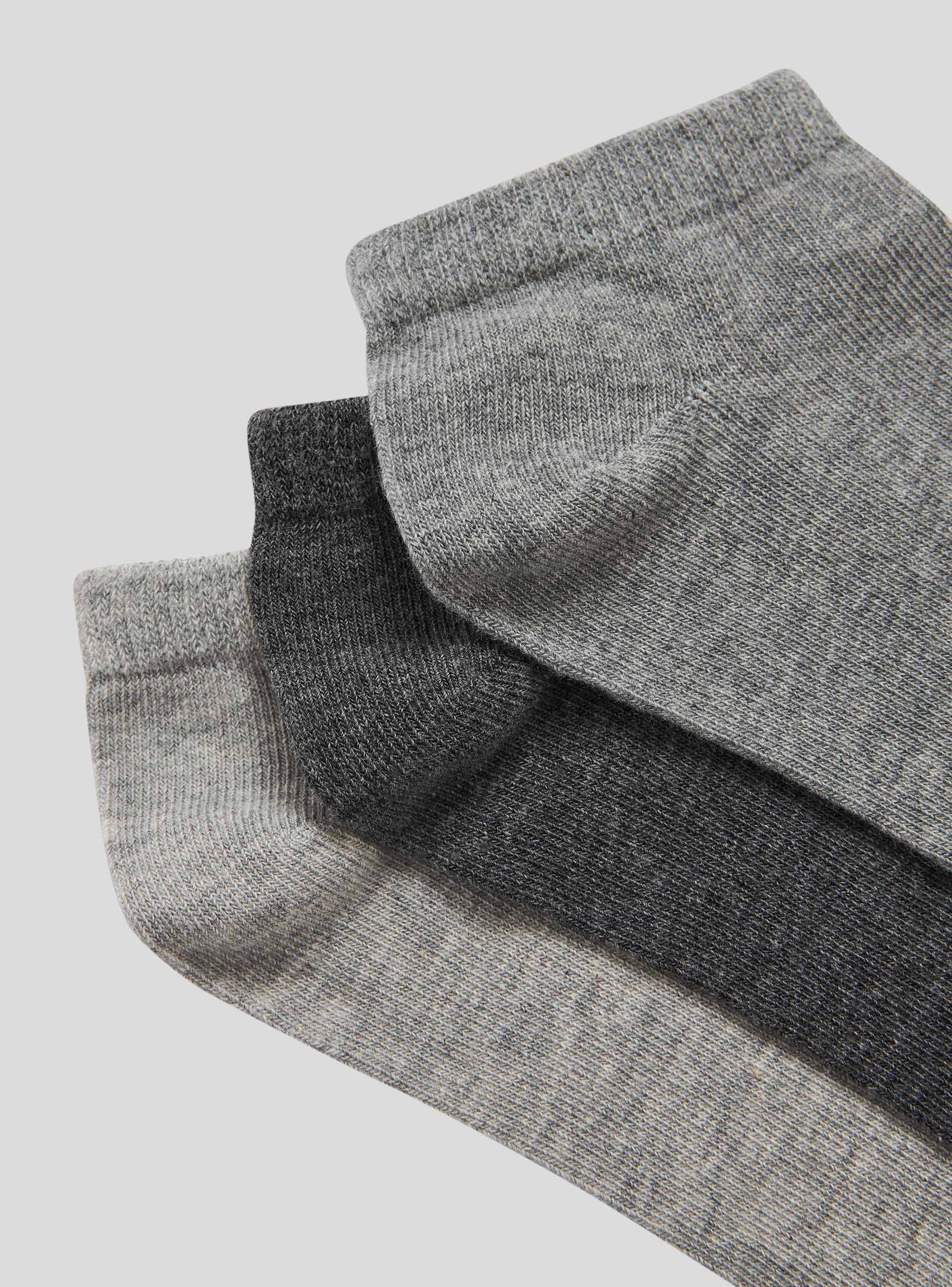 Balení obsahuje 3 páry krátkých dámských ponožek v jednobarevných odstínech šedé.Detaily