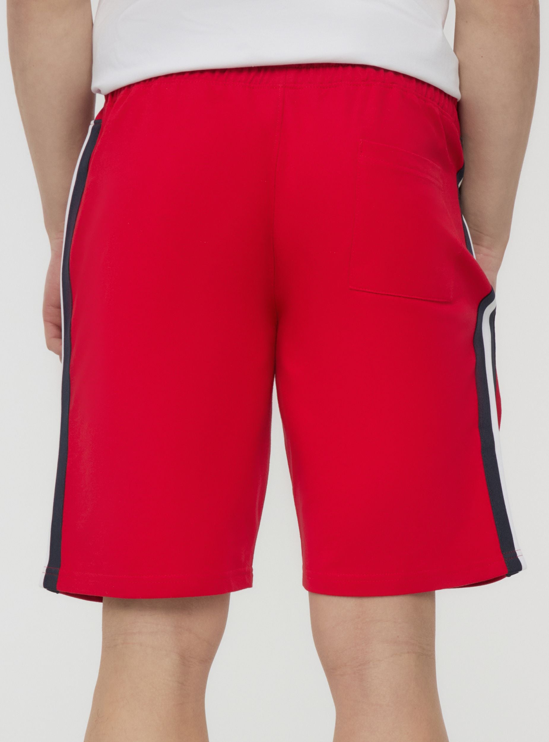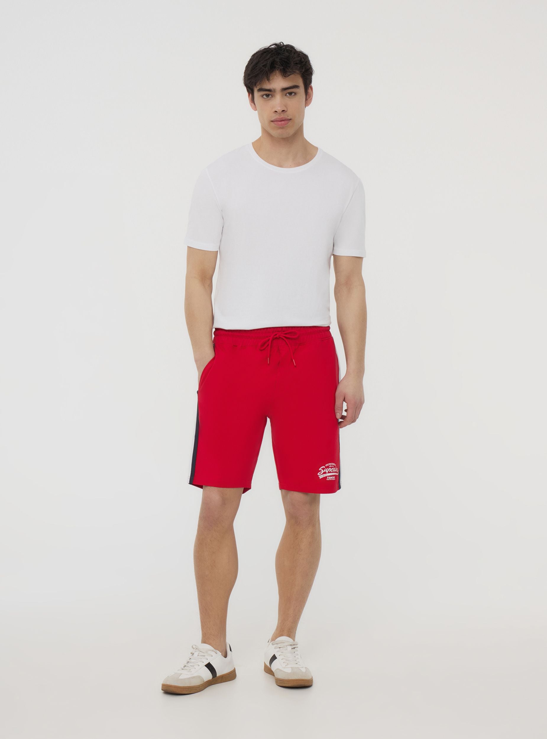 Pánské bermudy vyrobené z lehké tkaniny, ideální pro sportovní a dynamický vzhled, perfektní pro volný čas nebo fyzickou aktivitu. Mají regular fit, jsou zdobeny potiskem a bočními pruhy, které dodávají styl. Disponují bočními kapsami a jednou zadní kapsou, a mají stahovací šňůrku, což je činí všestrannou volbou pro ty, kdo hledají pohodlí a praktičnost.Detaily