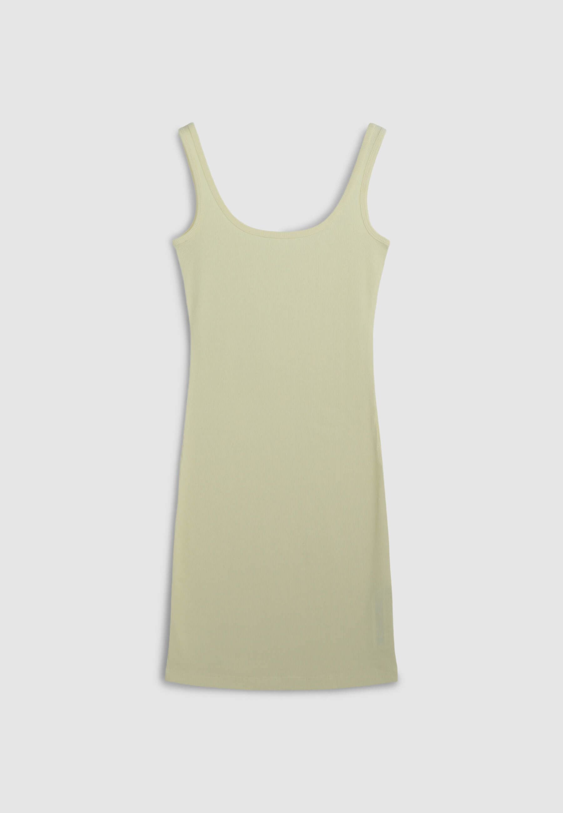 Dámské šaty s přiléhavým střihem ve stylu bodydress. Mají jednoduchou jednobarevnou barvu, která je činí univerzálními pro různé kombinace. Čtvercový výstřih dodává trendy a sofistikovaný vzhled, zatímco ramínka dokončují design a nabízejí minimalistický a rafinovaný vzhled. Tyto šaty jsou ideální jak na neformální příležitosti s lehkým sakem nebo otevřenou košilí, tak v elegantnějších kontextech, pokud je zkombinujete s vybranými doplňky a botami.Detaily
