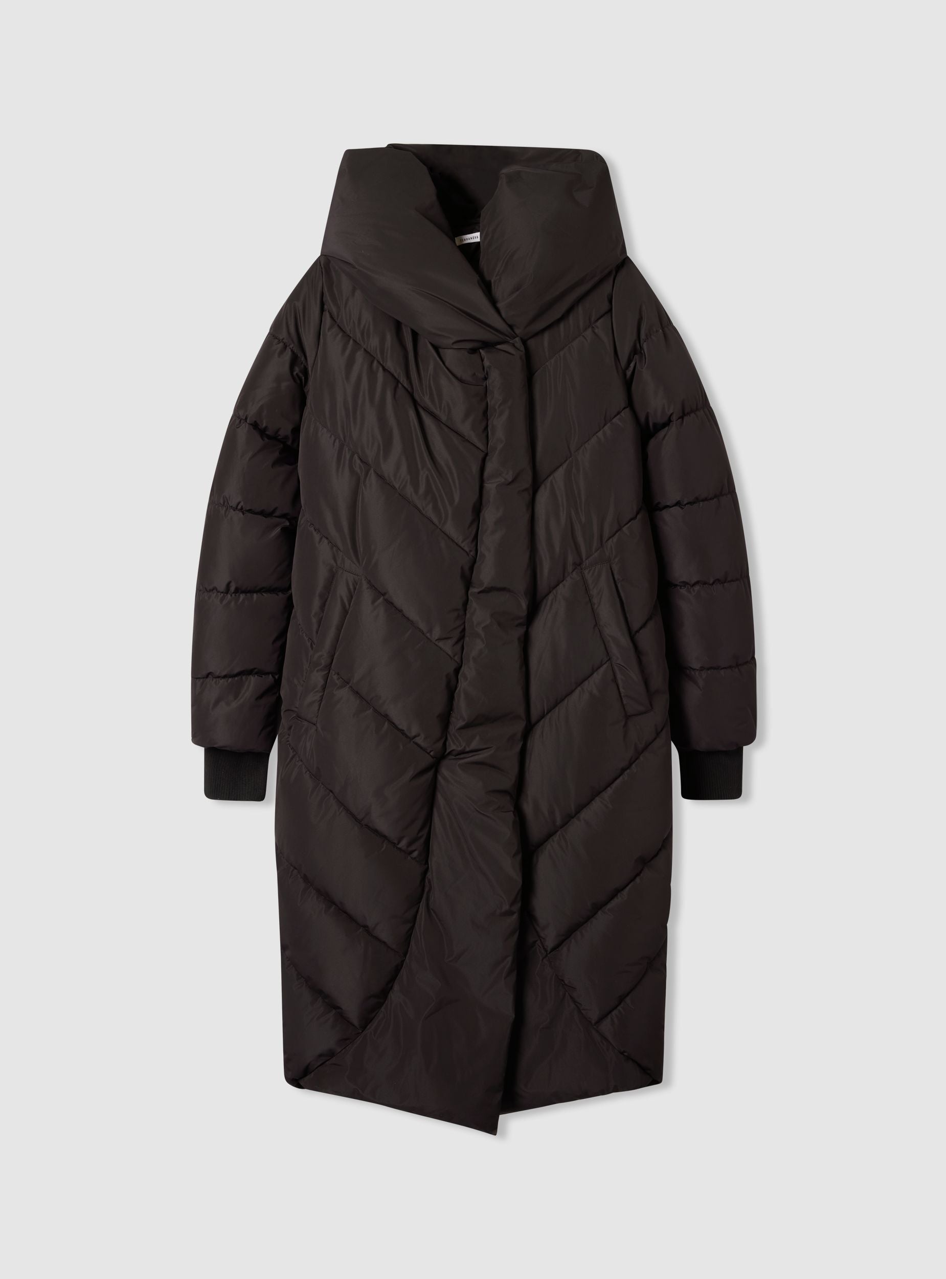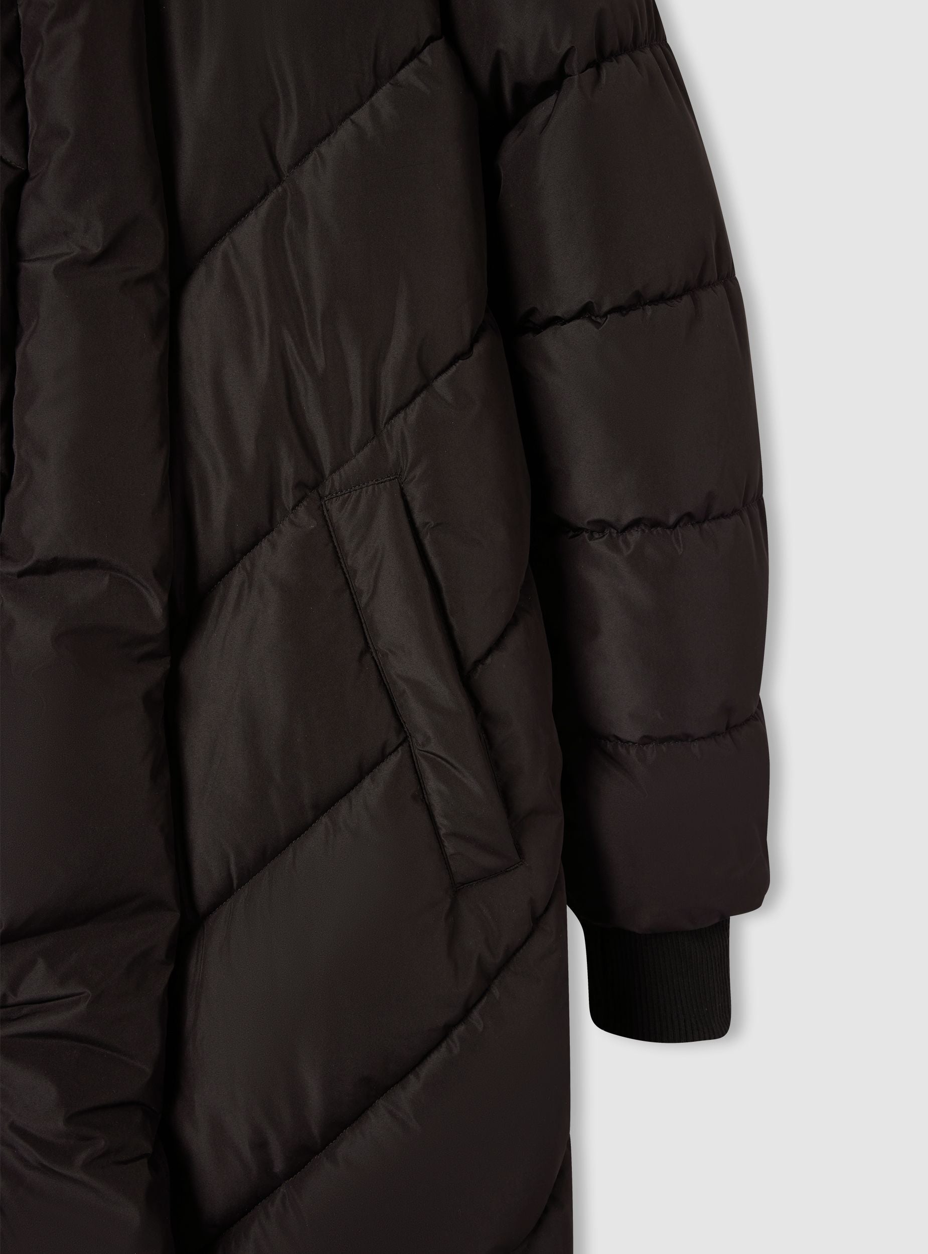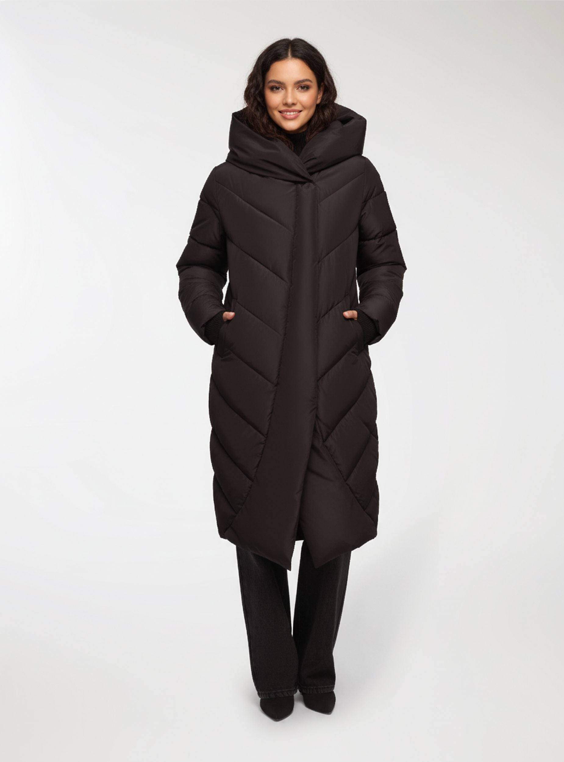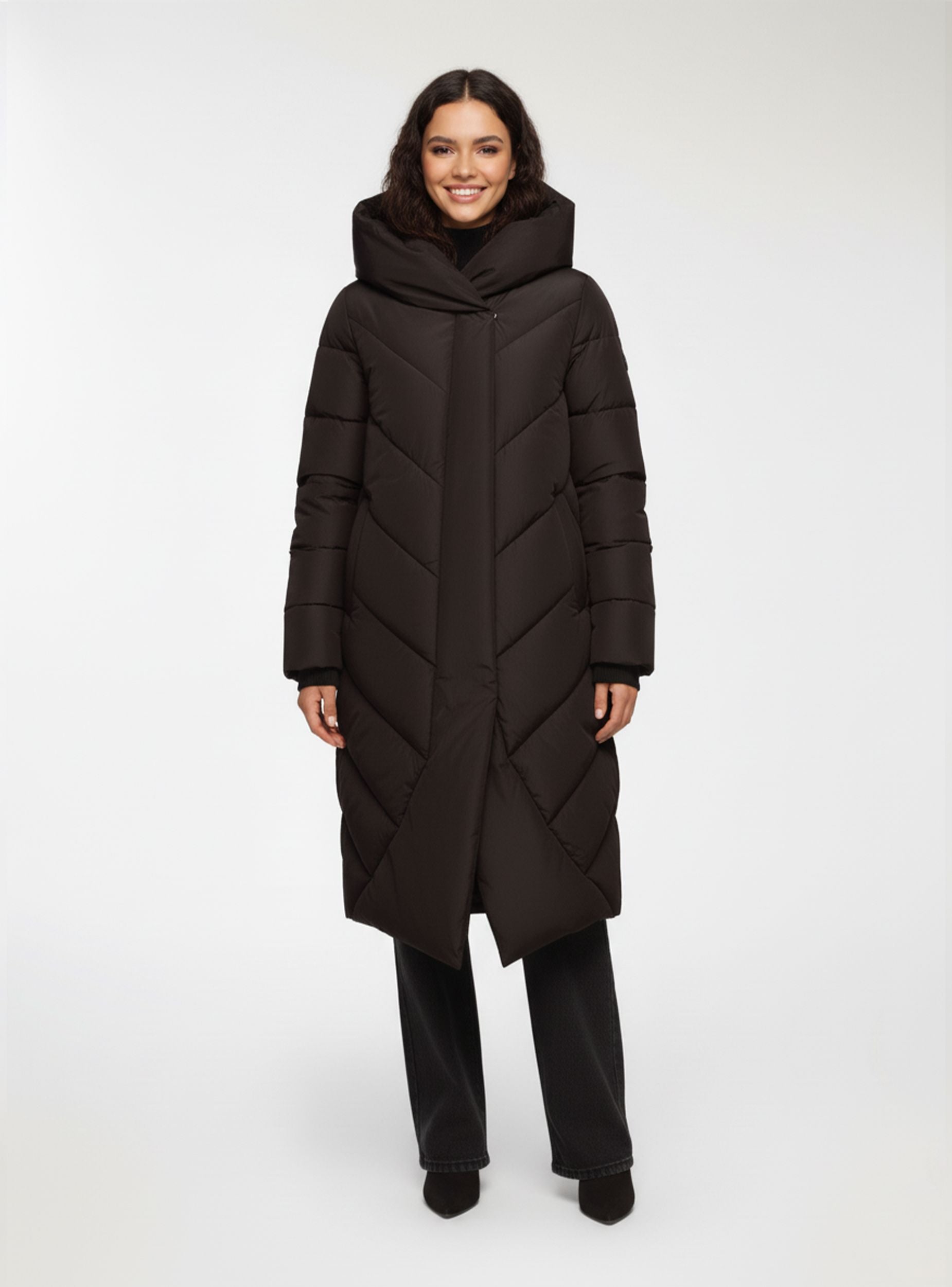Dlouhý dámský prošívaný kabát, ideální pro zvládání nejchladnějších měsíců s pohodlím a stylem. Prošívaný design opticky prodlužuje siluetu, zatímco integrovaná kapuce zajišťuje dodatečnou ochranu proti větru a dešti. Dlouhé rukávy s vnitřními manžetami nabízejí lepší tepelnou izolaci. Kabát je vybaven praktickými bočními kapsami, zapínáním na zip a patentky, což spojuje funkčnost s pečlivě zpracovanými detaily. Ideální pro každodenní nošení ve městě nebo při venkovních procházkách, snadno se kombinuje s legínami, džíny nebo tepláky pro městský a moderní vzhled.Detaily