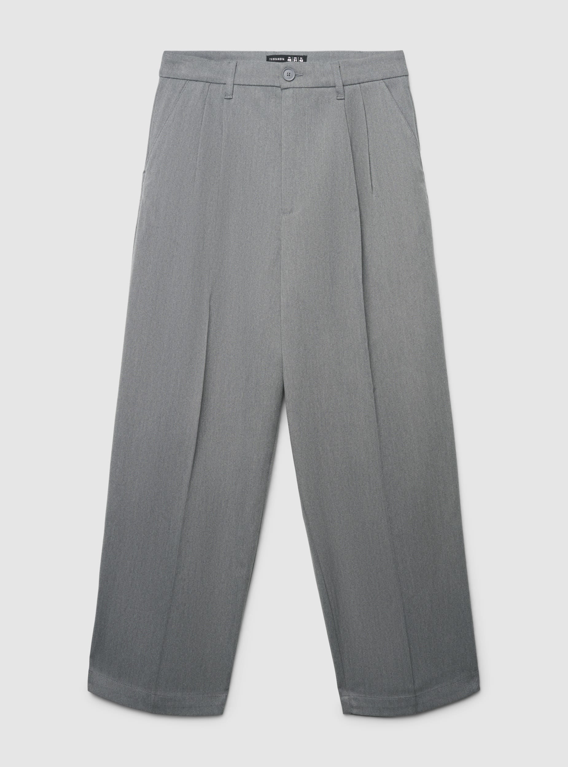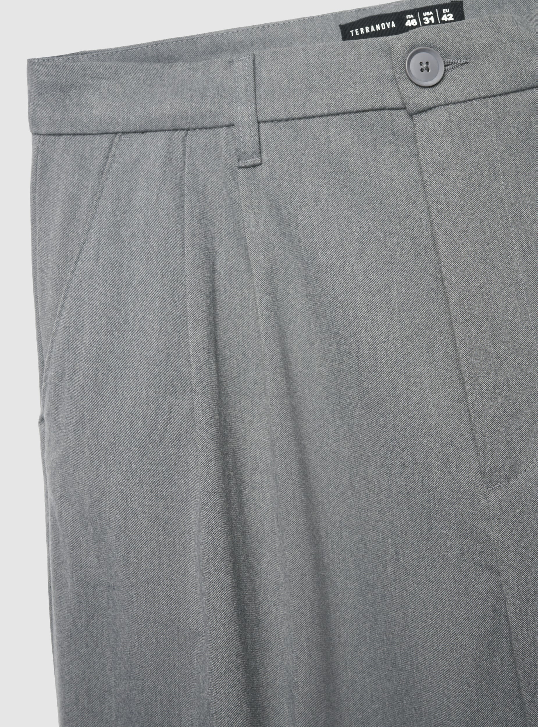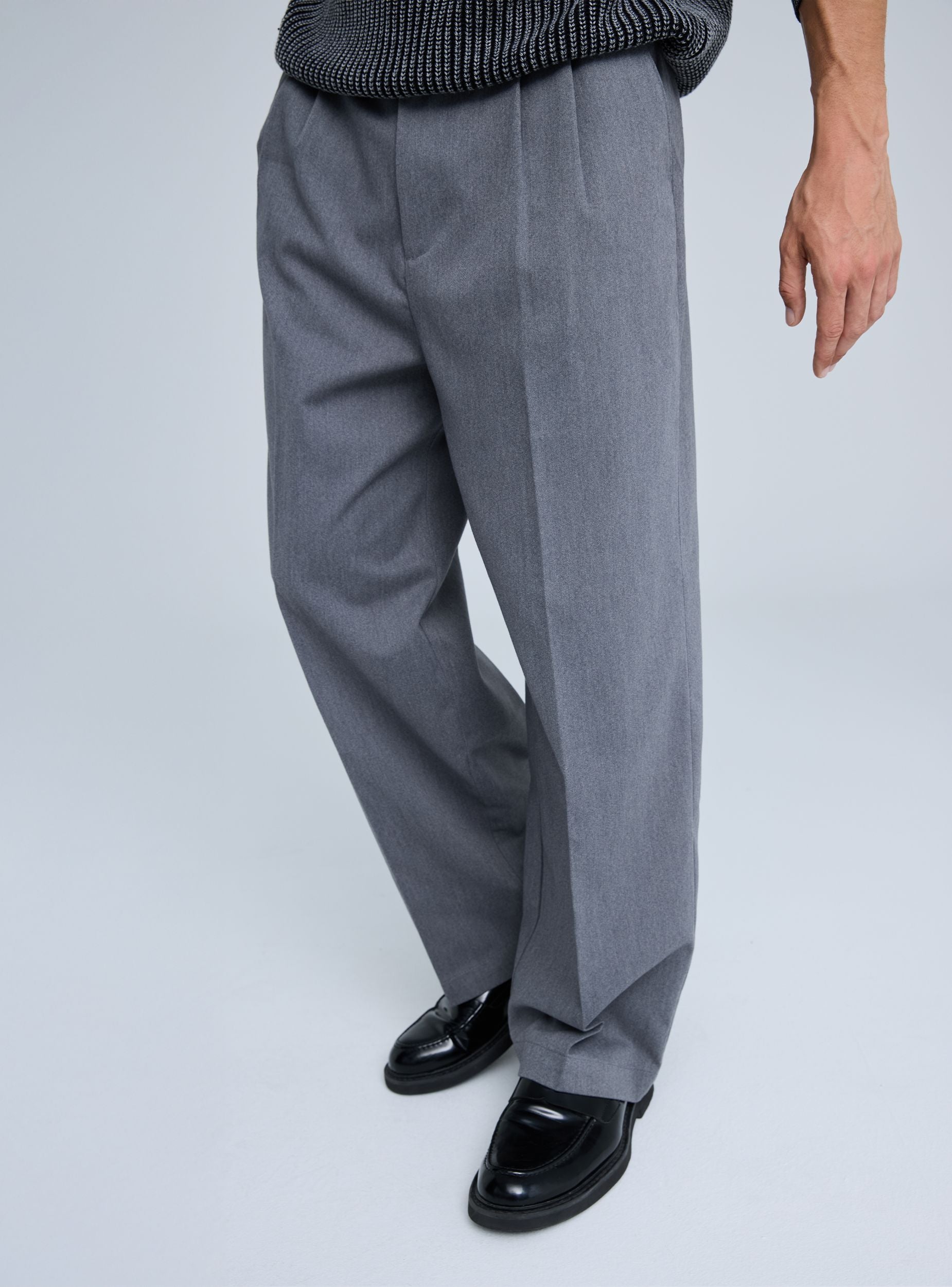 Pánské dlouhé kalhoty v jednobarevném provedení s volným střihem a rovnými nohavicemi. Mají přední záševky, poutka na opasek a zapínání na knoflík a zip. Design doplňují šikmé boční kapsy, ideální pro urban a casual chic vzhled. Perfektní s košilí do kanceláře nebo s tričkem a teniskami ve volném čase, zaručují pohodlí a styl při každé příležitosti.