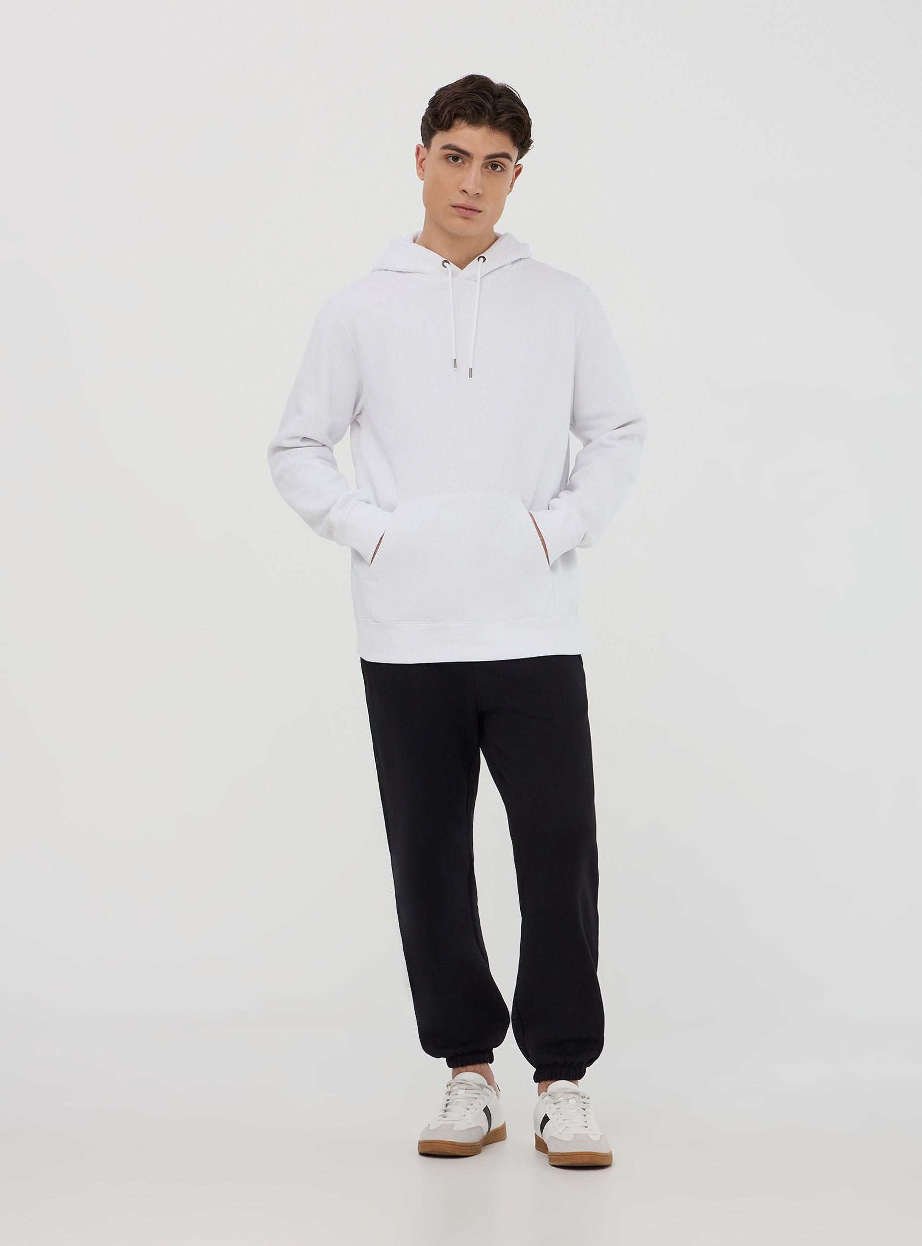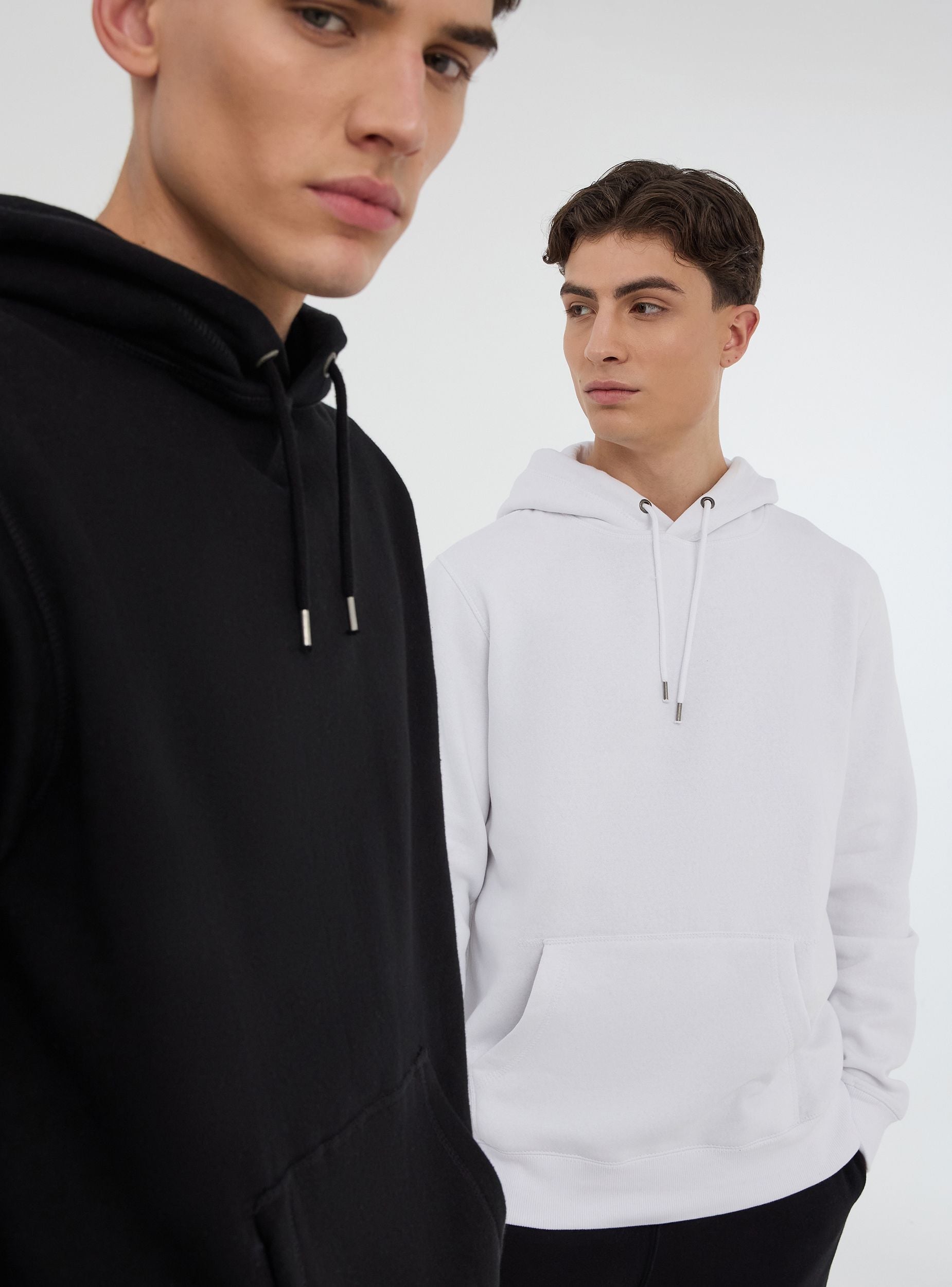 Balení obsahuje dvě pánské mikiny s kapucí. Model s uzavřenou kapucí nastavitelnou pomocí šňůrky a dlouhými rukávy. Přední klokaní kapsa. Vyrobeno z těžké jednobarevné tkaniny. Regular fit.