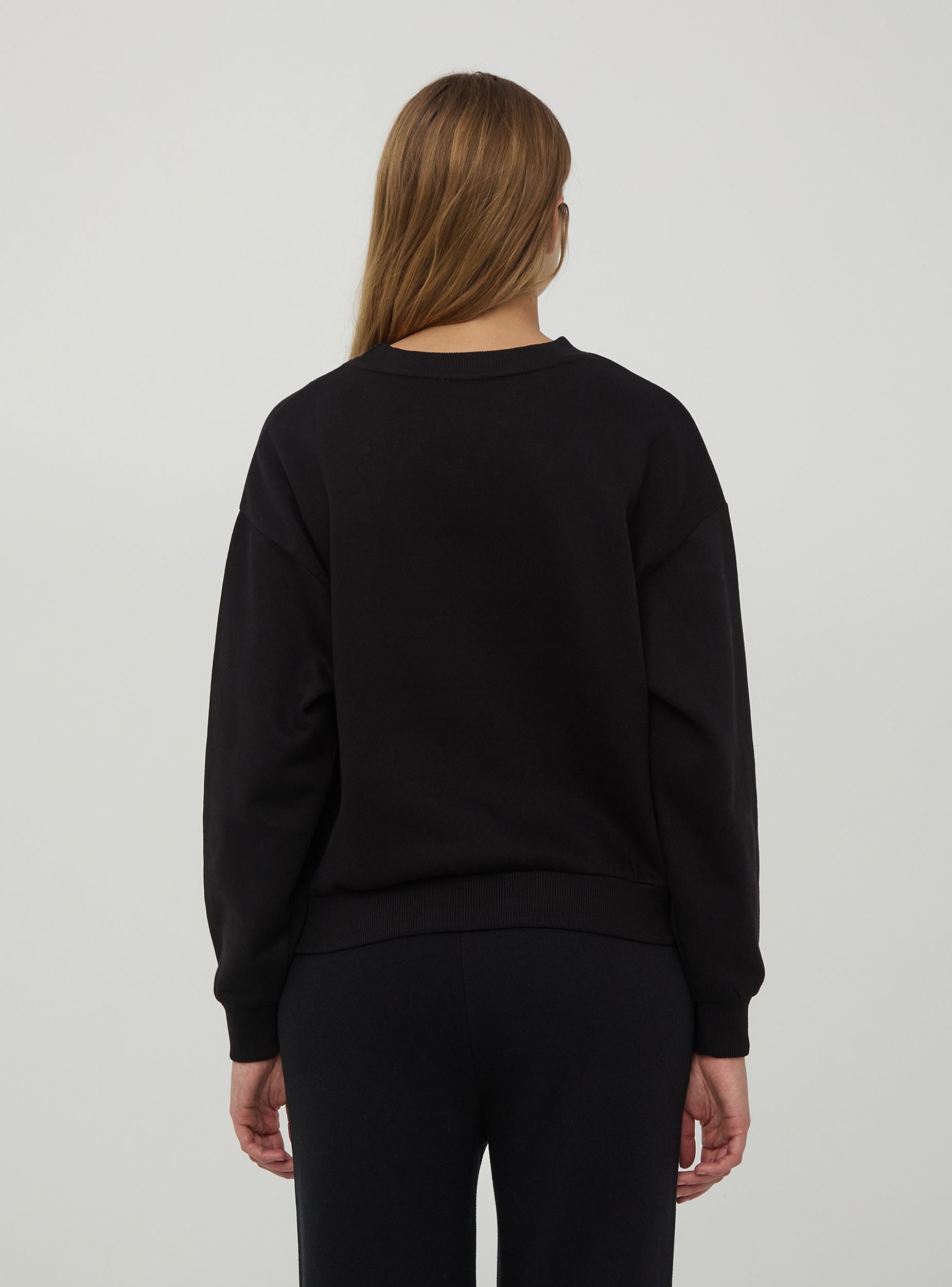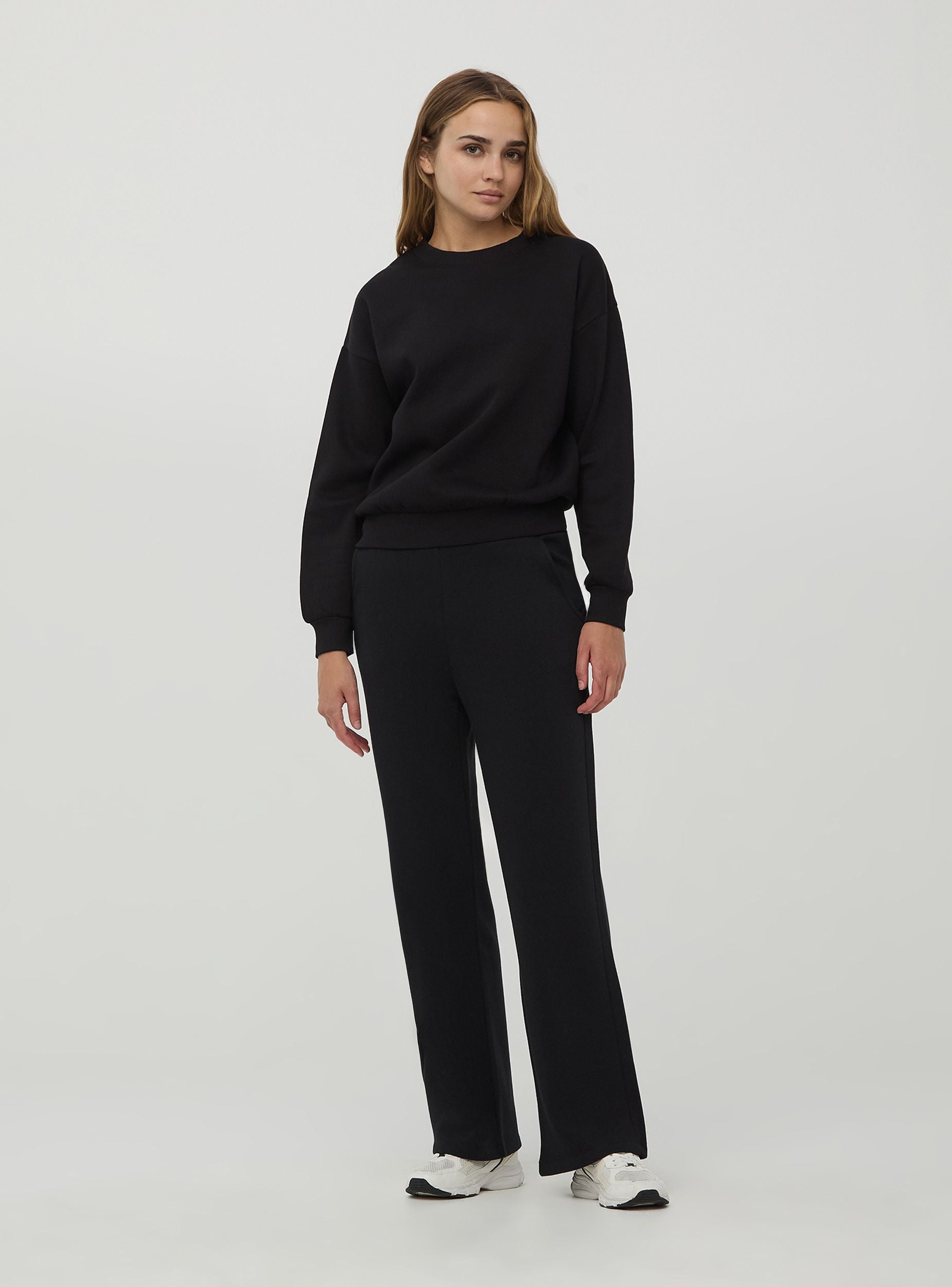 Dámská mikina bez kapuce s dlouhými rukávy, vyrobená z těžkého fleecového materiálu v jednobarevném provedení a s žebrovanými detaily. Regular fit.