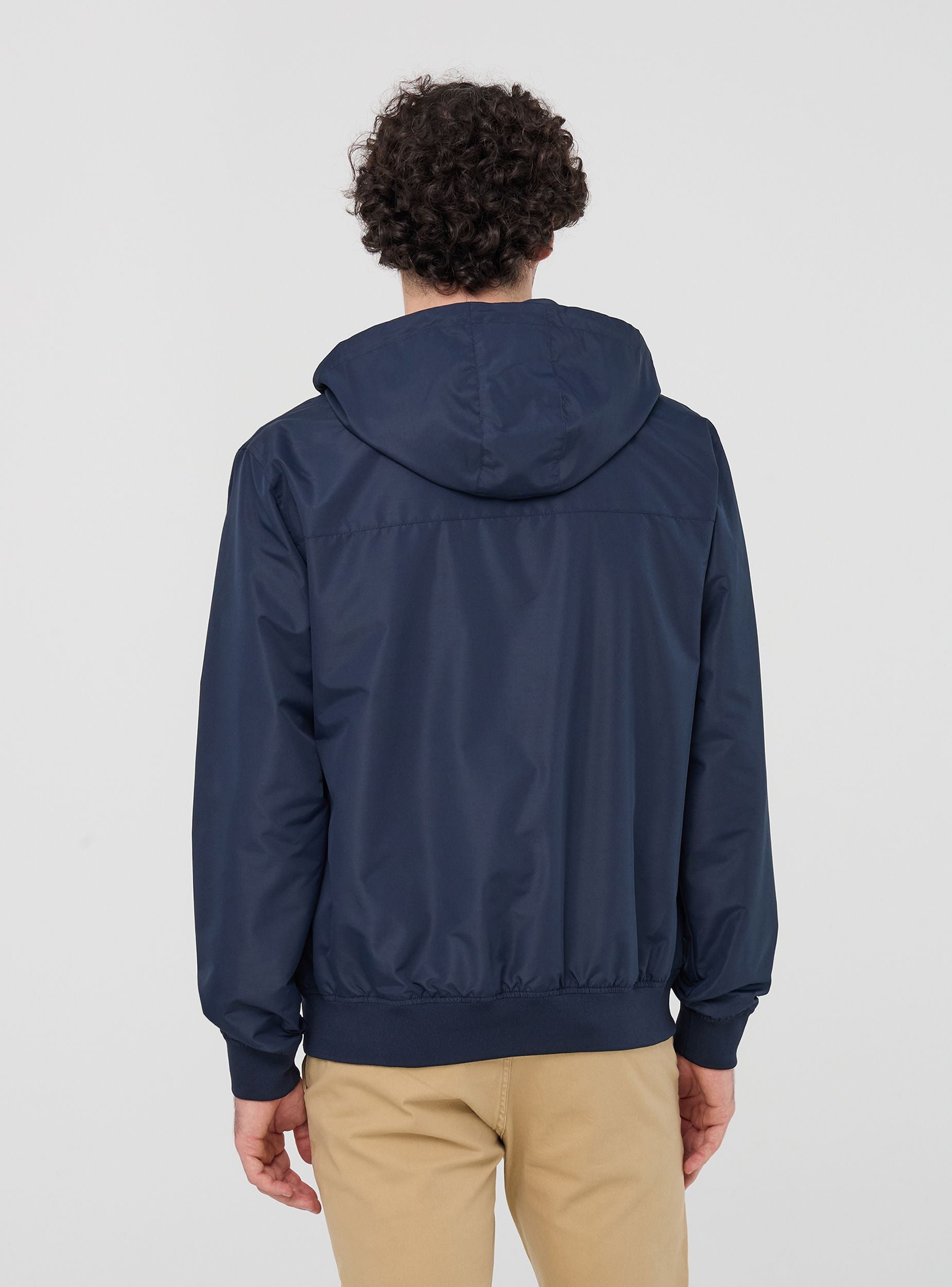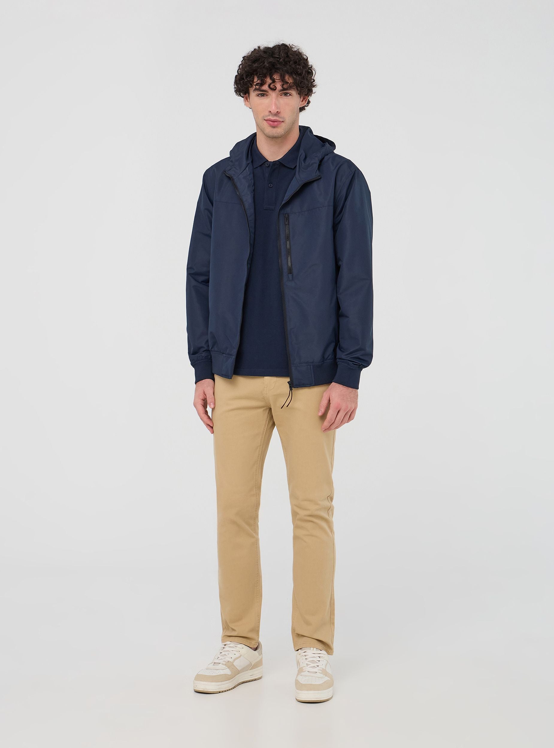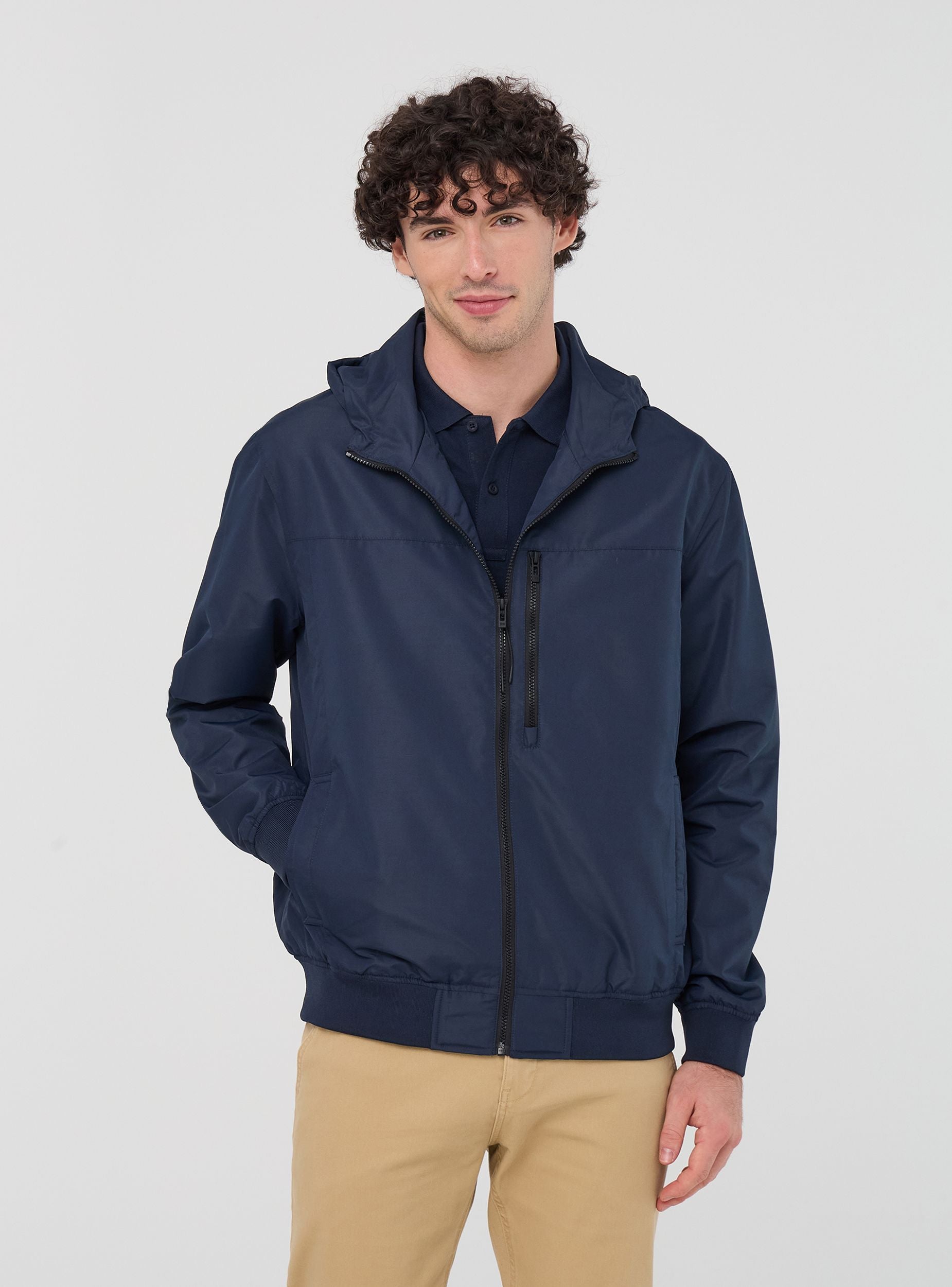 Pánská bunda navržená tak, aby spojovala praktičnost a styl, vyrobena z lehkého nylonu, ideální pro čelní dny. Charakterizována nastavitelnou kapucí se stoperem a předním zipovým zapínáním, poskytuje ochranu proti větru a dešti díky své nepromokavosti. Přední kapsy na patentky jsou perfektní pro udržení věcí po ruce, zatímco kapsa se zipem na hrudi a vnitřní kapsa se suchým zipem přidávají bezpečnost a funkčnost. Nezbytný kousek pro ty, kteří hledají pohodlí a všestrannost.