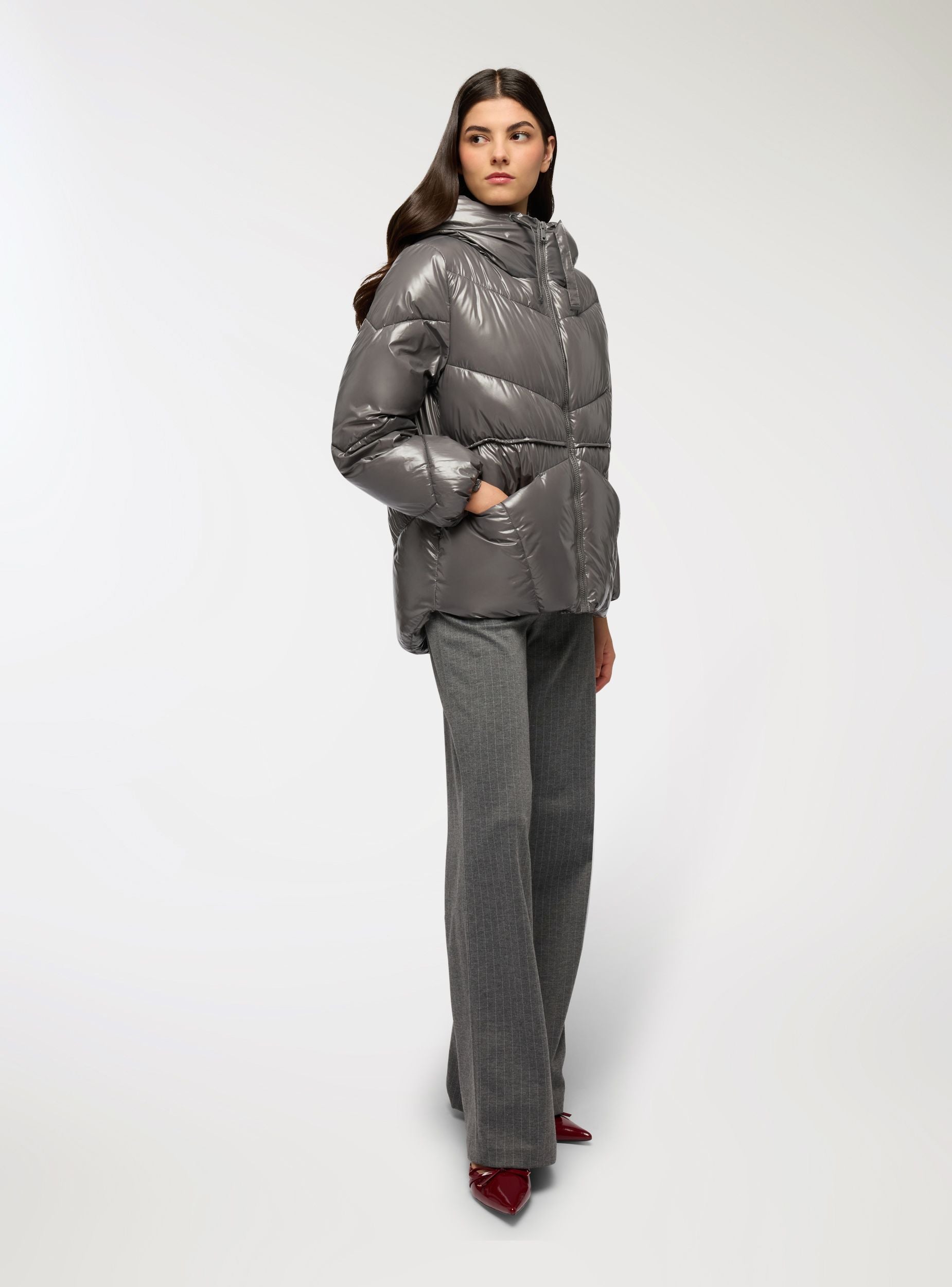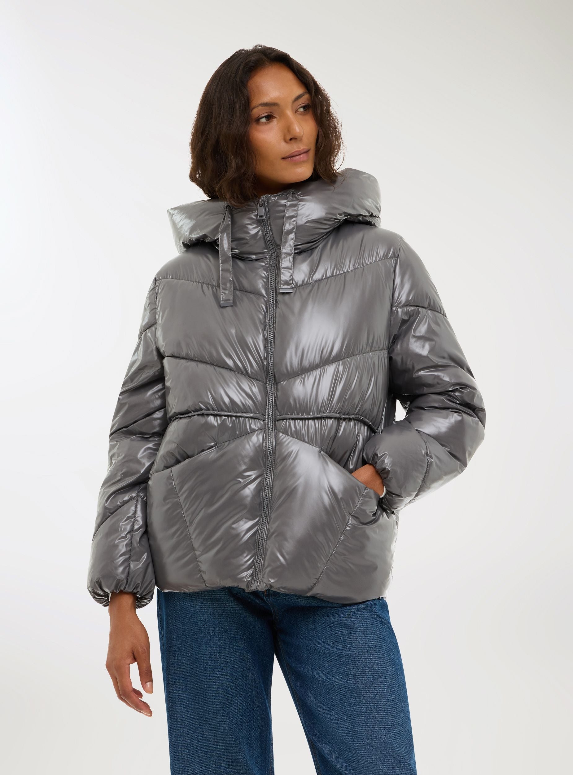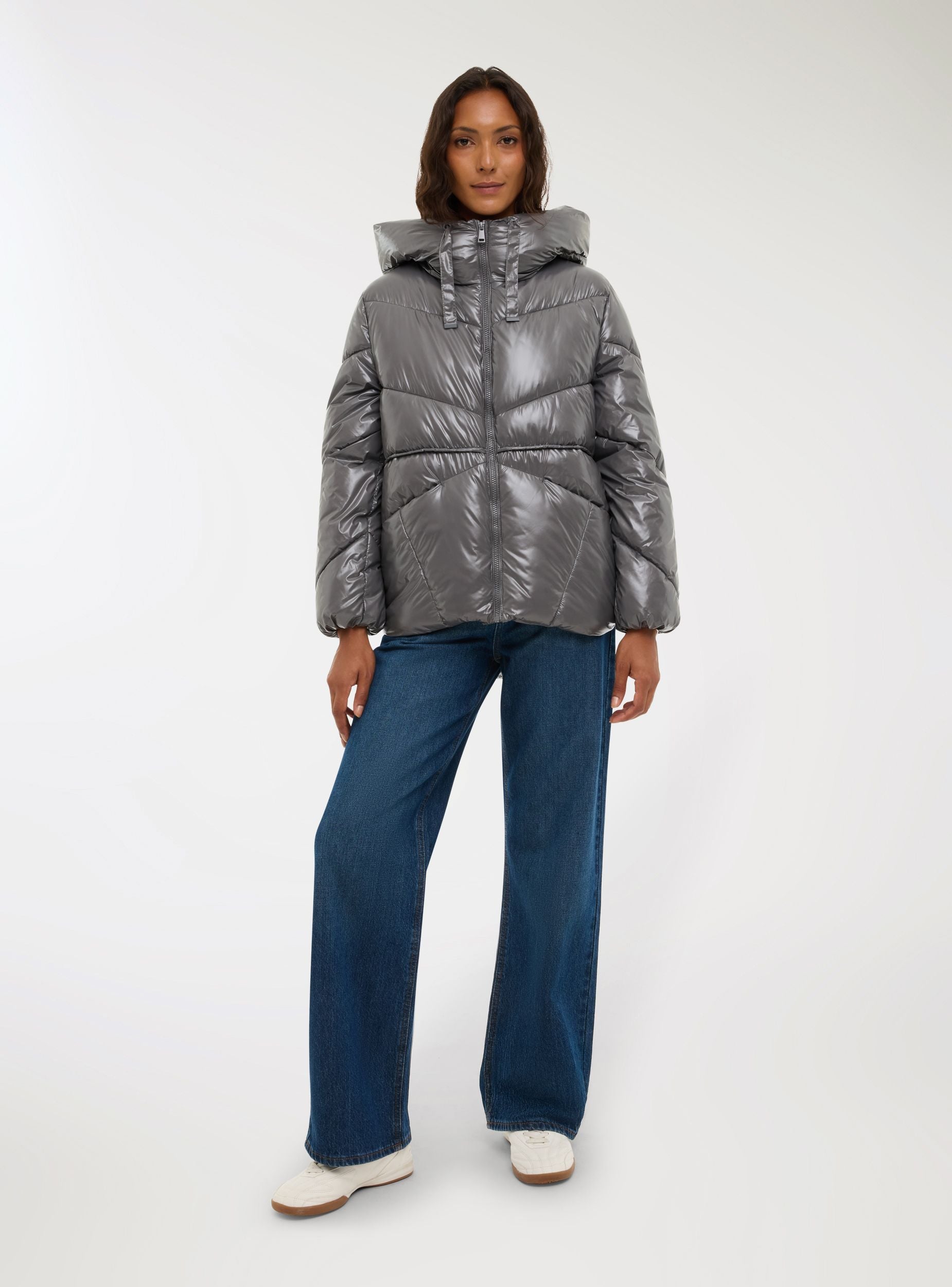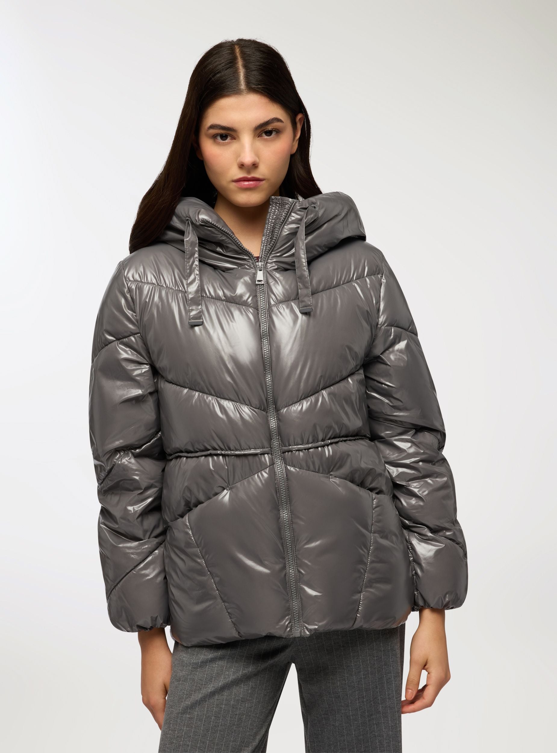Dámská prošívaná bunda s kapucí a stahovací šňůrkou, ideální pro stylové zvládnutí chladných dnů. Má zapínání na zip a boční kapsy, nabízí pohodlný a praktický střih. Perfektní pro městský casual look, snadno se kombinuje s džínami a teniskami pro moderní a funkční outfit.Detaily