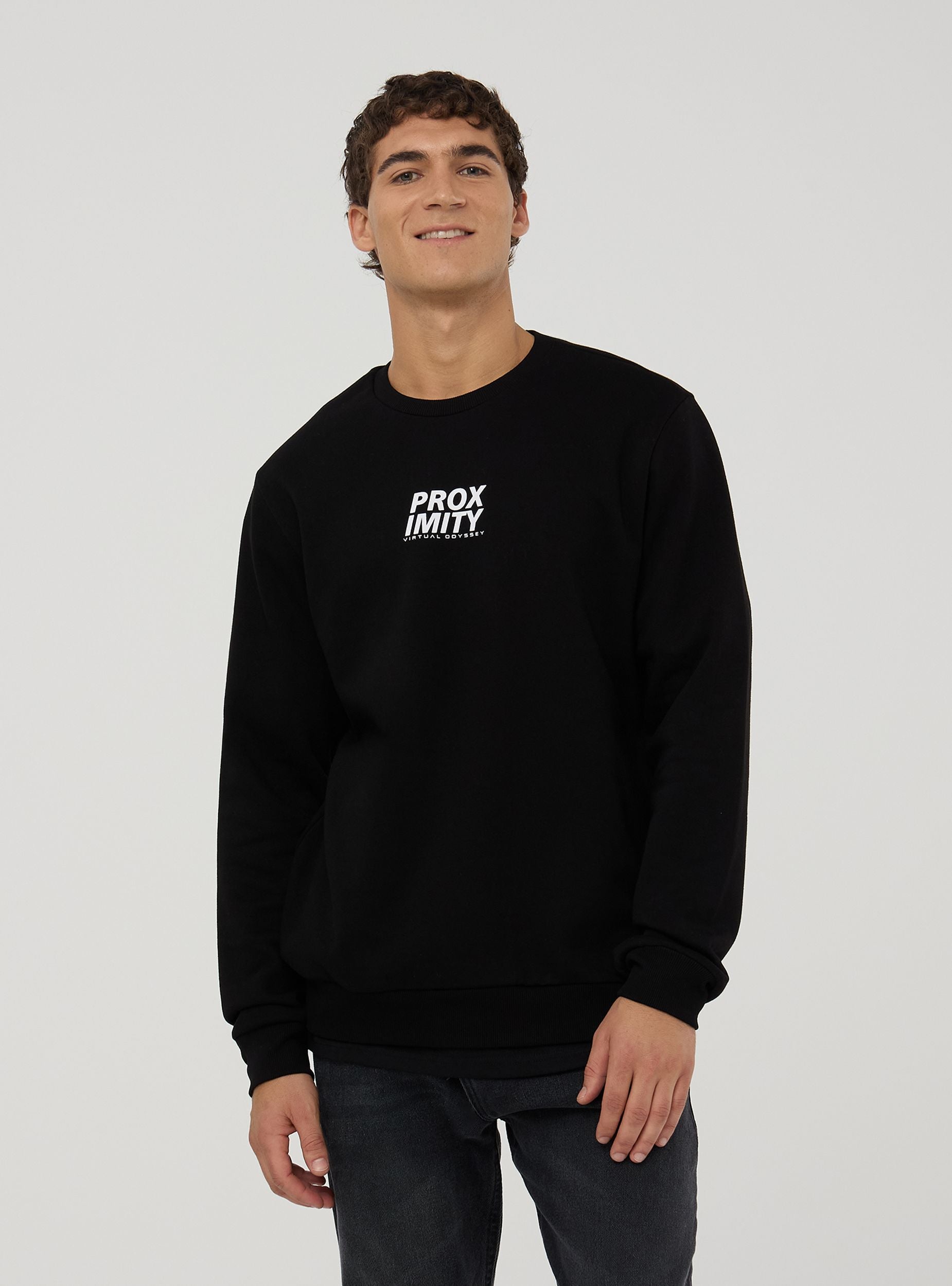 Pánská mikina bez kapuce, uzavřený model. Vyrobena z látky s malým potiskem na přední straně a větším na zadní straně. Ideální pro doplnění casual outfitu.