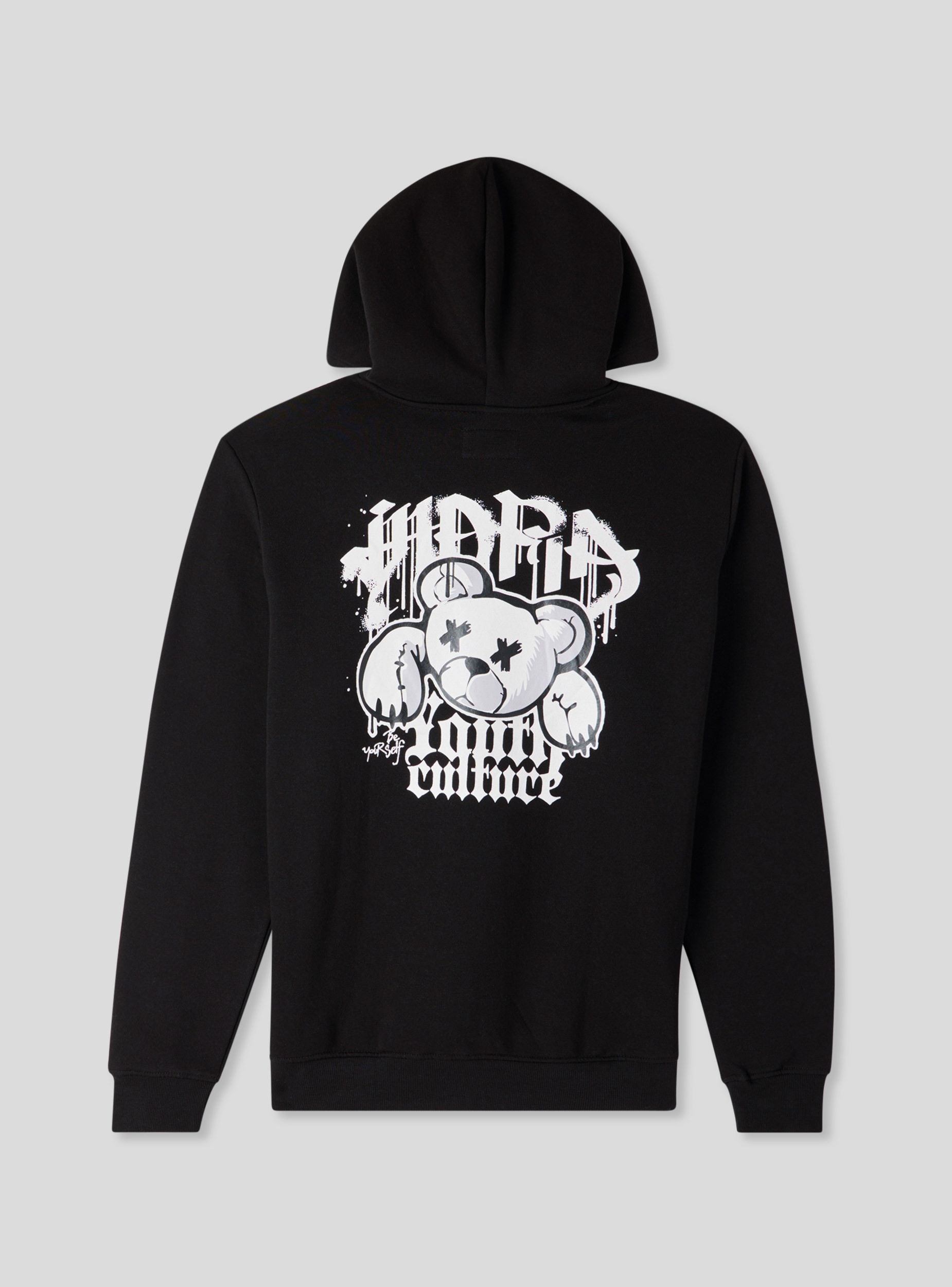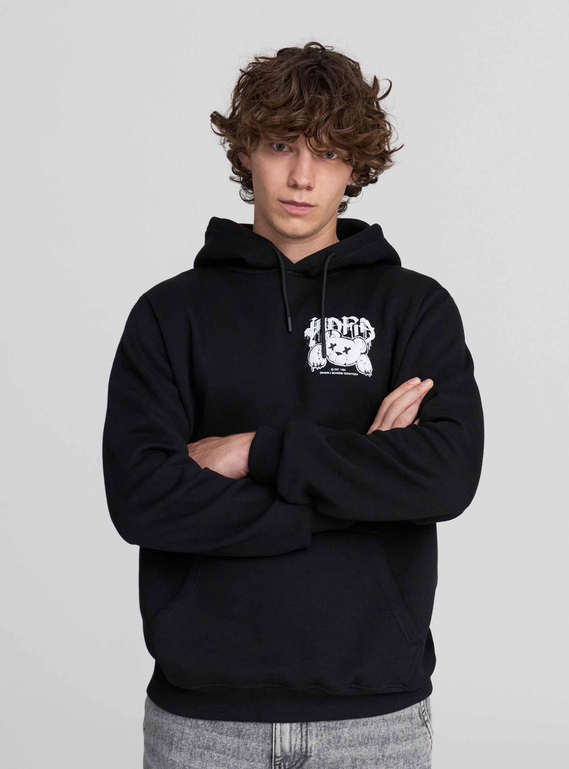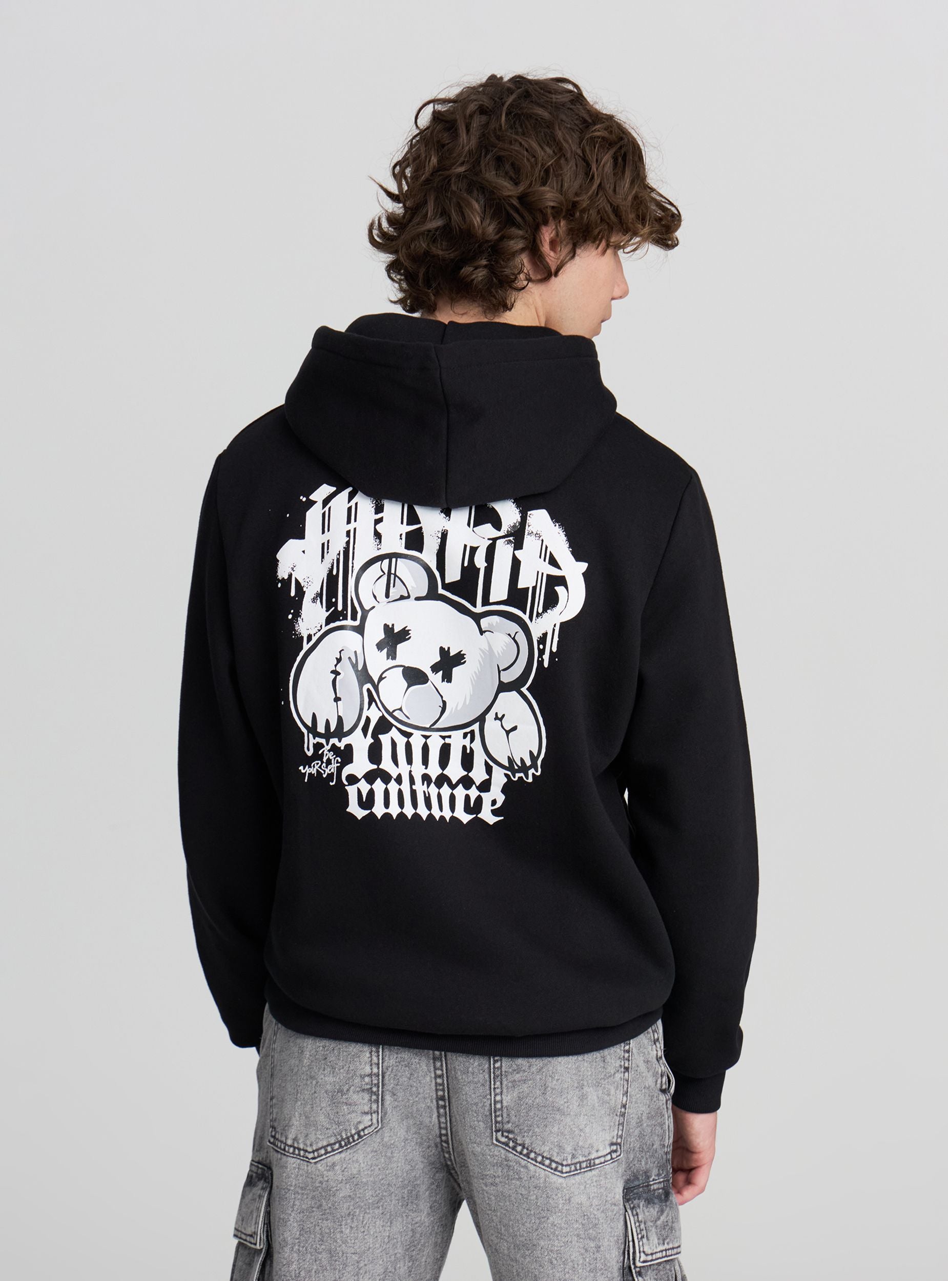 Pánská těžká mikina s kapucí a nastavitelnou šňůrkou, ideální pro stylové zvládnutí zimní sezóny. Dlouhé rukávy a pohodlný střih ji činí dokonalou pro každodenní nošení. Na přední straně se nachází malý potisk s medvídkem ve stylu graffiti, který předznamenává širokou urbanistickou grafiku umístěnou na zadní straně. Design doplňuje praktická klokaní kapsa. Kousek s charakterem, určený pro ty, kteří mají rádi současný street styl.Detaily