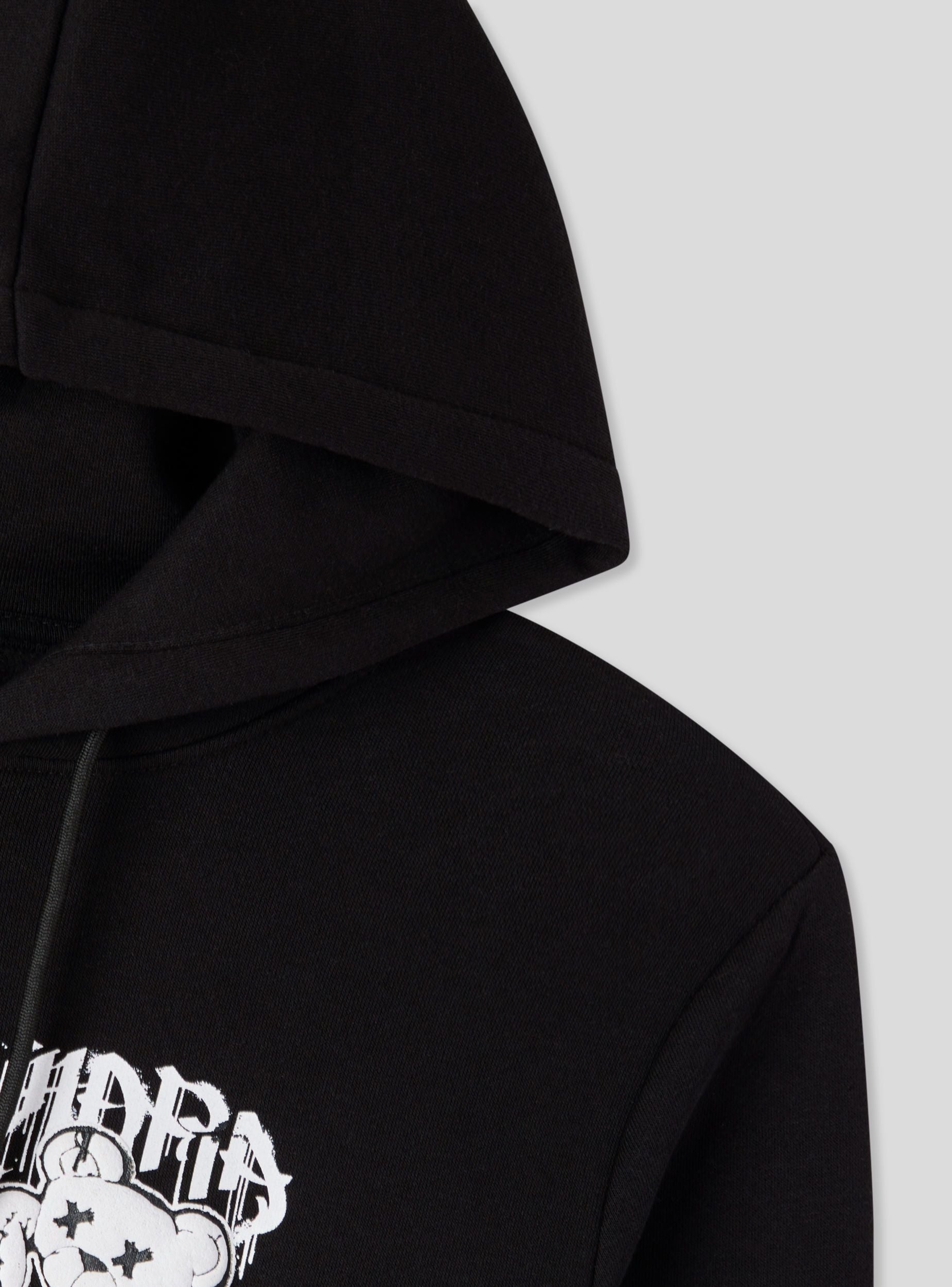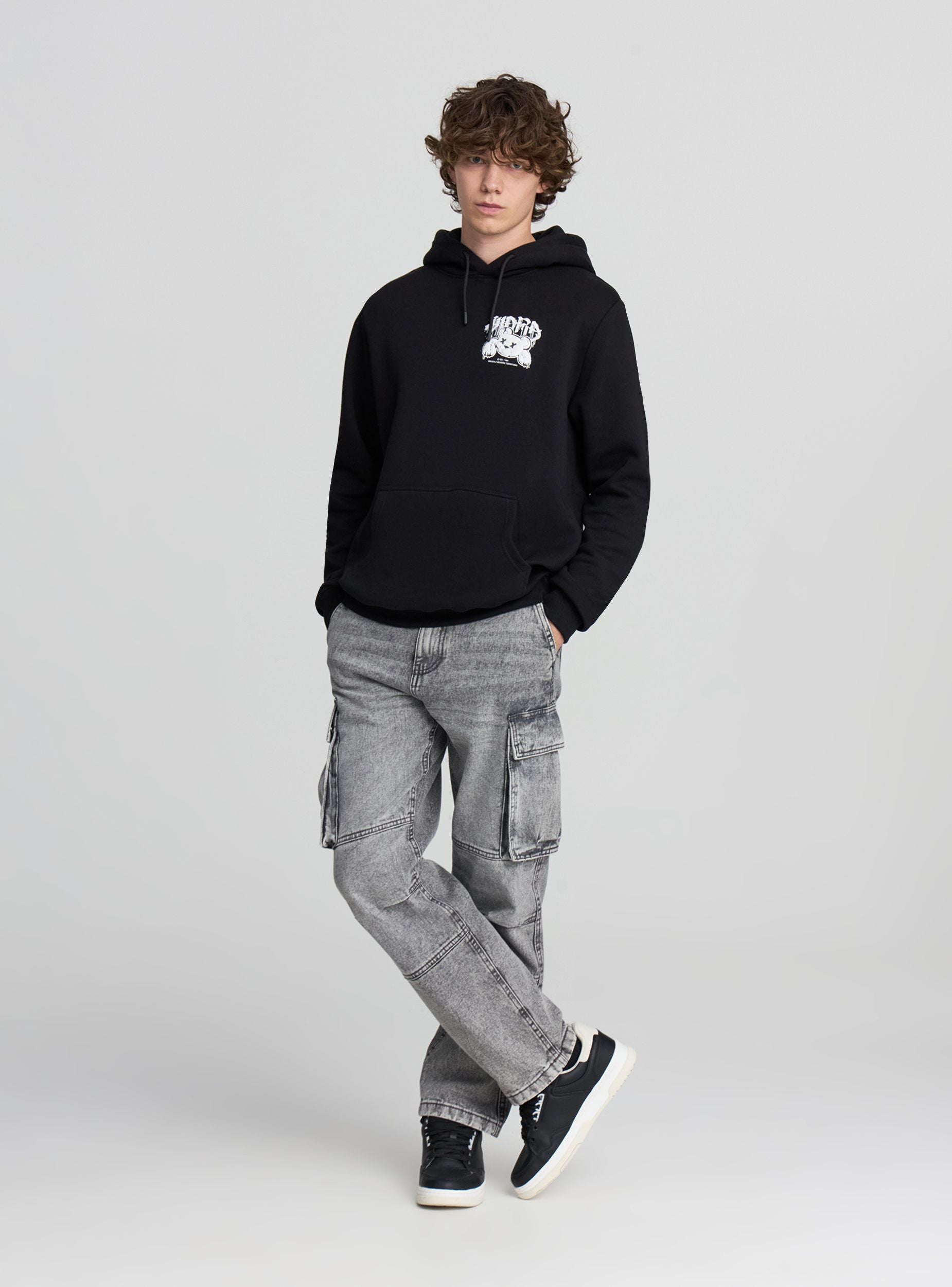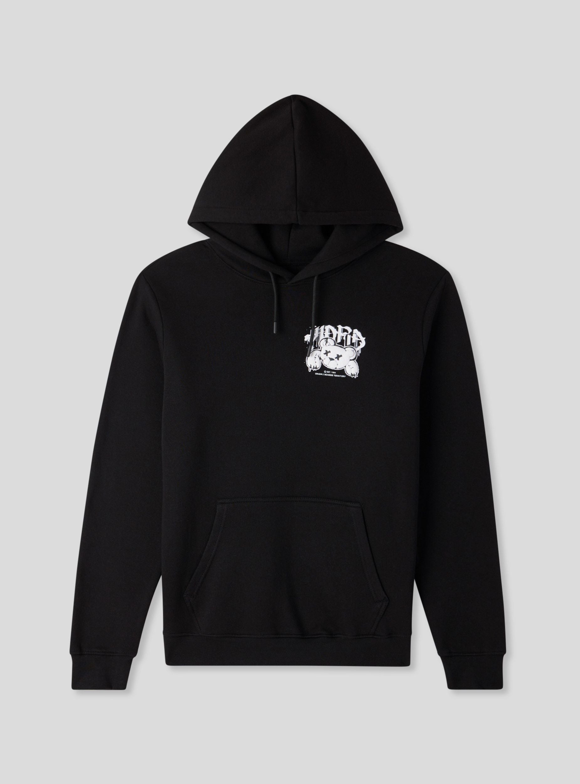 Pánská těžká mikina s kapucí a nastavitelnou šňůrkou, ideální pro stylové zvládnutí zimní sezóny. Dlouhé rukávy a pohodlný střih ji činí dokonalou pro každodenní nošení. Na přední straně se nachází malý potisk s medvídkem ve stylu graffiti, který předznamenává širokou urbanistickou grafiku umístěnou na zadní straně. Design doplňuje praktická klokaní kapsa. Kousek s charakterem, určený pro ty, kteří mají rádi současný street styl.Detaily