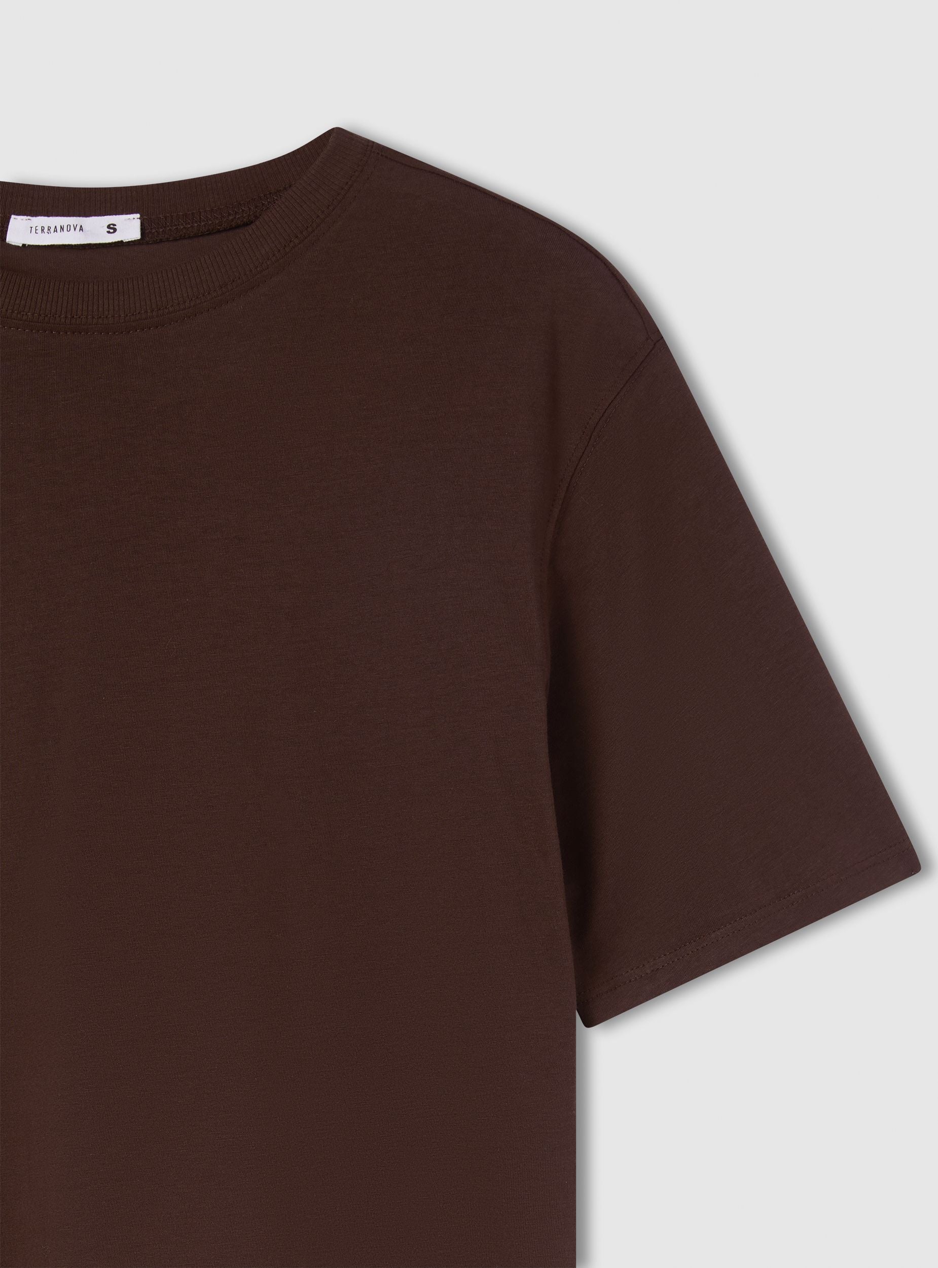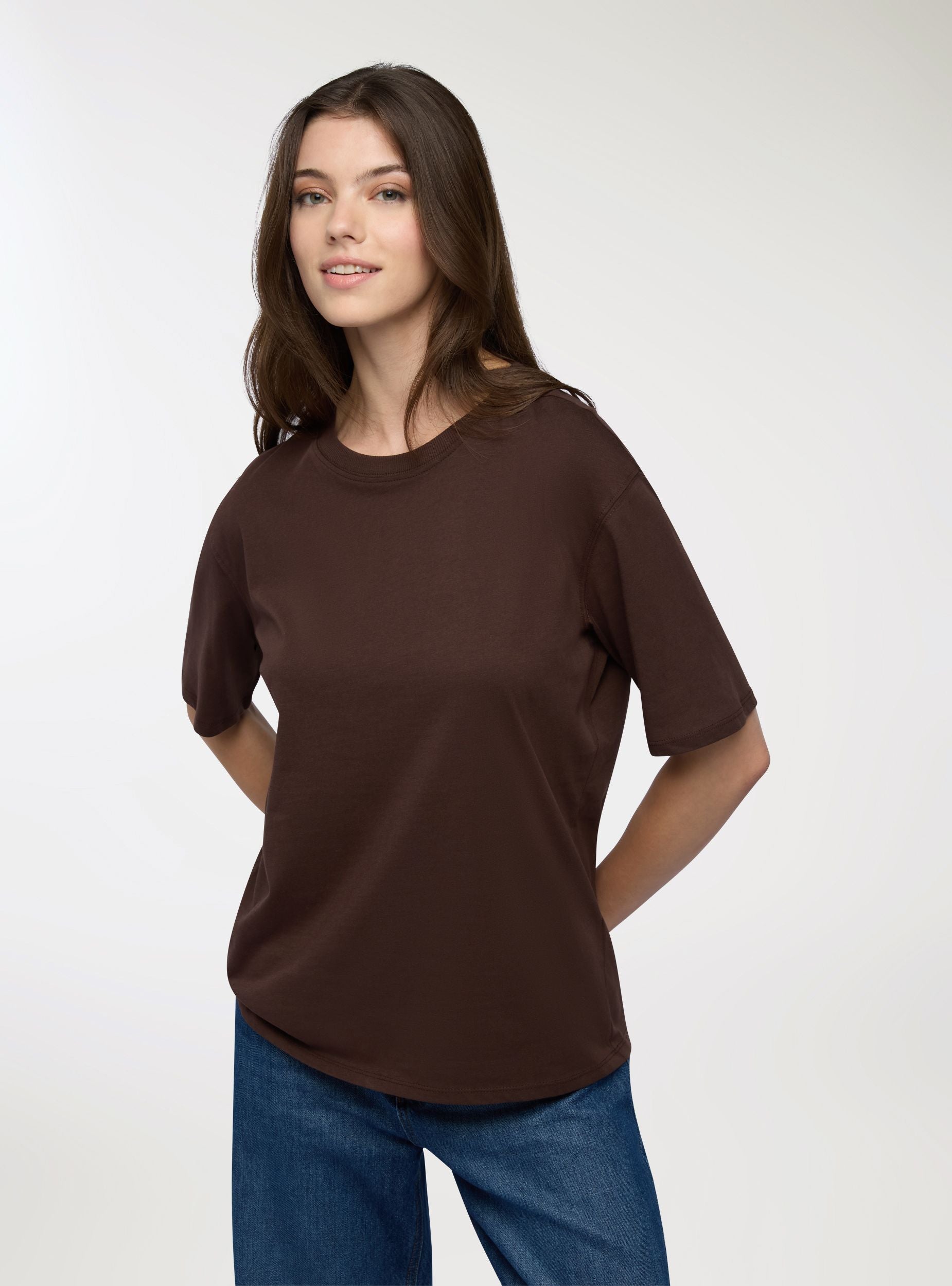 Dámské tričko v jednobarevném provedení s volným střihem, ideální pro casual a uvolněný vzhled. Minimalistický design a měkká linie zajišťují pohodlí a volnost pohybu po celý den. Široký střih a spadlé rukávy dodávají moderní styl, který se skvěle hodí k džínům, legínám nebo sportovním kalhotám. Univerzální kousek pro jednoduché a charakteristické doplnění každodenního šatníku.