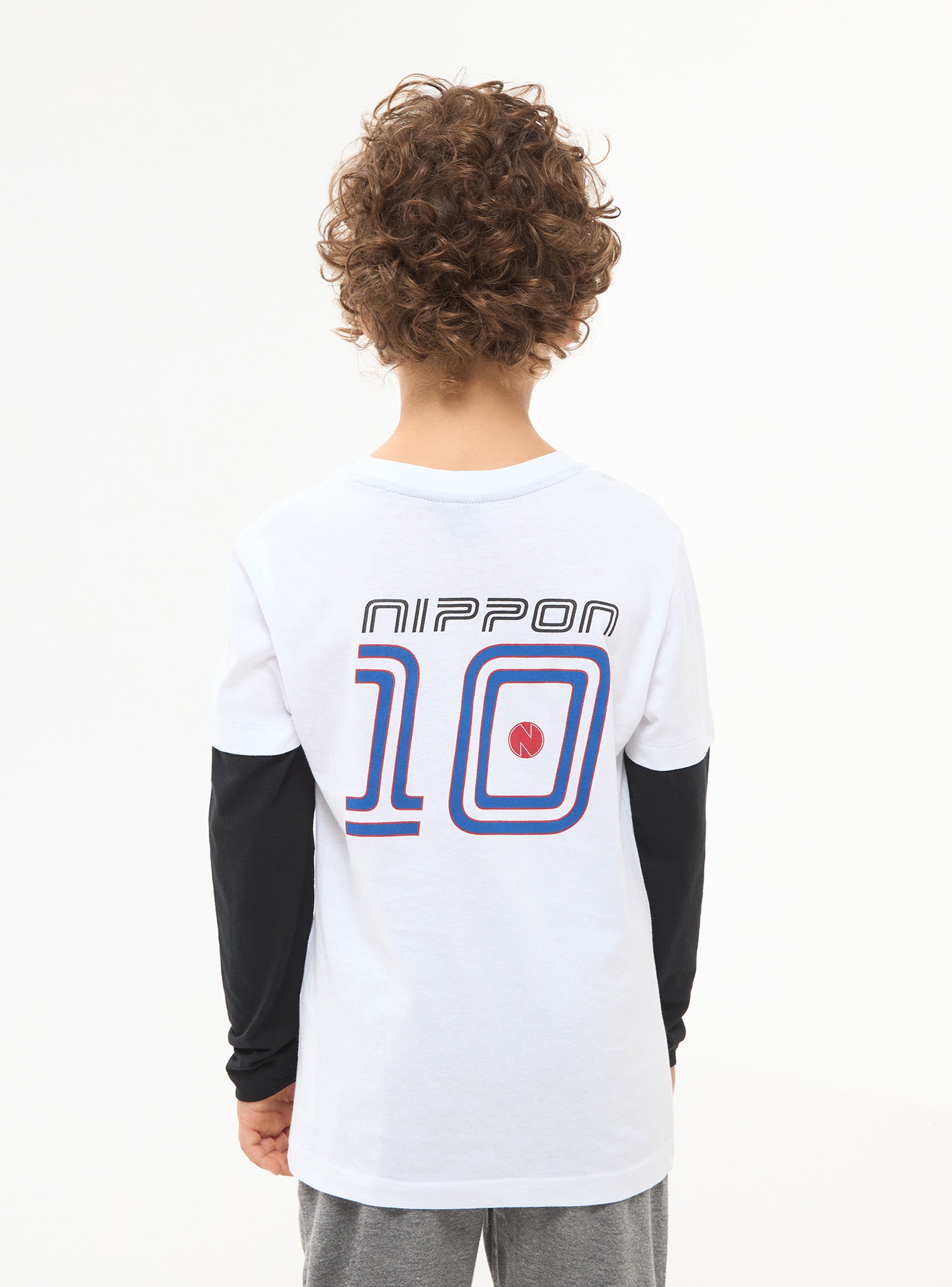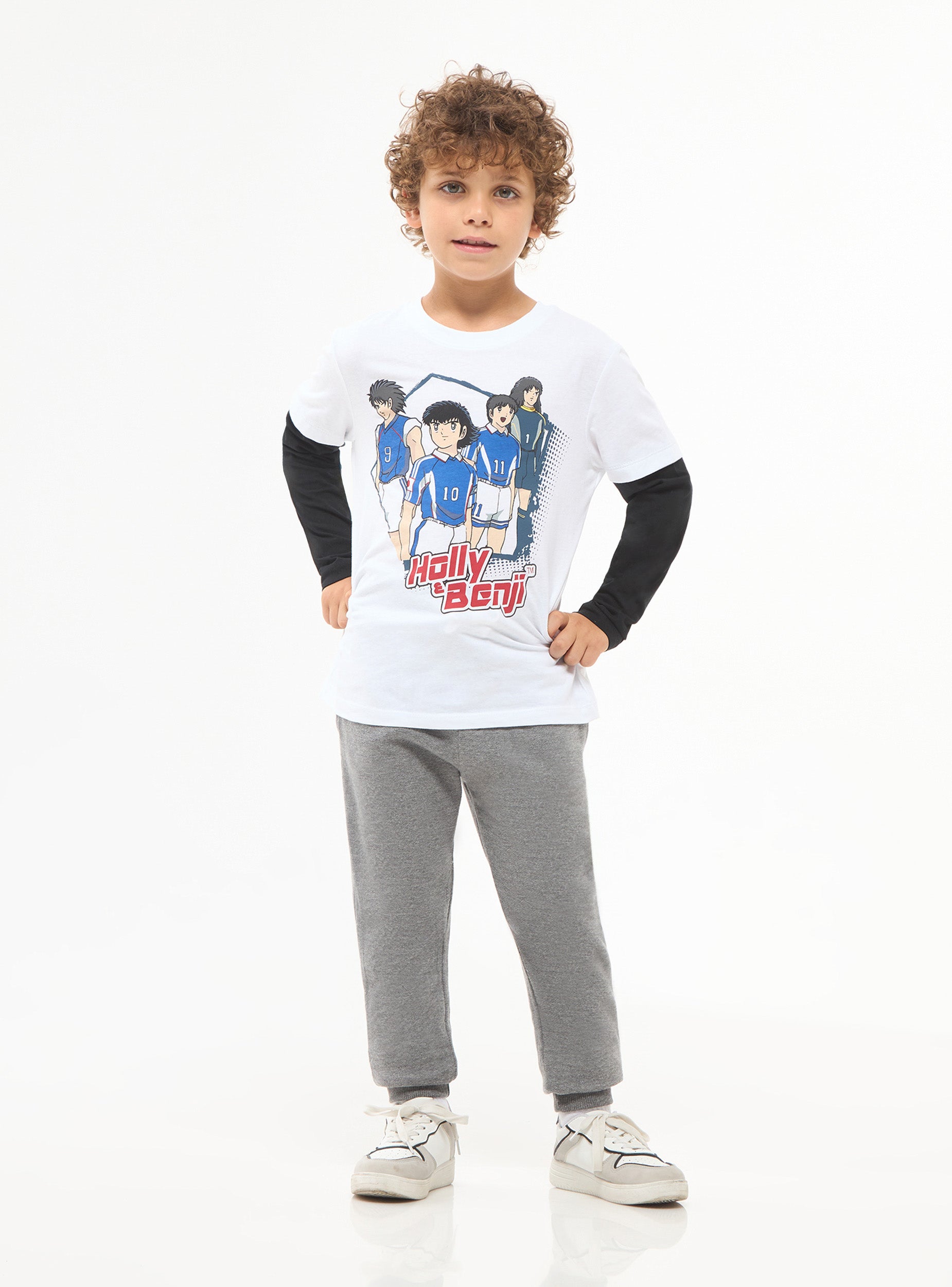 T-shirt a manica lunga da bambino. Modello girocollo, tessuto cotone con stampa Capitan Tsubasa.