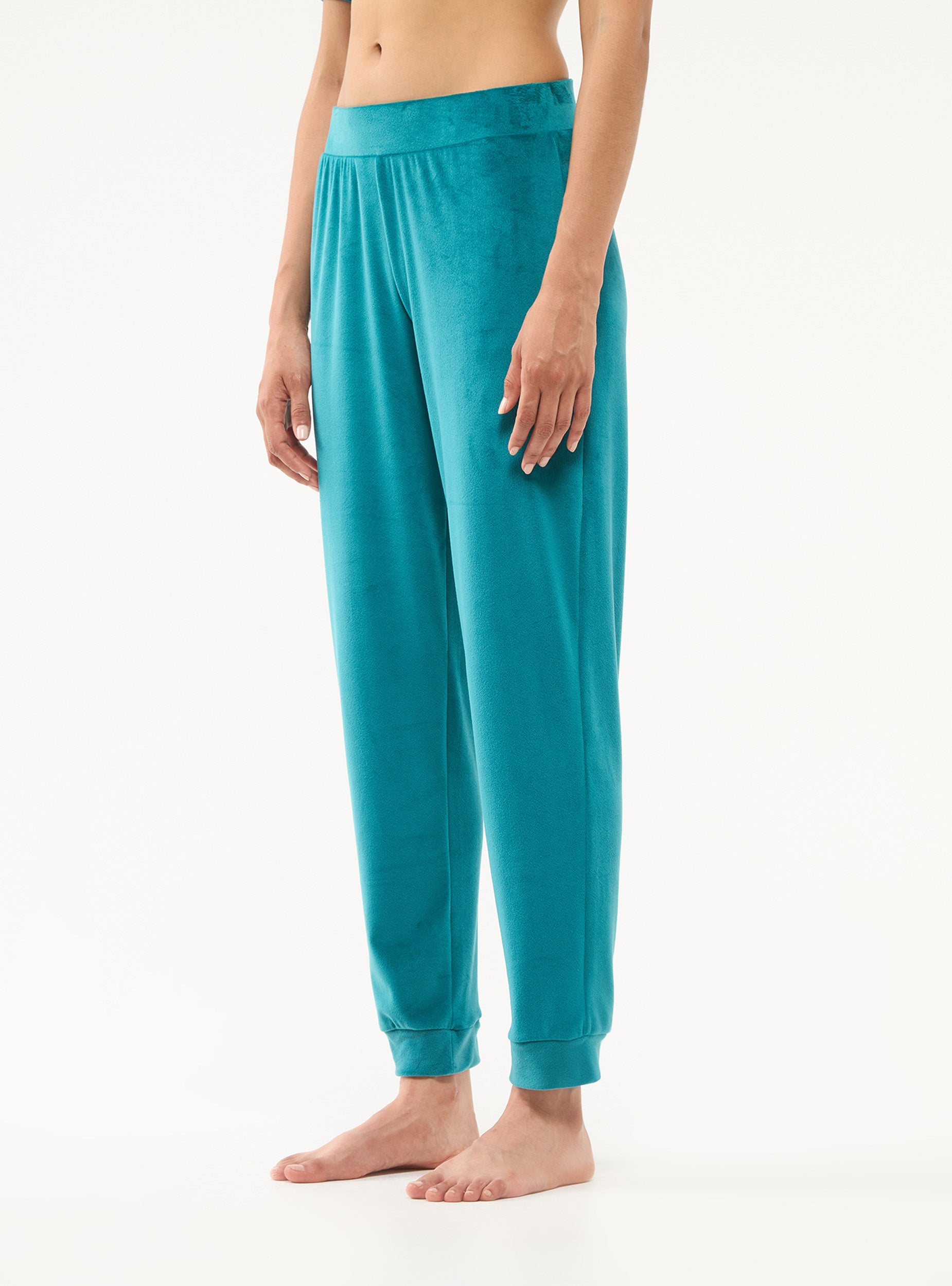 Leggings lungo da donna con elastico in vita. Tessuto in ciniglia tinta unita.