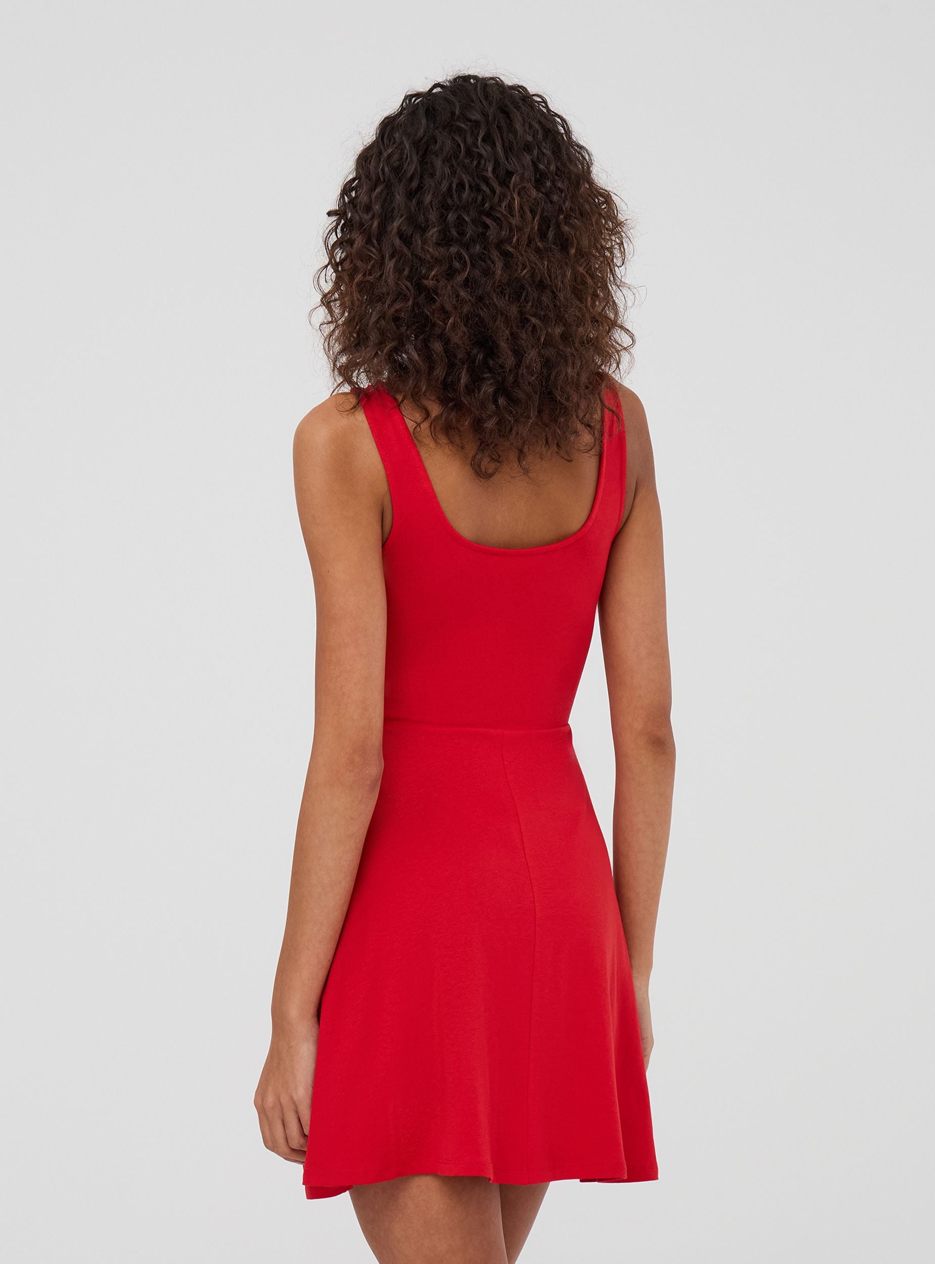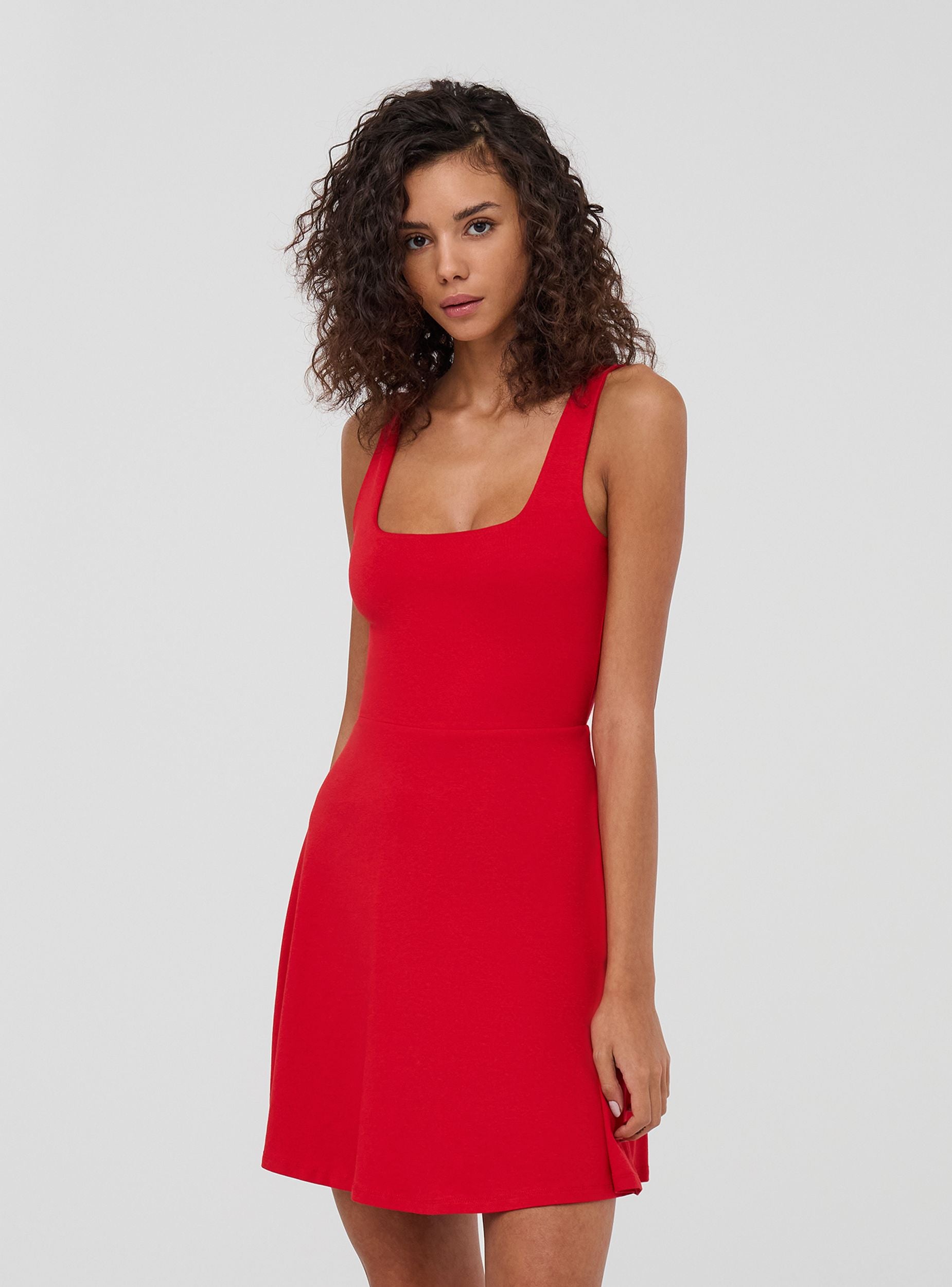Dámské šaty v jednobarevném provedení, charakterizované skater siluetou, která se jemně rozšiřuje směrem k lemu a vytváří tak rozšířený a dynamický efekt. Kousek má čtvercový výstřih, který skvěle dodává nádech ženskosti a modernity. Přiléhavý design na hrudi zvýrazňuje postavu, zatímco širší spodní část zajišťuje pohodlí a pohyb. Ideální pro neformální příležitosti nebo dny, kdy chcete nosit pohodlný a módní vzhled, tyto šaty spojují eleganci a praktičnost v jednom univerzálním modelu.Detaily