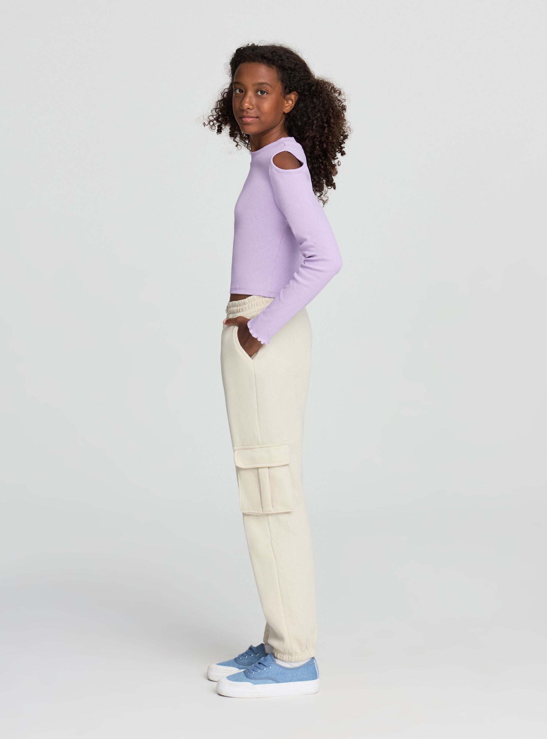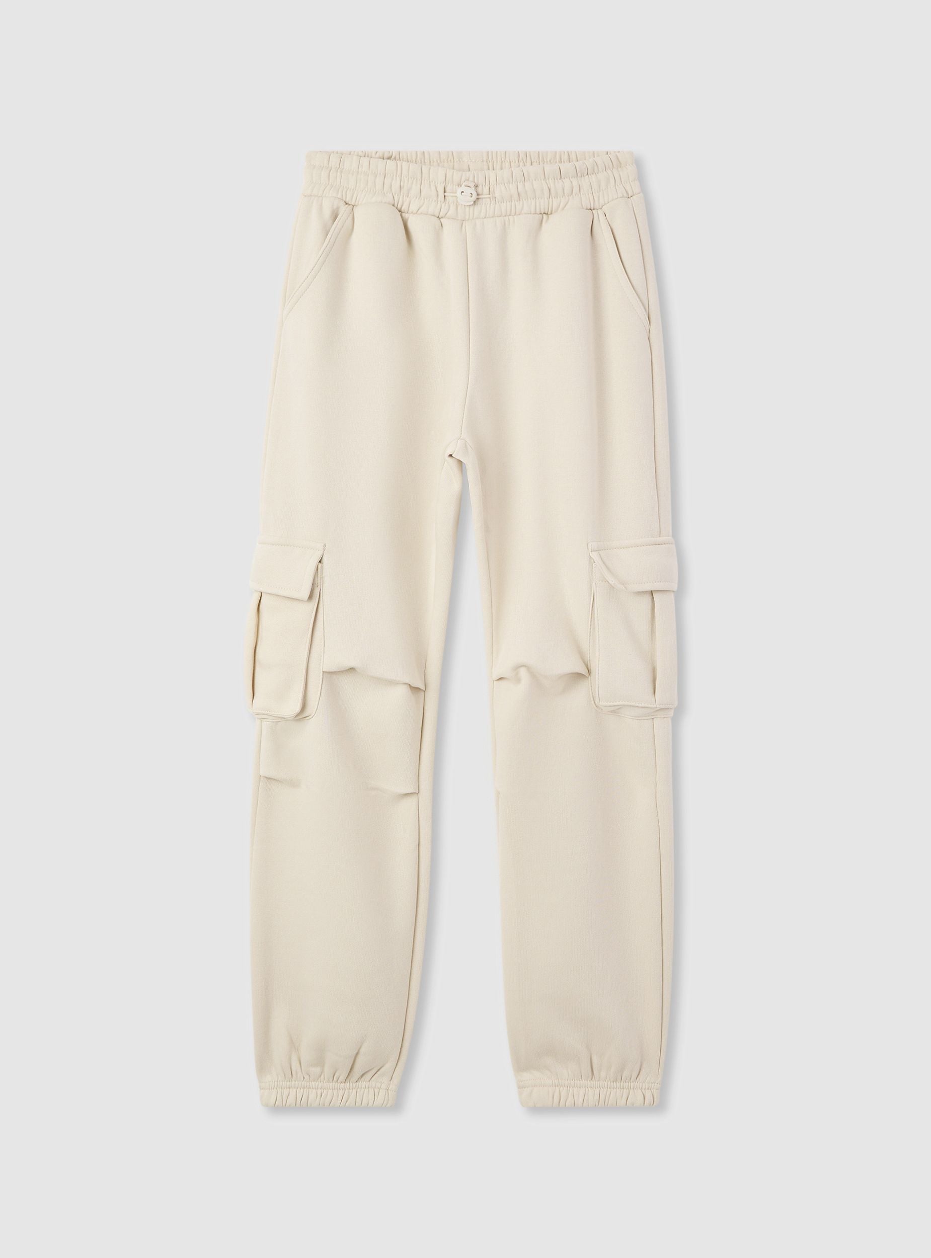 Lehké dětské teplákové kalhoty, dlouhé a pohodlné, ideální pro volný čas a každodenní aktivity. Model parachute cargo. Mají normální střih s bočními cargo kapsami pro větší praktičnost. Elastický pas se zarážkou zajišťuje pohodlí a přizpůsobivost. Perfektní pro vytvoření ležérních a sportovních outfitů.Detaily