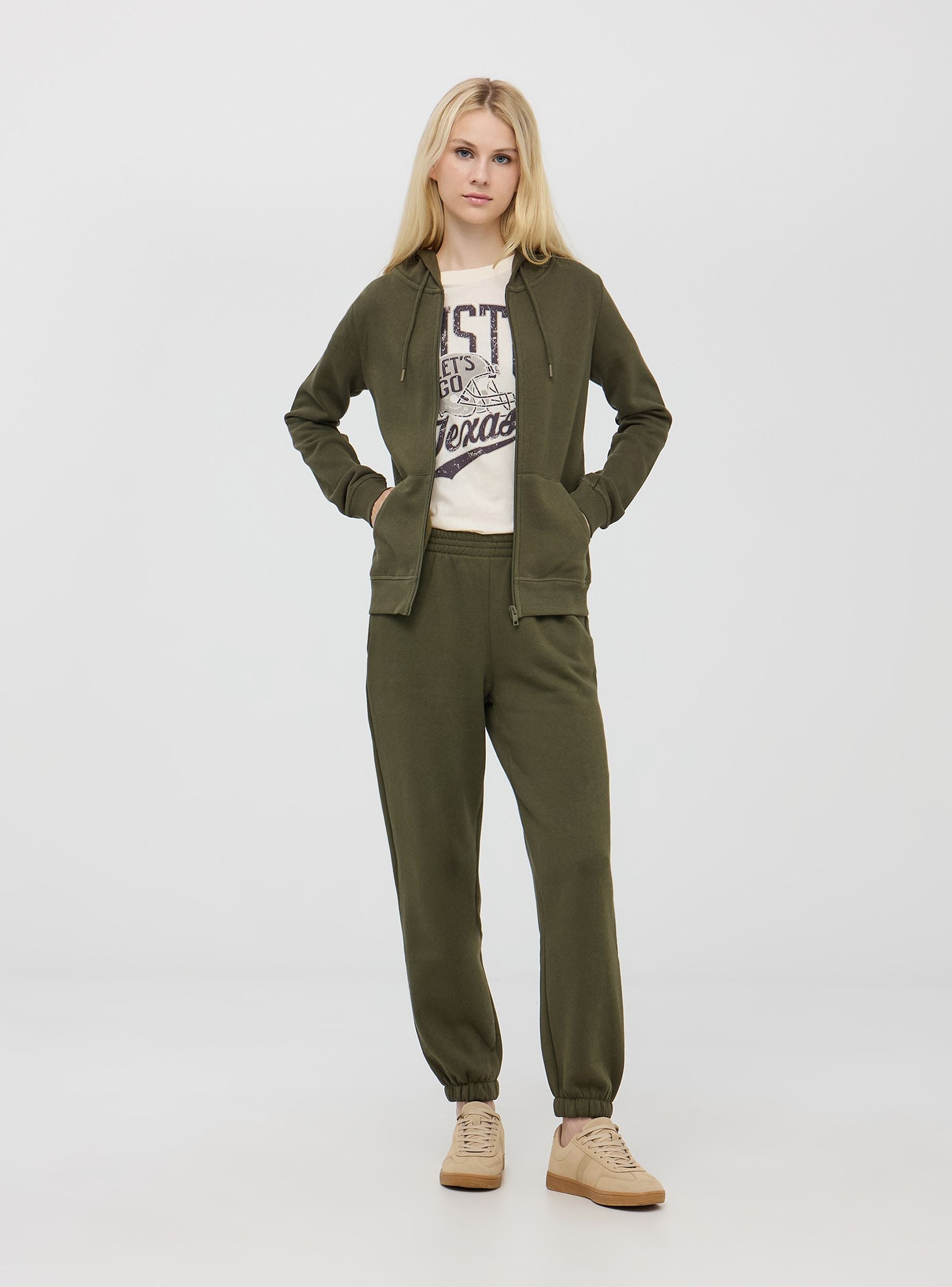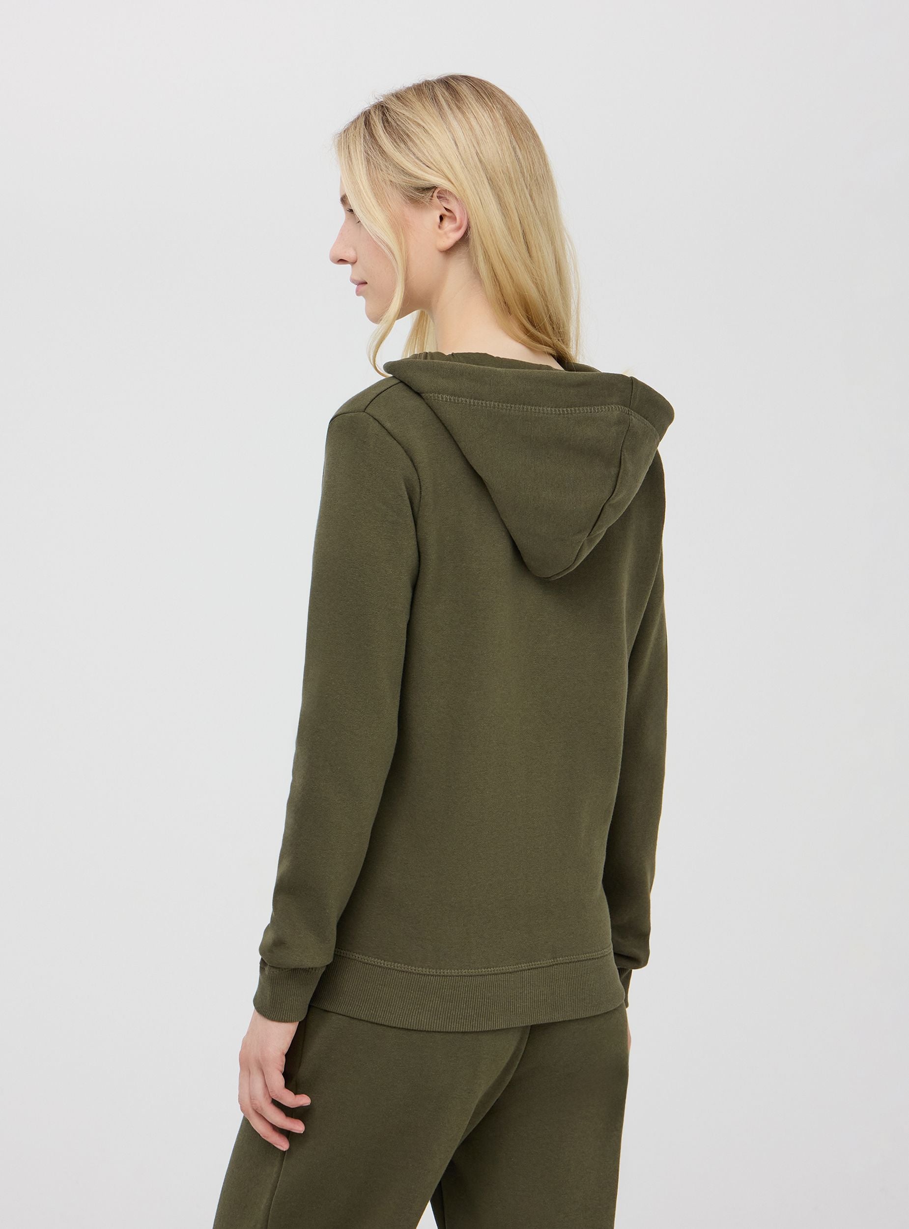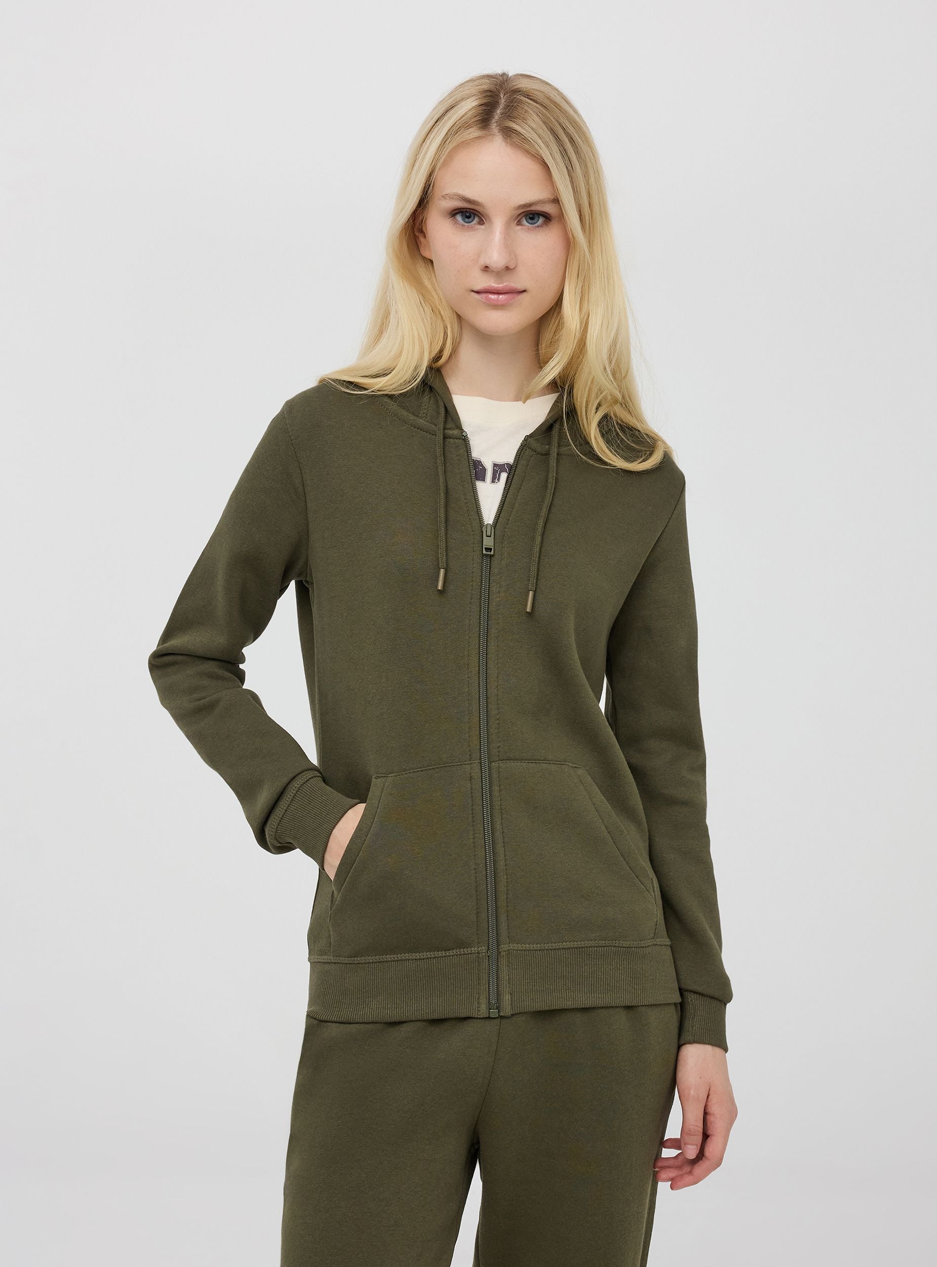Dámská mikina s kapucí a stahovací šňůrkou, zapínání na zip a přední kapsy klokanka, z těžké jednobarevné tkaniny. Základní kousek, který by neměl chybět ve skříni, ideální pro casual vzhled. Regular fit.Detaily