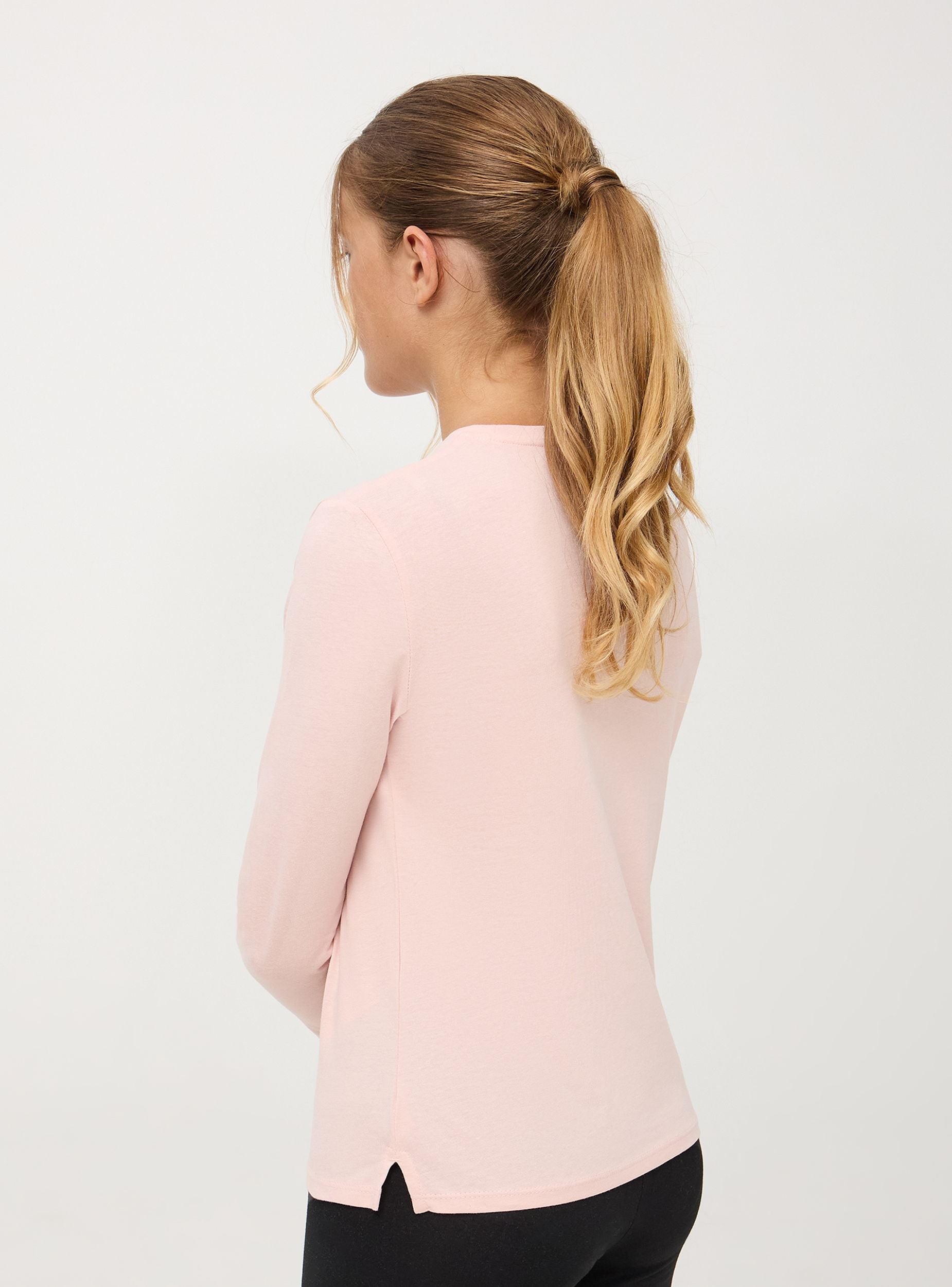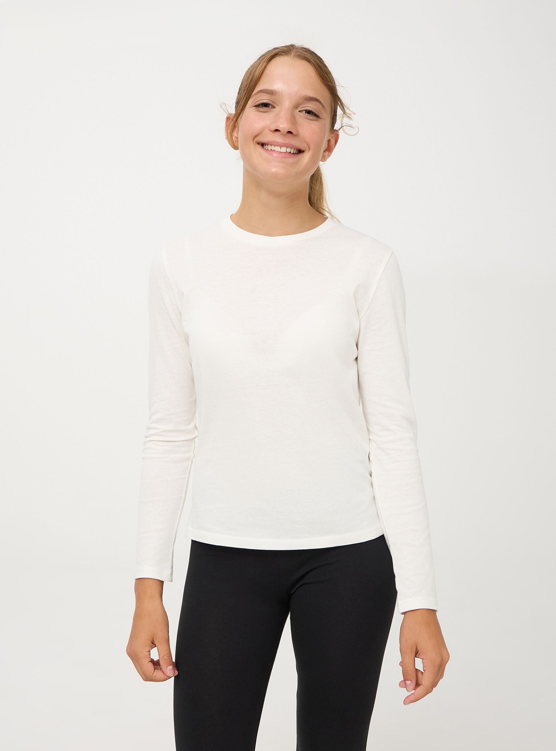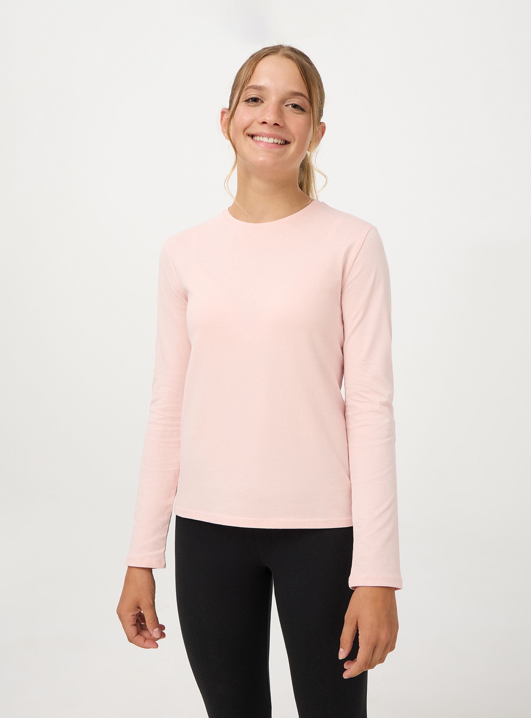 Verpackung mit 3 langärmligen T-Shirts für Mädchen mit Rundhalsausschnitt aus einfarbigem Baumwollstoff. Unverzichtbare Casual-Teile, die man im Kleiderschrank haben sollte, leicht mit jedem Outfit zu kombinieren. Reguläre Passform.Details