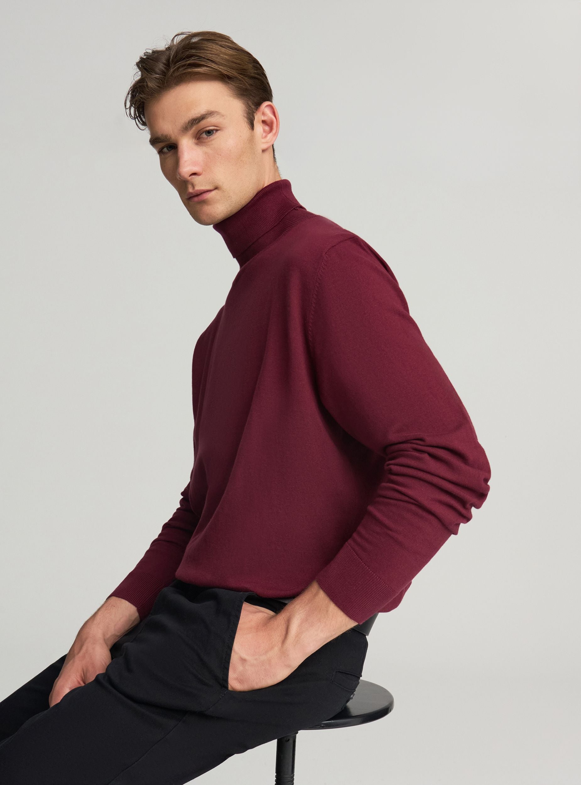 Herrenpullover mit vielseitigem und modernem Design, ideal für einen lässigen oder formellen Look. Perfekt für verschiedene Anlässe, lässt sich dieser einfarbige Pullover leicht mit eleganten Hosen oder Jeans kombinieren. Der Rollkragen verleiht einen Hauch von Raffinesse, während die langen Ärmel für Komfort sorgen. Ein essentielles Kleidungsstück für die Herren-Garderobe.Details