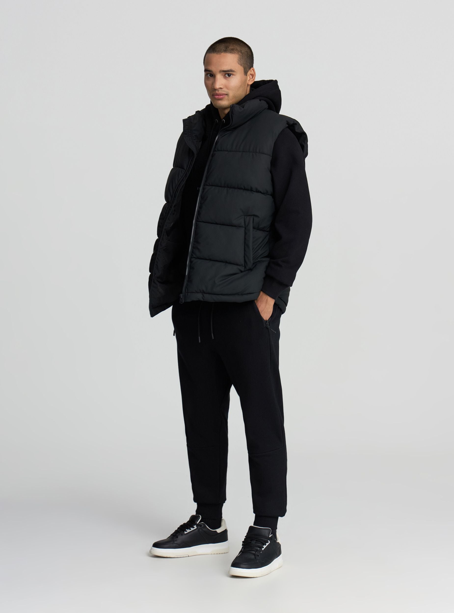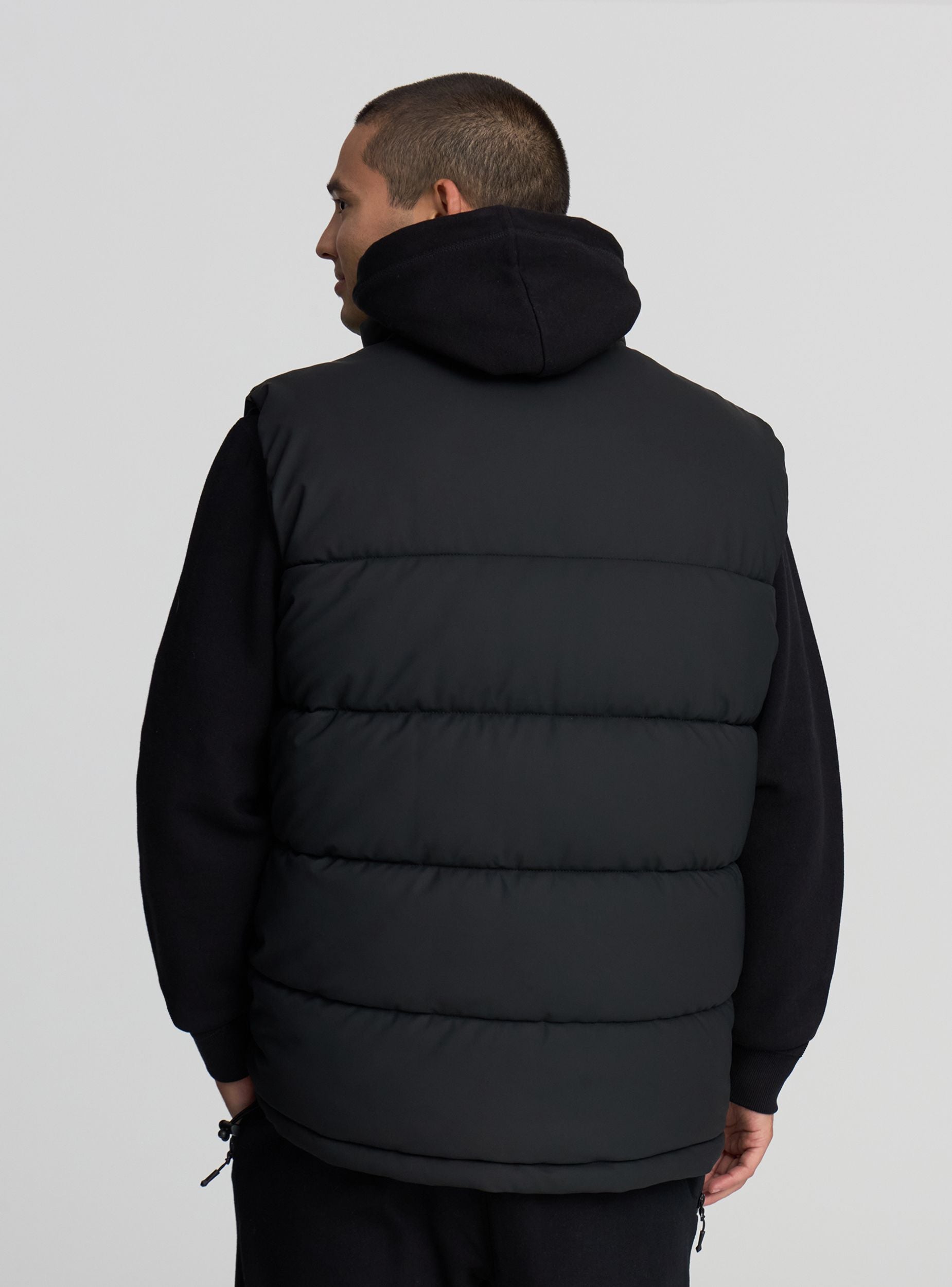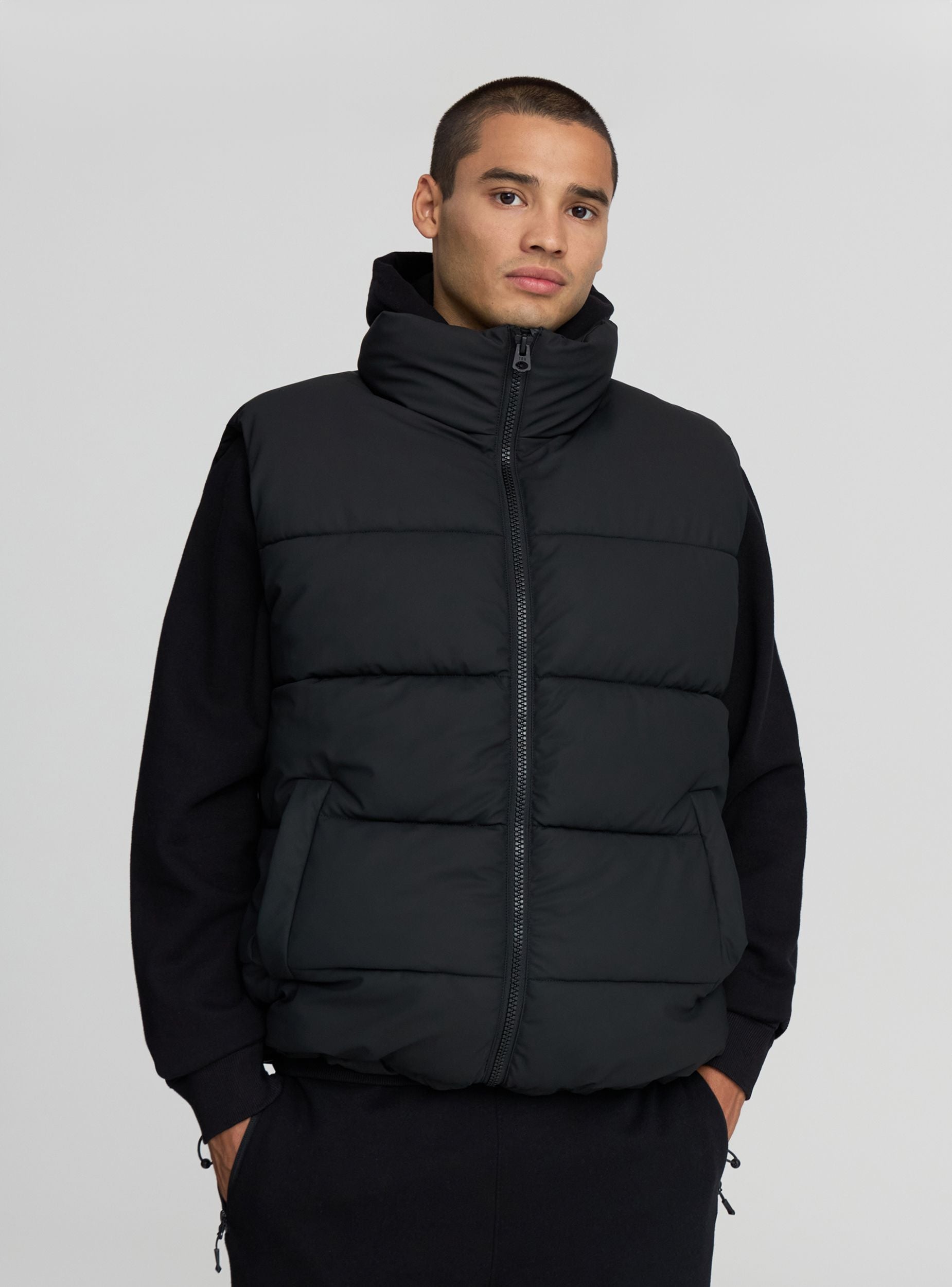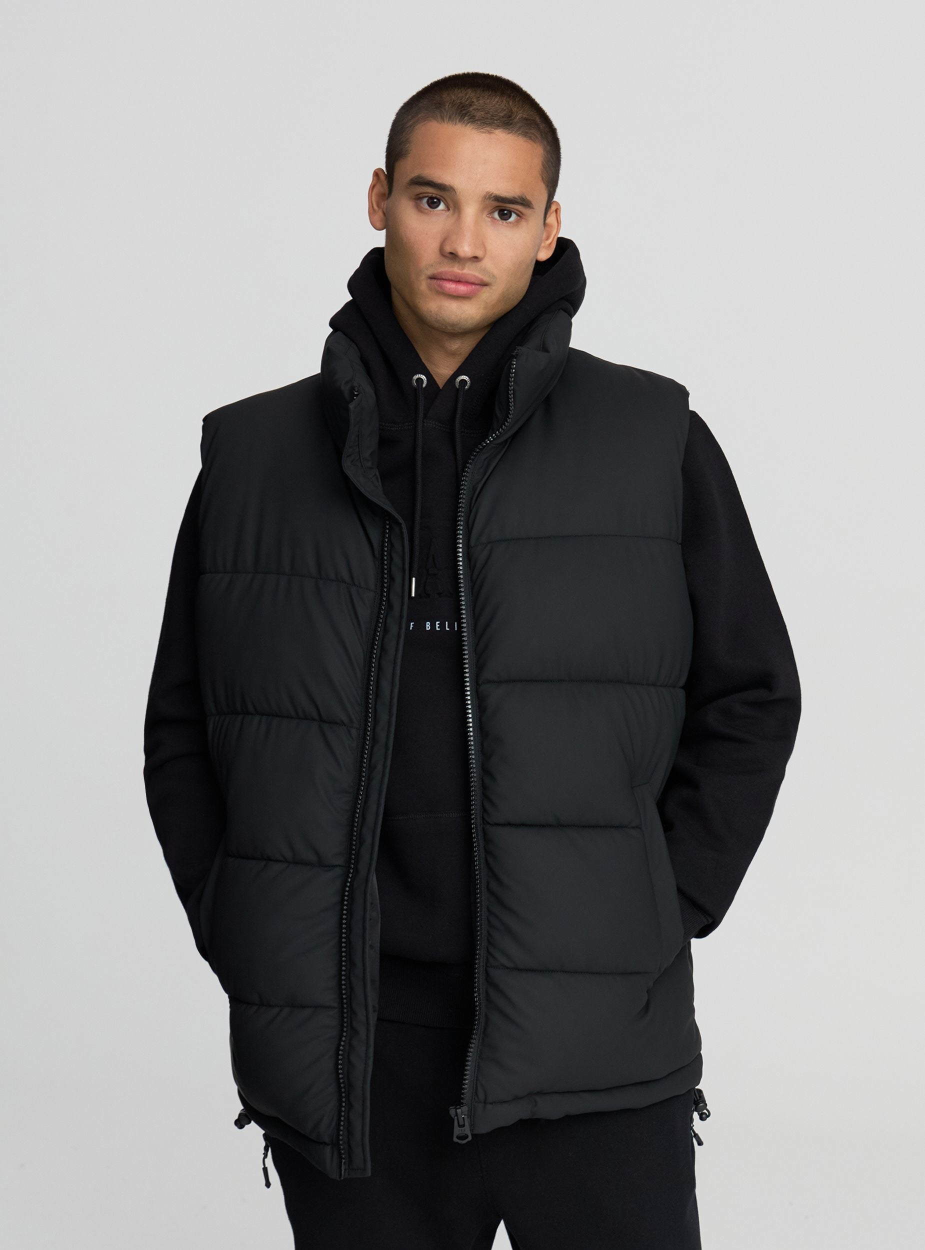 Wattierte Herrenweste, ideal für die Übergangszeiten, perfekt um eine zusätzliche Schicht Wärme hinzuzufügen, ohne auf Bewegungsfreiheit zu verzichten. Das Design verfügt über einen hohen Kragen, einen Stopper am Saum, einen Reißverschluss und praktische Seitentaschen. Reguläre Passform, lässt sich leicht mit Sweatshirts oder Shirts für einen lässigen und vielseitigen Look kombinieren, geeignet sowohl für die Freizeit als auch für Ausflüge in die Stadt. Aus einfarbigem, gummiertem Material gefertigt.Details