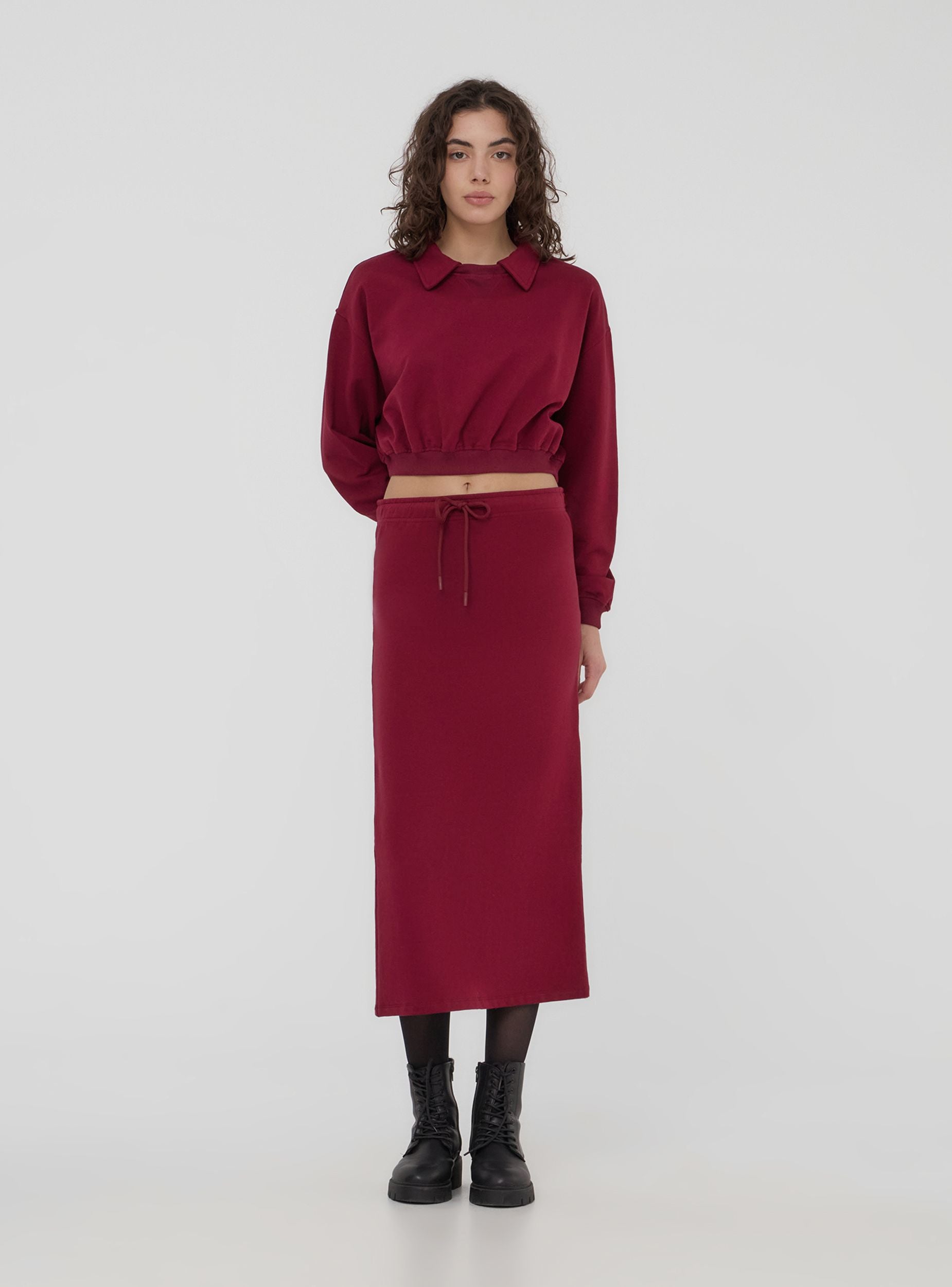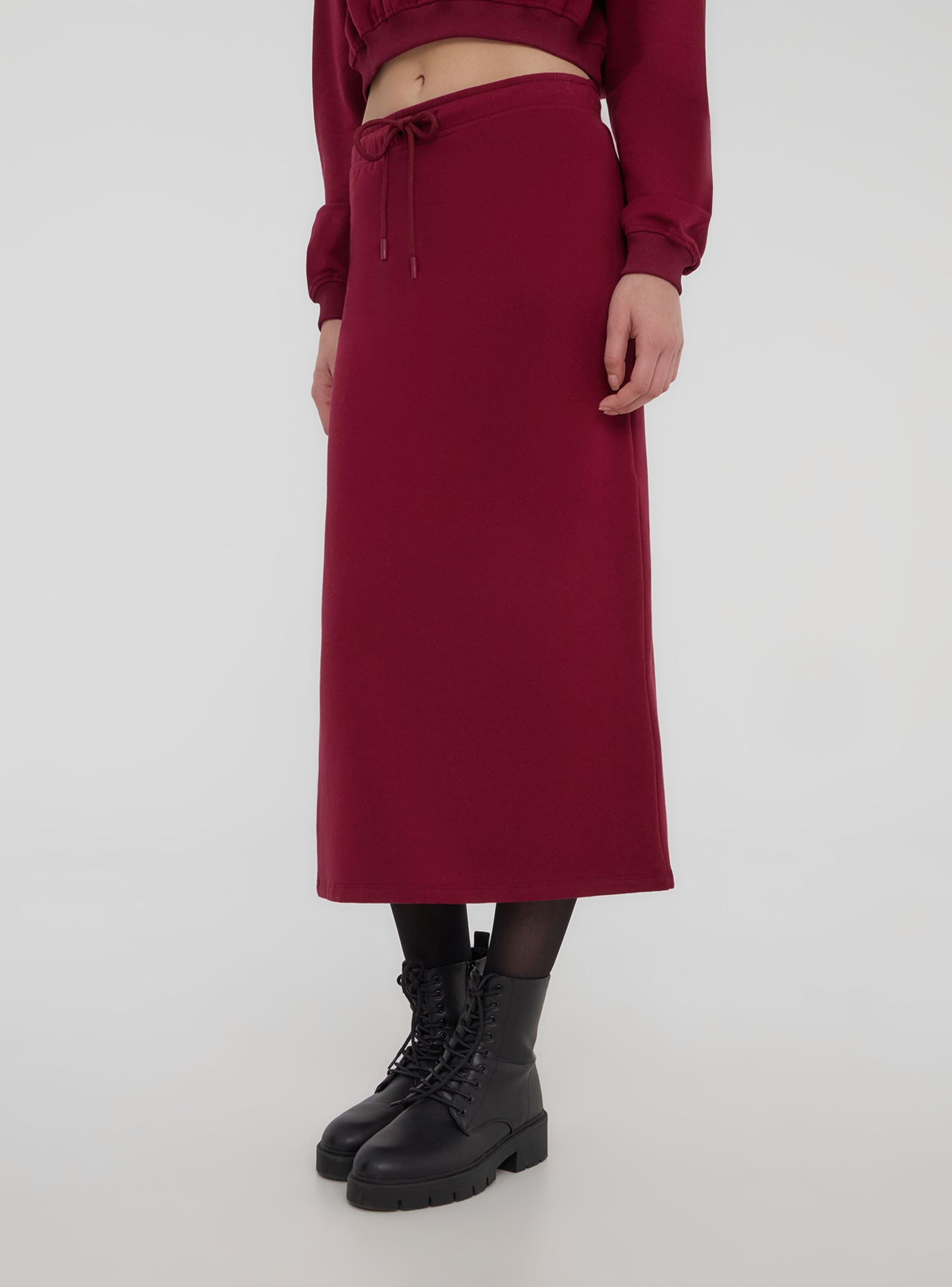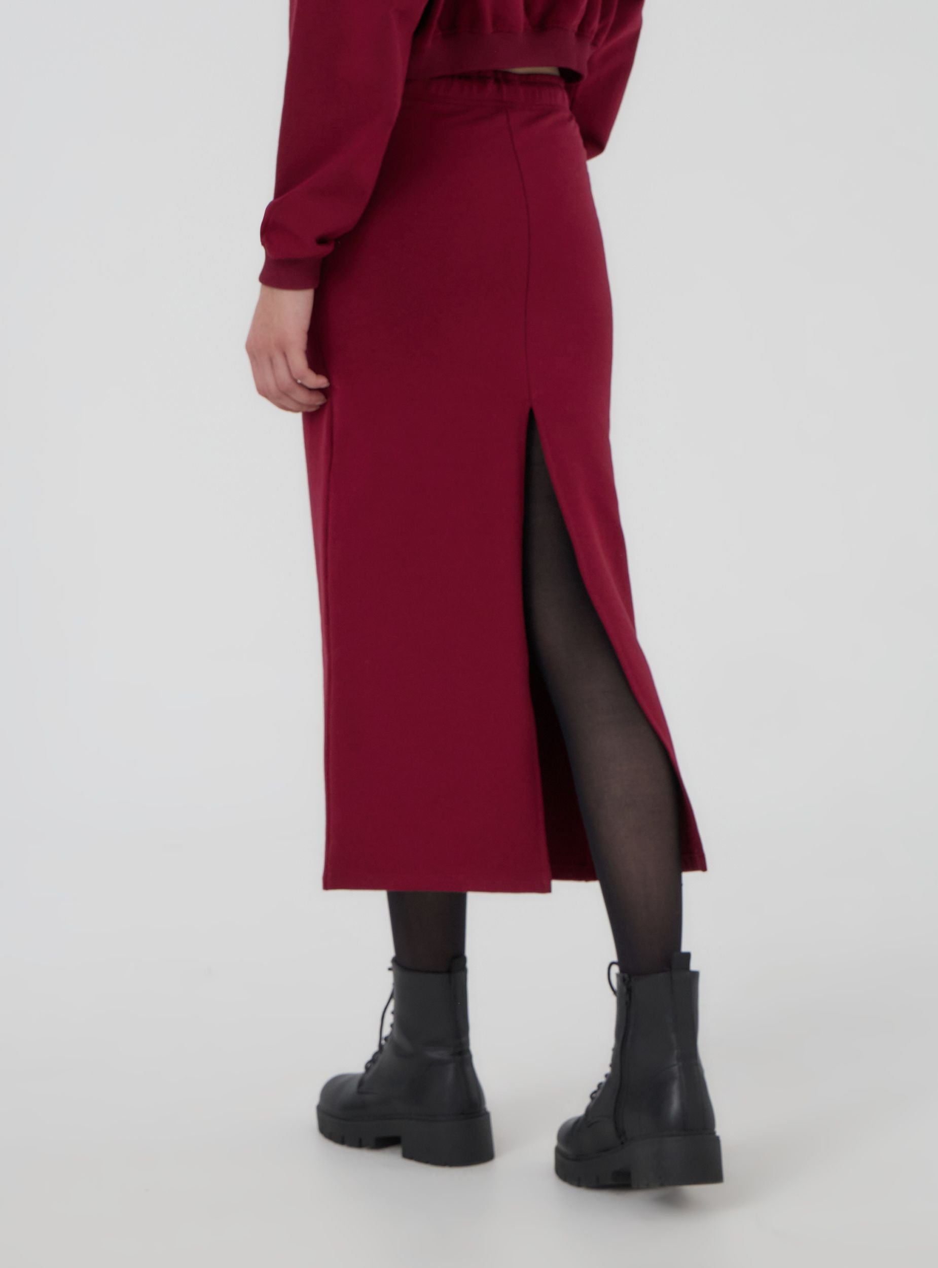 Rock aus Damen-Fleece, ideal für einen lässigen und vielseitigen Look. Dieses knielange Modell mit niedriger Taille passt zu verschiedenen Stilen und bietet Komfort und Praktikabilität. Der Kordelzug in der Taille ermöglicht eine optimale Anpassung an deine Formen. Das einfarbige Design lässt sich leicht mit anderen Teilen der Garderobe kombinieren, während der seitliche Schlitz einen Hauch von Weiblichkeit und Bewegung hinzufügt. Perfekt, um ein entspanntes und modisches Outfit zu vervollständigen, vereint dieser Rock Komfort und Stil in einem einzigen Kleidungsstück, ideal für dynamische Tage.Details