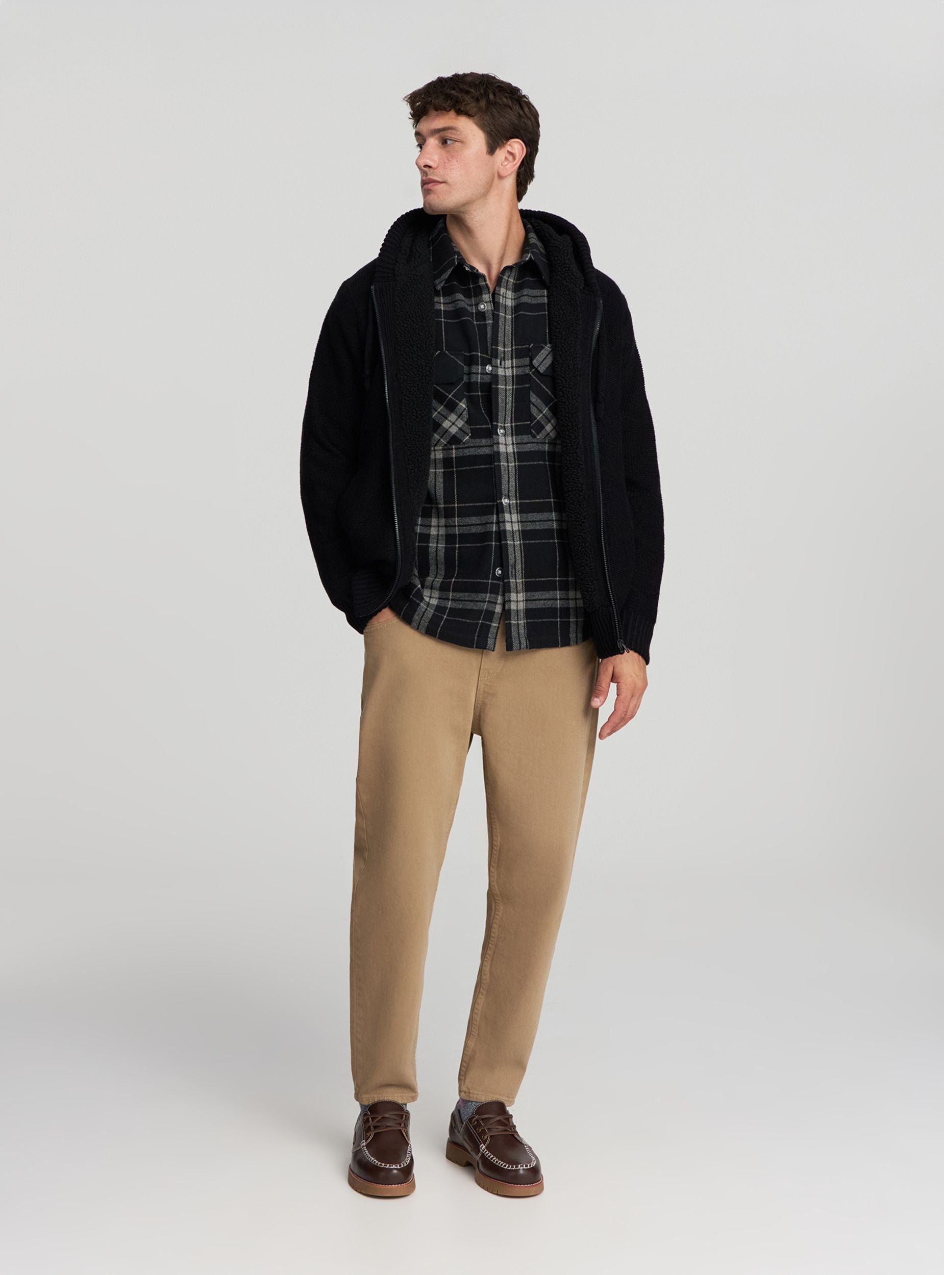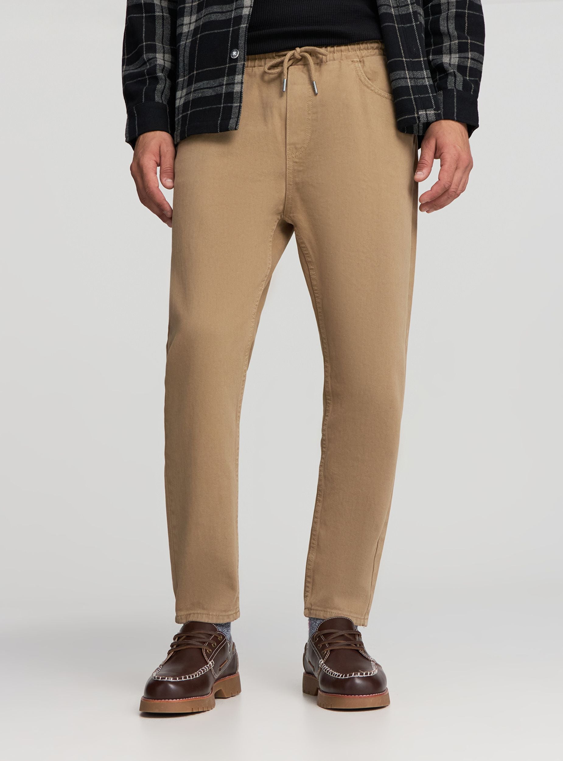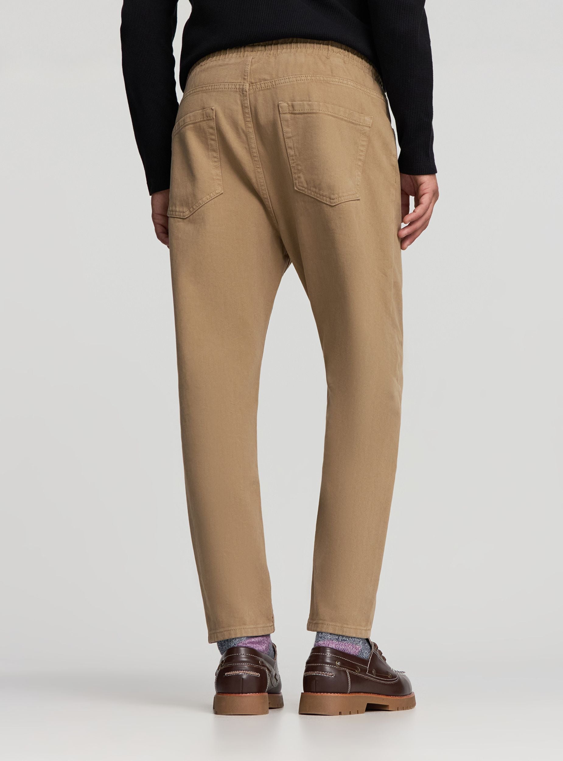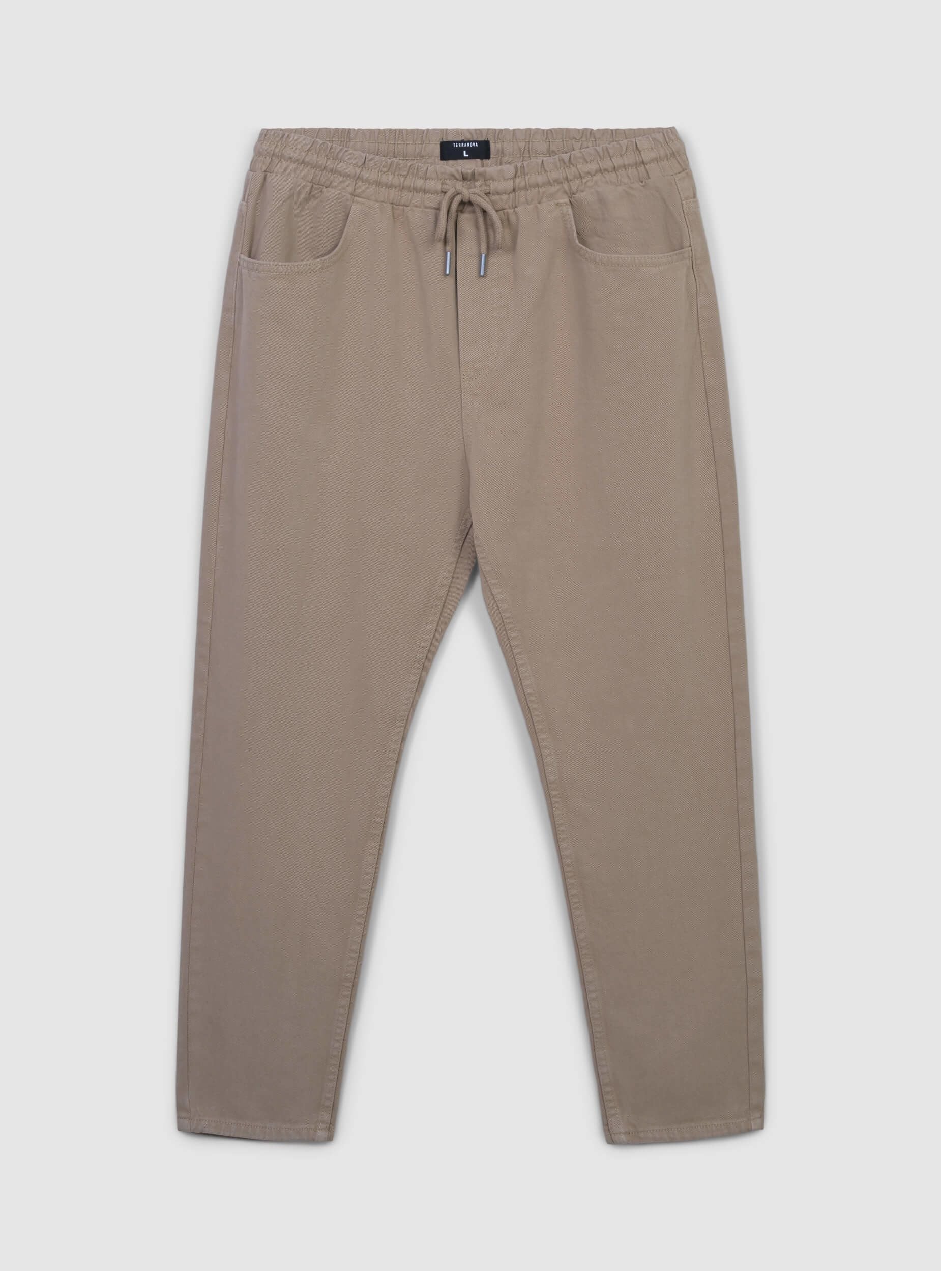 Herrenlange Hose, ideal für einen lässigen und vielseitigen Look. Der elastische Bund mit Kordelzug sorgt für Komfort und Praktikabilität, während die reguläre Passform sich leicht an verschiedene Silhouetten anpasst. Die seitlichen Paspeltaschen und die Gesäßtaschen fügen Funktionalität hinzu und machen diese Hose perfekt für die Freizeit sowie für informelle Ausflüge. Der einfarbige Denim-Stoff macht sie leicht kombinierbar mit jedem anderen Kleidungsstück.