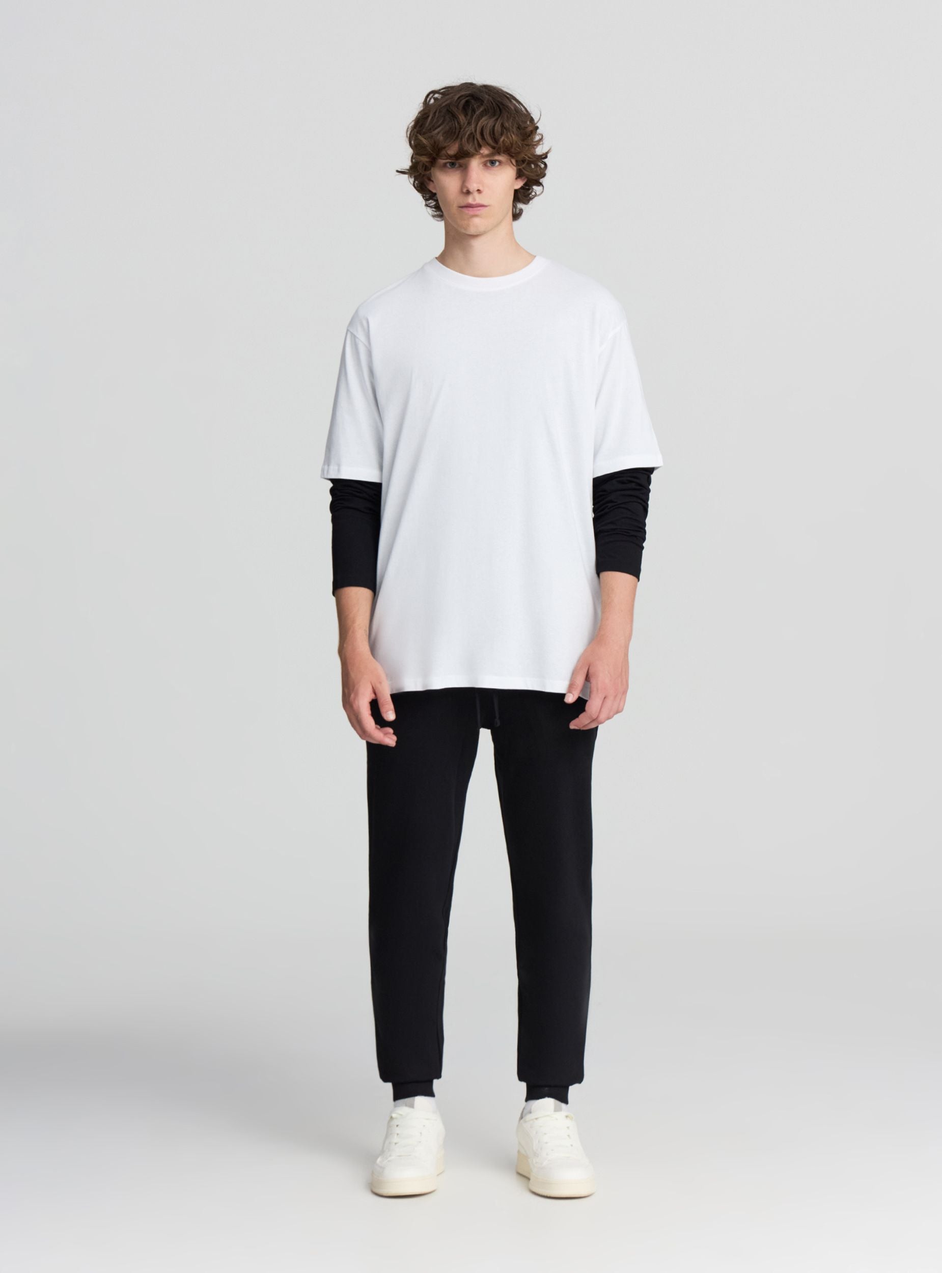 Leichte Herren-Sweatpants, die für Komfort und Stil in jeder Gelegenheit entworfen wurden. Sie verfügen über einen praktischen, verstellbaren Kordelzug in der Taille, der eine individuelle und bequeme Passform gewährleistet. Sie sind mit seitlichen Taschen ausgestattet, die ideal für kleine Gegenstände sind, sowie mit einer Gesäßtasche für zusätzliche Funktionalität. Der elastische Bund und die Bündchen am Beinabschluss runden das Design ab und bieten einen optimalen Halt sowie eine moderne Silhouette. Perfekt für einen lässigen und entspannten Look, sind diese Hosen eine ausgezeichnete Wahl für die Freizeit oder den Alltag.Details