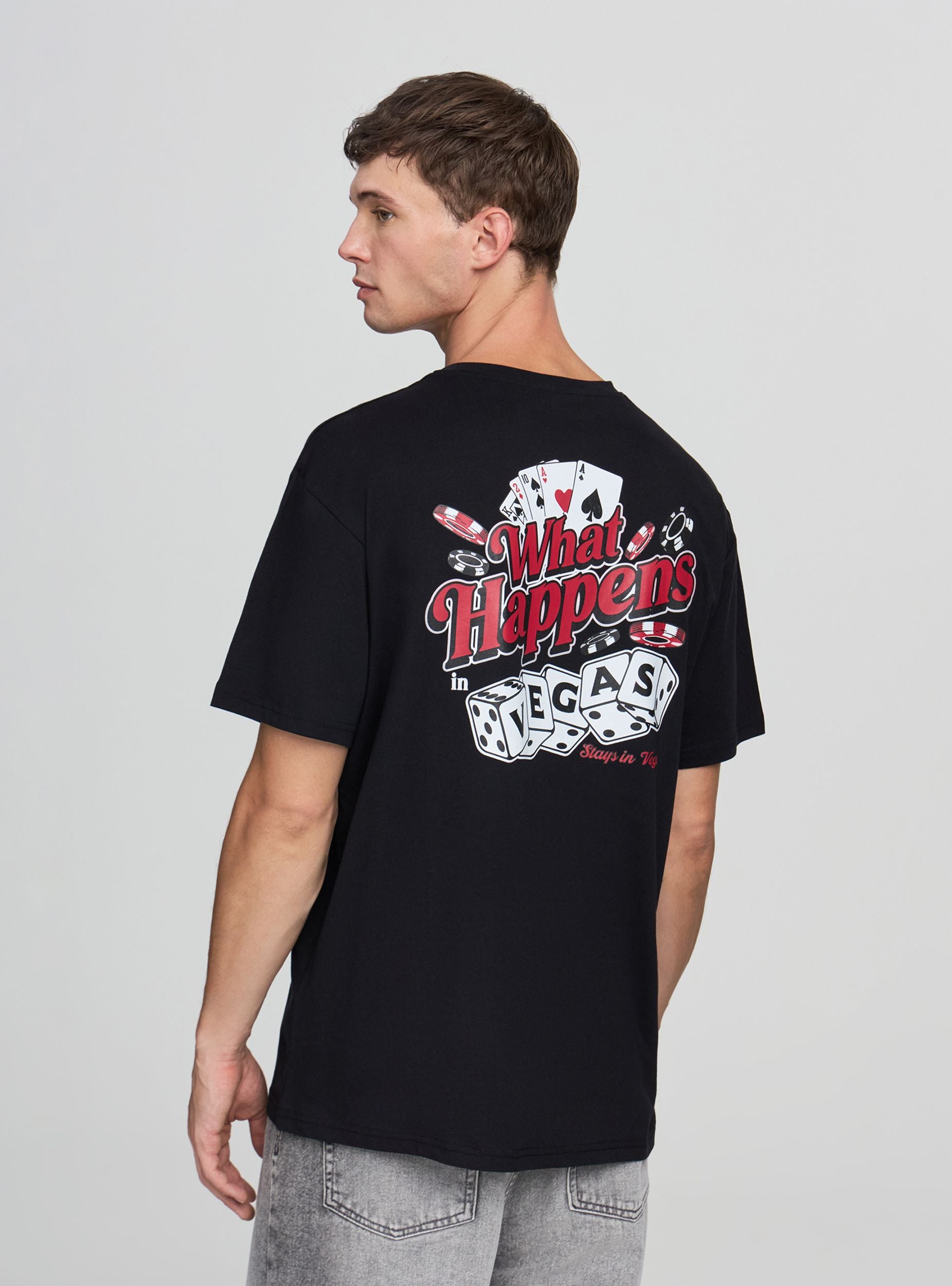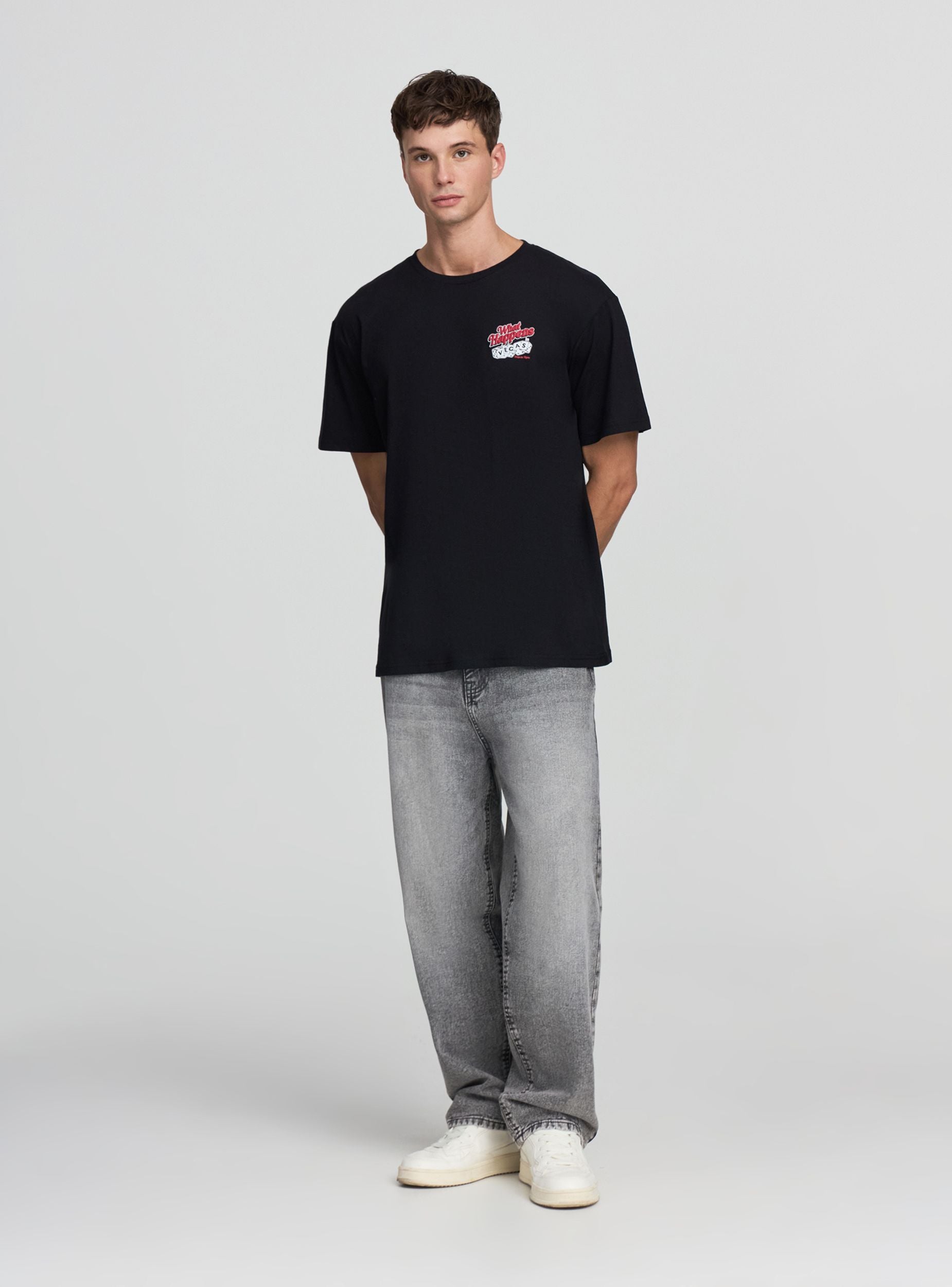 Herren-T-Shirt mit kleinem Grafikdruck auf der Vorderseite und großem Druck auf der Rückseite. Halbärmliges Modell mit lockerem Schnitt, ideal für einen lässigen und informellen Look. Perfekt kombinierbar mit Jeans oder Sporthosen, zeichnet sich dieses T-Shirt durch seinen auffälligen Druck vorne und hinten aus, der deinem Outfit eine originelle Note verleiht.Details