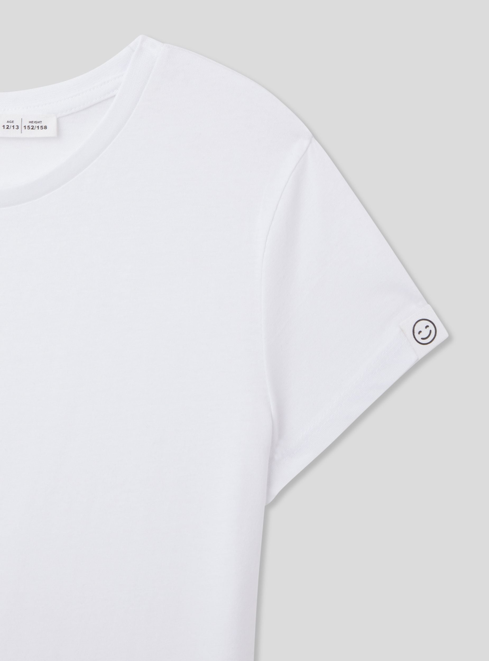 Pack bestehend aus 3 T-Shirts für Mädchen, ideal für die Freizeit und Tage im Freien. Mit kurzen Ärmeln, Rundhalsausschnitt und einem einfarbigen Design. Bereichert durch ein originelles Detail, das Etikett mit einem lächelnden Gesicht auf dem Ärmel. Perfekt für einen einfachen und gepflegten Look, der Komfort und Stil in jeder Gelegenheit garantiert.Details