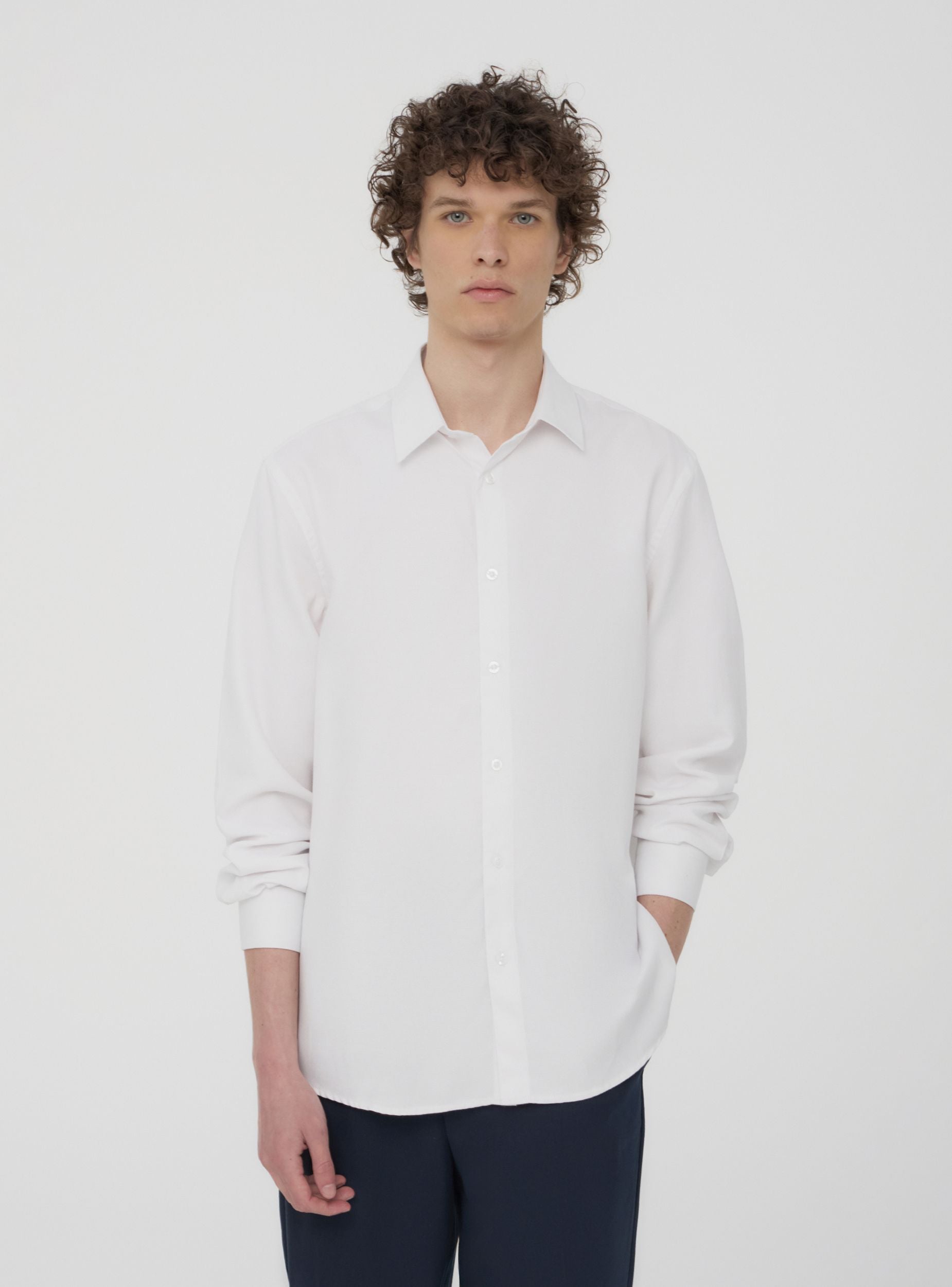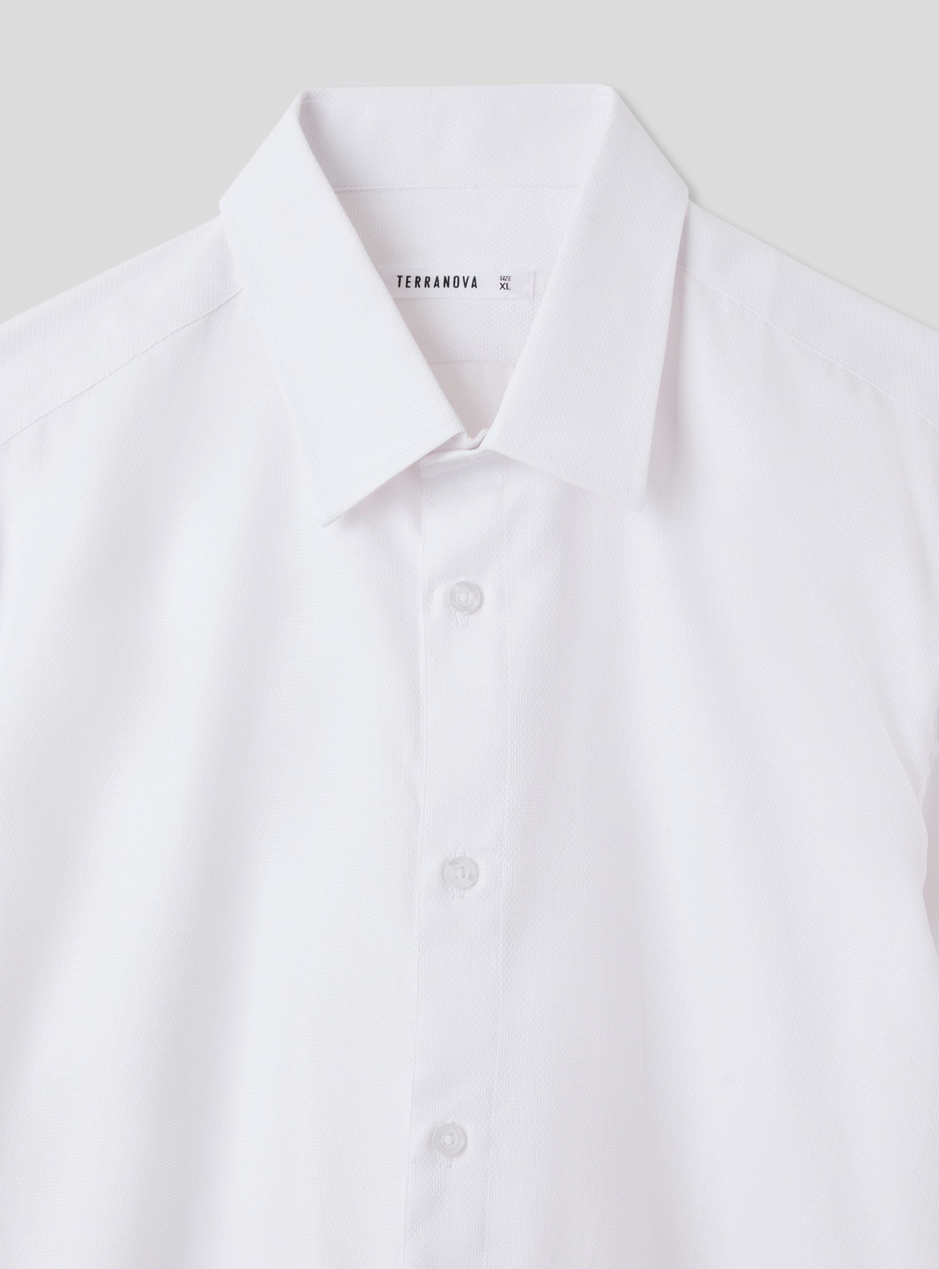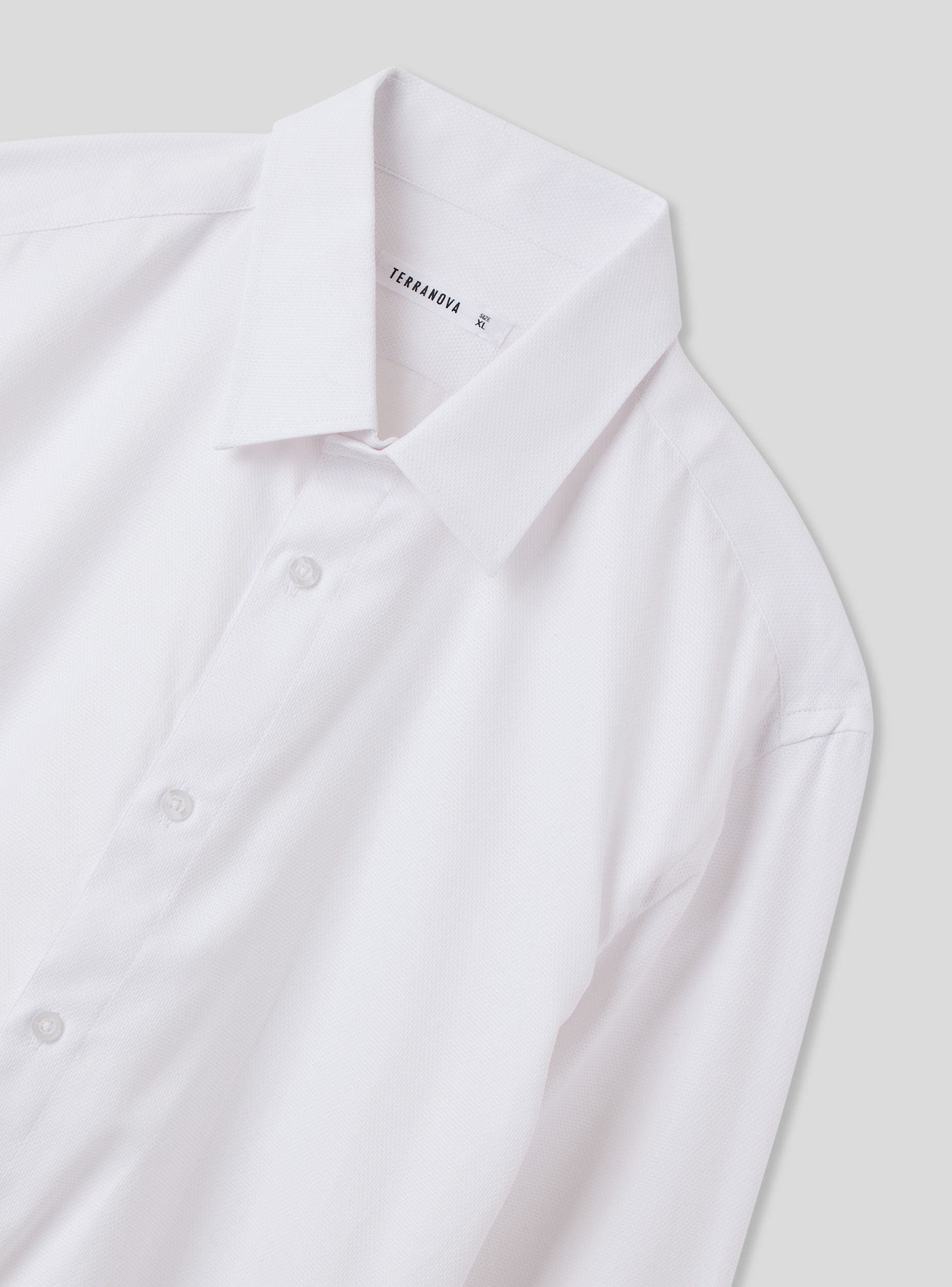 Hemd für Herren in einfarbigem Design mit langen Ärmeln, klassischem Kragen und Knopfleiste. Perfekt für einen eleganten und raffinierten Look, ideal für die Arbeit, Zeremonien oder formelle Anlässe. Passt perfekt zu Anzughosen und Blazern für ein professionelles Outfit, kann aber auch mit Jeans für einen lässigeren Chic-Stil getragen werden. Ein essentielles Kleidungsstück aus Piqué-Baumwolle für jede Herren-Garderobe.