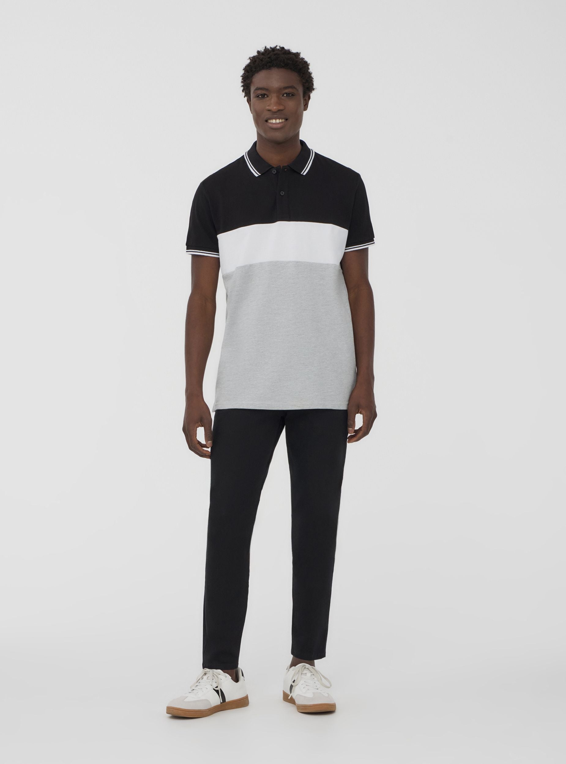 Herren-Polo-Shirt mit kurzen Ärmeln und Knöpfen am Kragen, aus Piqué für einen gepflegten und bequemen Look. Das Blockfarben-Design verleiht einen modernen und dynamischen Touch, perfekt für legere, aber raffinierte Outfits. Ideal für die Freizeit oder einen smart-casual Look, lässt es sich mit Jeans und Sneakers für einen sportlichen Akzent oder mit Chino-Hosen für ein anspruchsvolleres Ergebnis kombinieren.Details