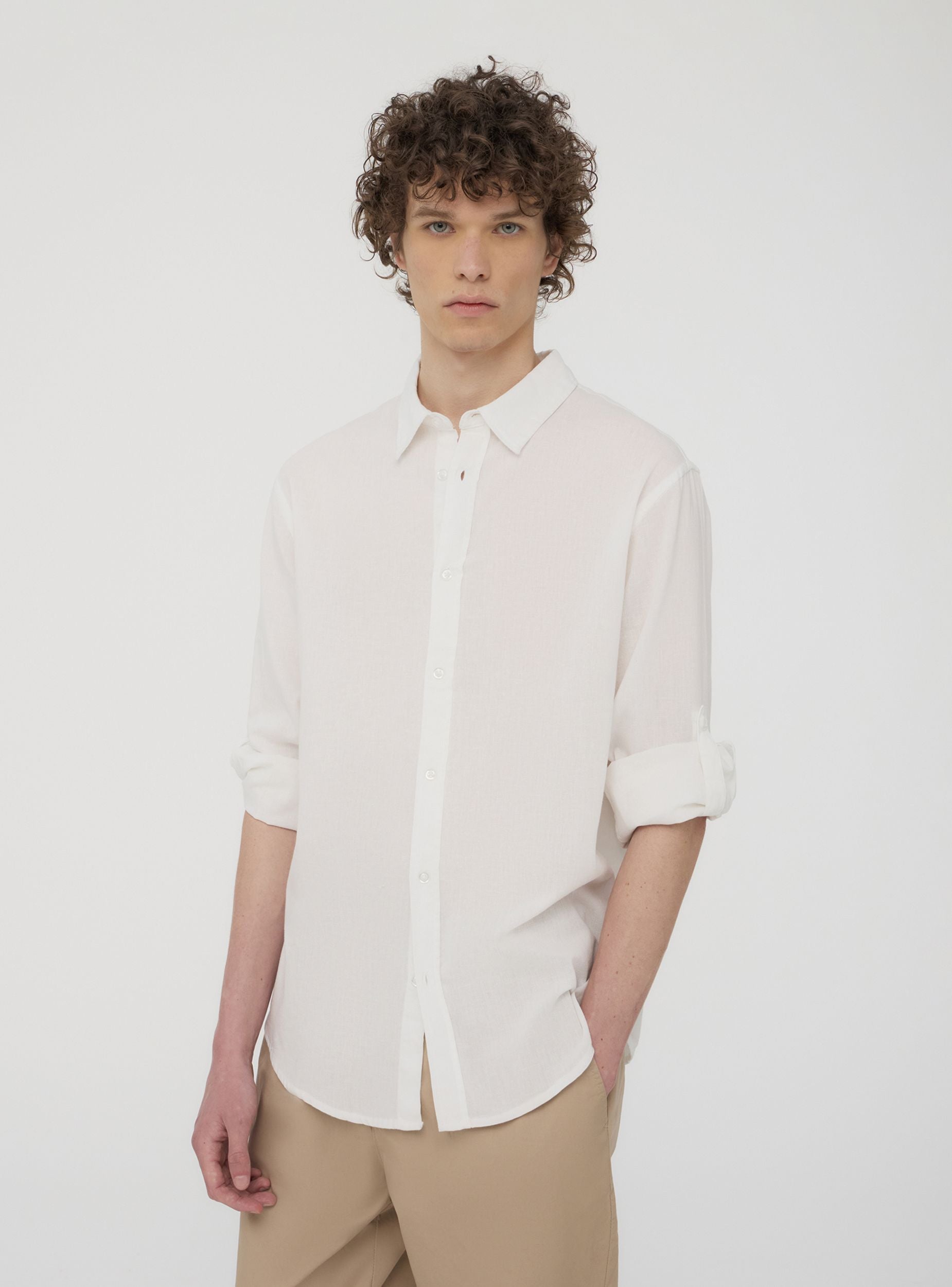 Herrenhemd in einfarbigem Design mit langen Ärmeln. Klassischer Kragen und Knopfverschluss. Perfekt für formelle und informelle Anlässe, lässt es sich leicht mit eleganten Hosen für einen anspruchsvollen Look oder mit Jeans für einen lässigeren Touch kombinieren. Ideal für das Büro, Abendveranstaltungen oder Ausgänge mit Freunden, verleiht es jedem Outfit Eleganz und Vielseitigkeit und sorgt für einen gepflegten und zeitlosen Stil.Details