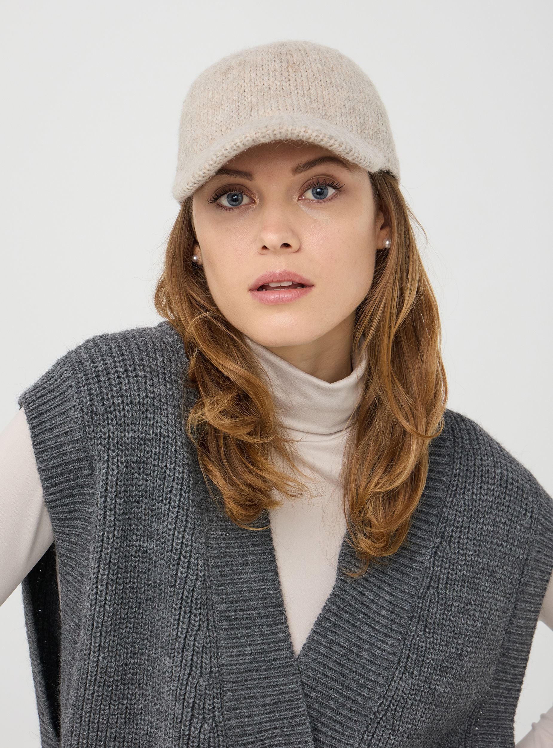 Damen Baseballmütze, aus einfarbiger Strickware hergestellt. Perfekt, um deinen Winteroutfits einen Hauch von Stil zu verleihen.