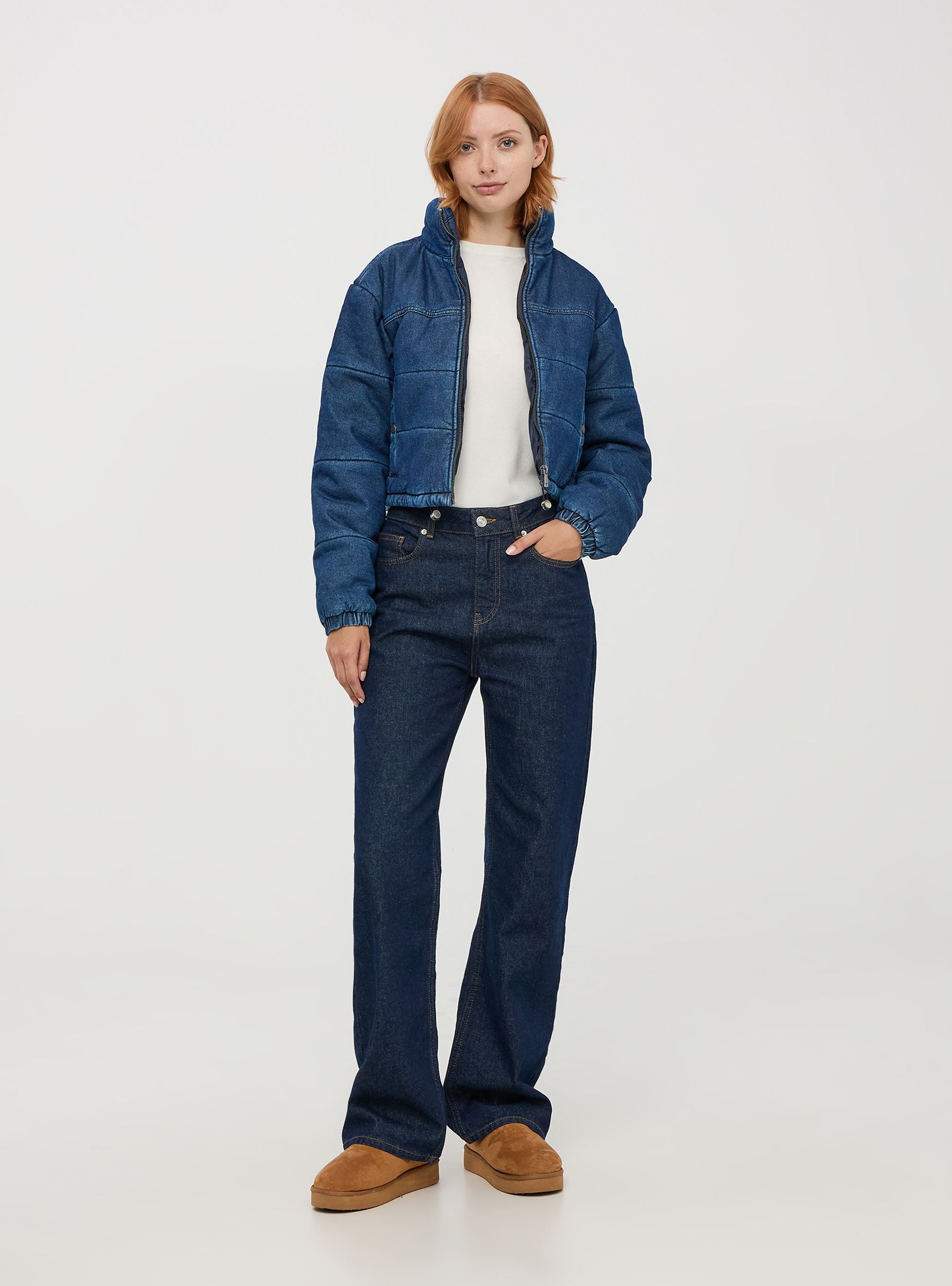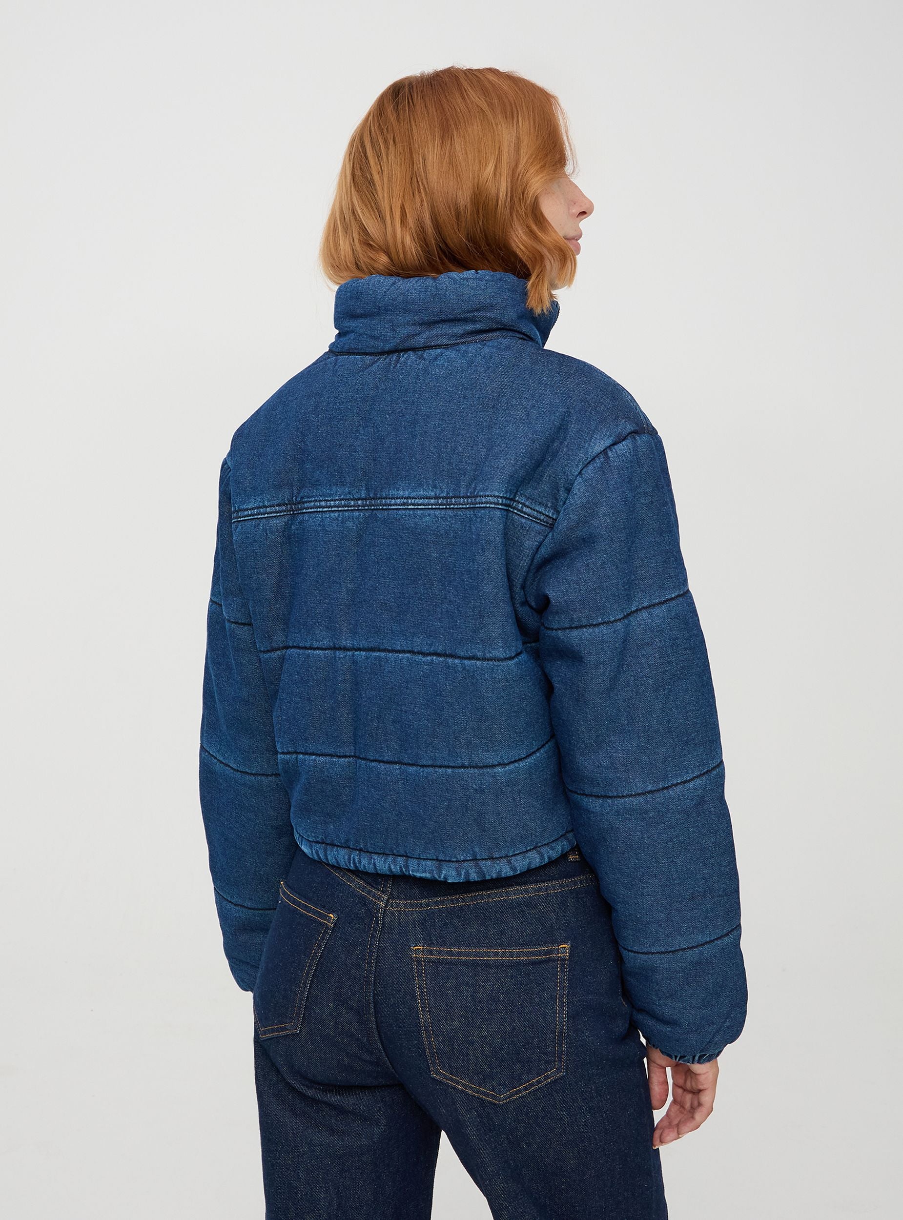 Gepolsterte Crop-Denimjacke mit hohem Kragen