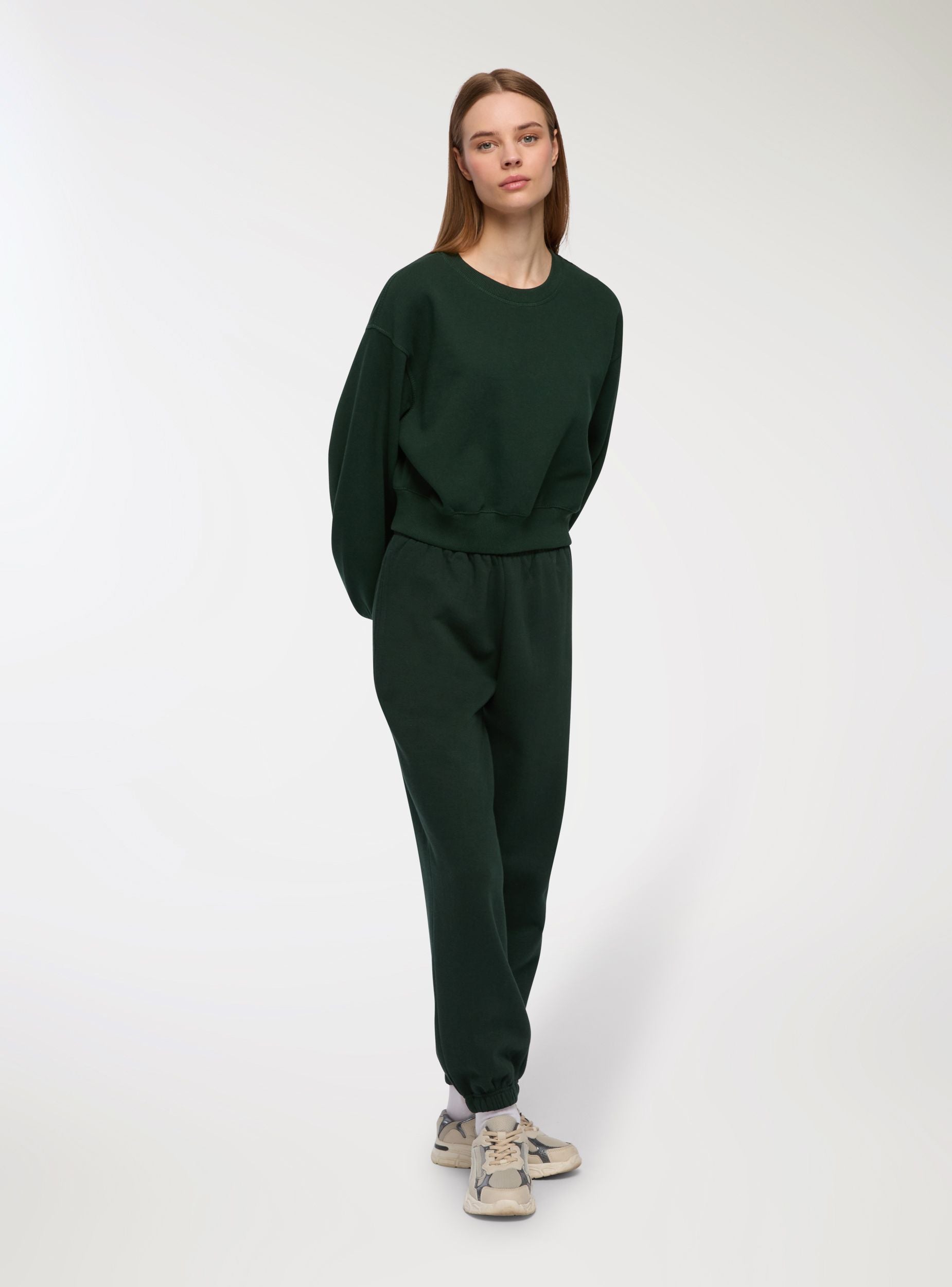 Hochtaillierte, schwere Damen-Jogginghose mit elastischem Bund und seitlichen Taschen. Komfort und Stil vereinen sich in dieser einfarbigen Hose, die ideal für die kälteren Monate ist. Das Modell bietet eine bequeme Passform mit hohem Bund und einem innenliegenden elastischen Band, das Unterstützung ohne Einschränkungen gewährleistet. Die elastischen Bündchen an den Knöcheln verleihen eine moderne und sportliche Silhouette, perfekt für entspannte Momente, Training oder Freizeit. Ausgestattet mit praktischen seitlichen Taschen, sorgen diese Hosen aus schwerem Stoff für Wärme und Funktionalität in jeder Situation. Ein Basic-Teil, das jedoch essenziell ist, gedacht für diejenigen, die das richtige Gleichgewicht zwischen Praktikabilität und Trend suchen.