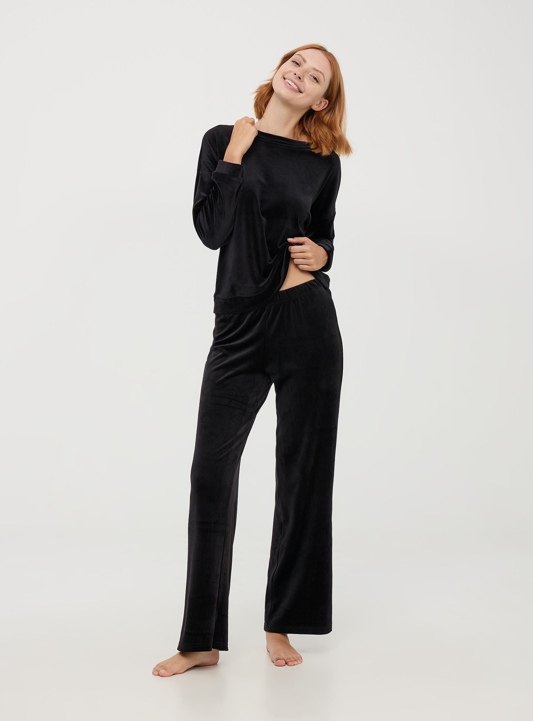 Damen-Pyjama-Hosen aus einfarbigem Chenille. Sie verfügen über ein elegantes und komfortables Design. Ausgestattet mit einer weiten und lockeren Passform, mit einem elastischen Bund für zusätzlichen Komfort.