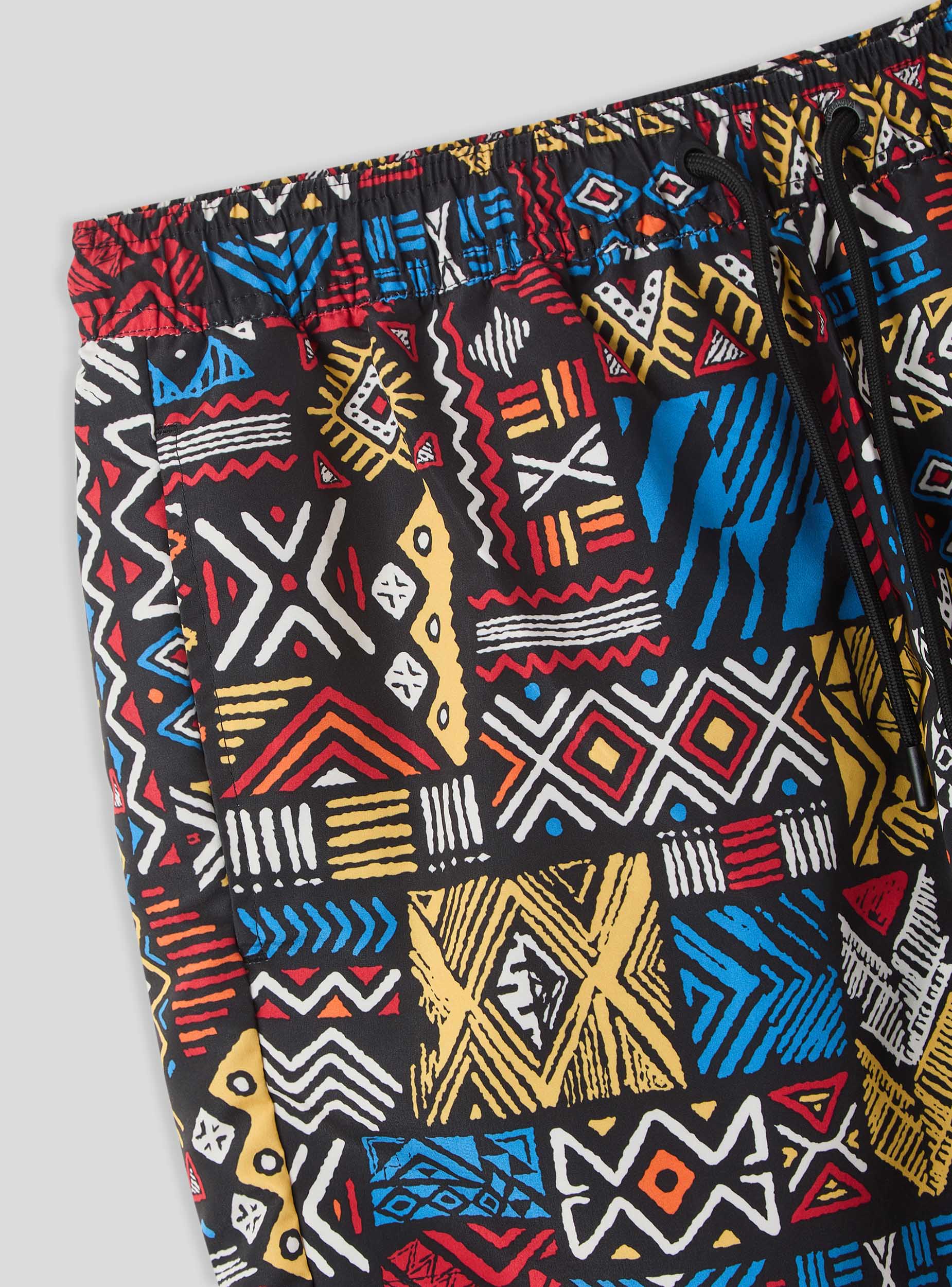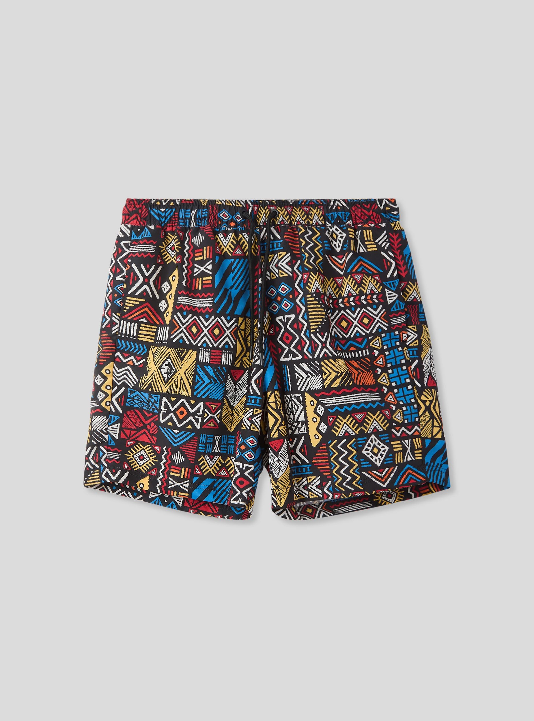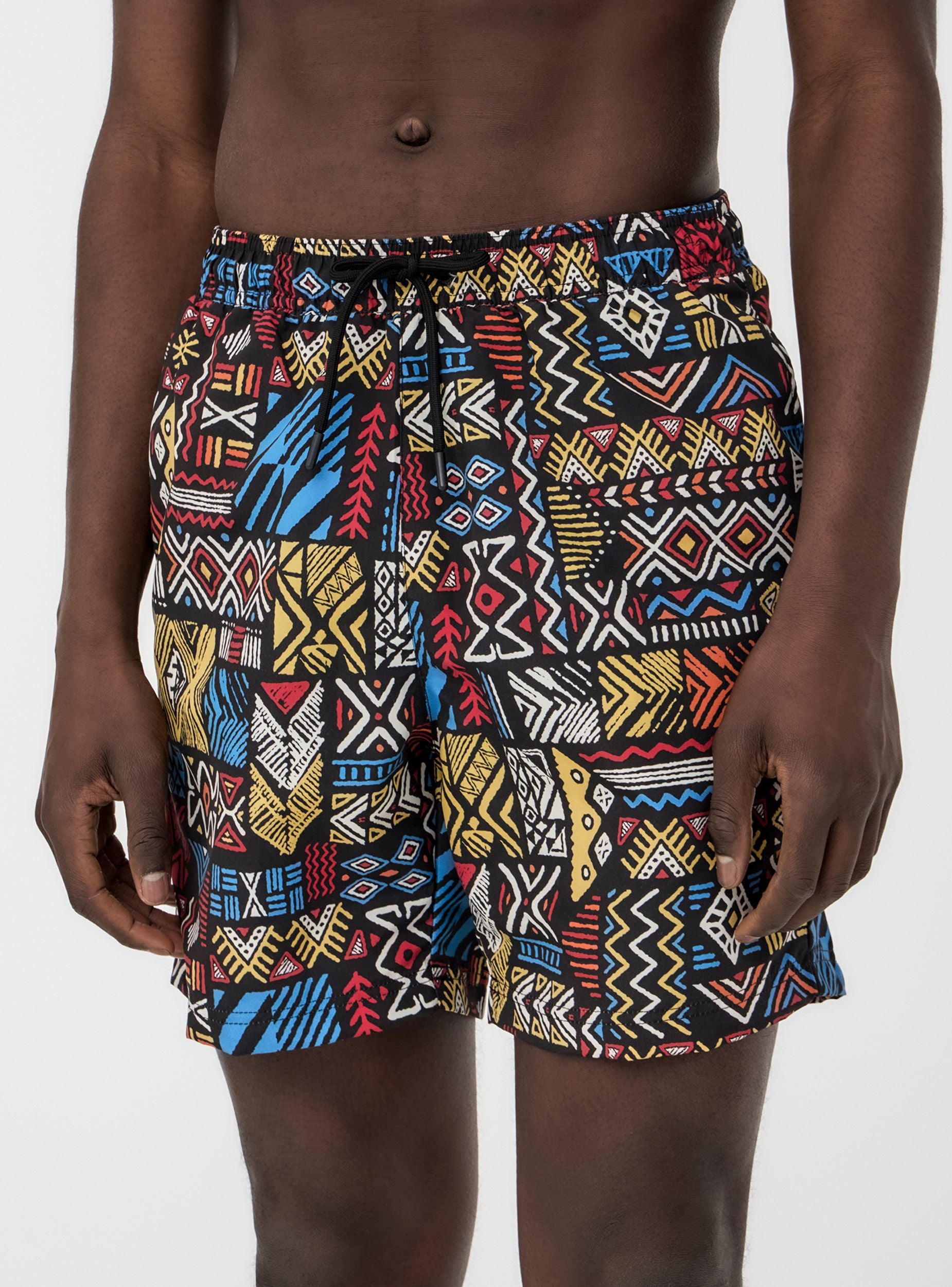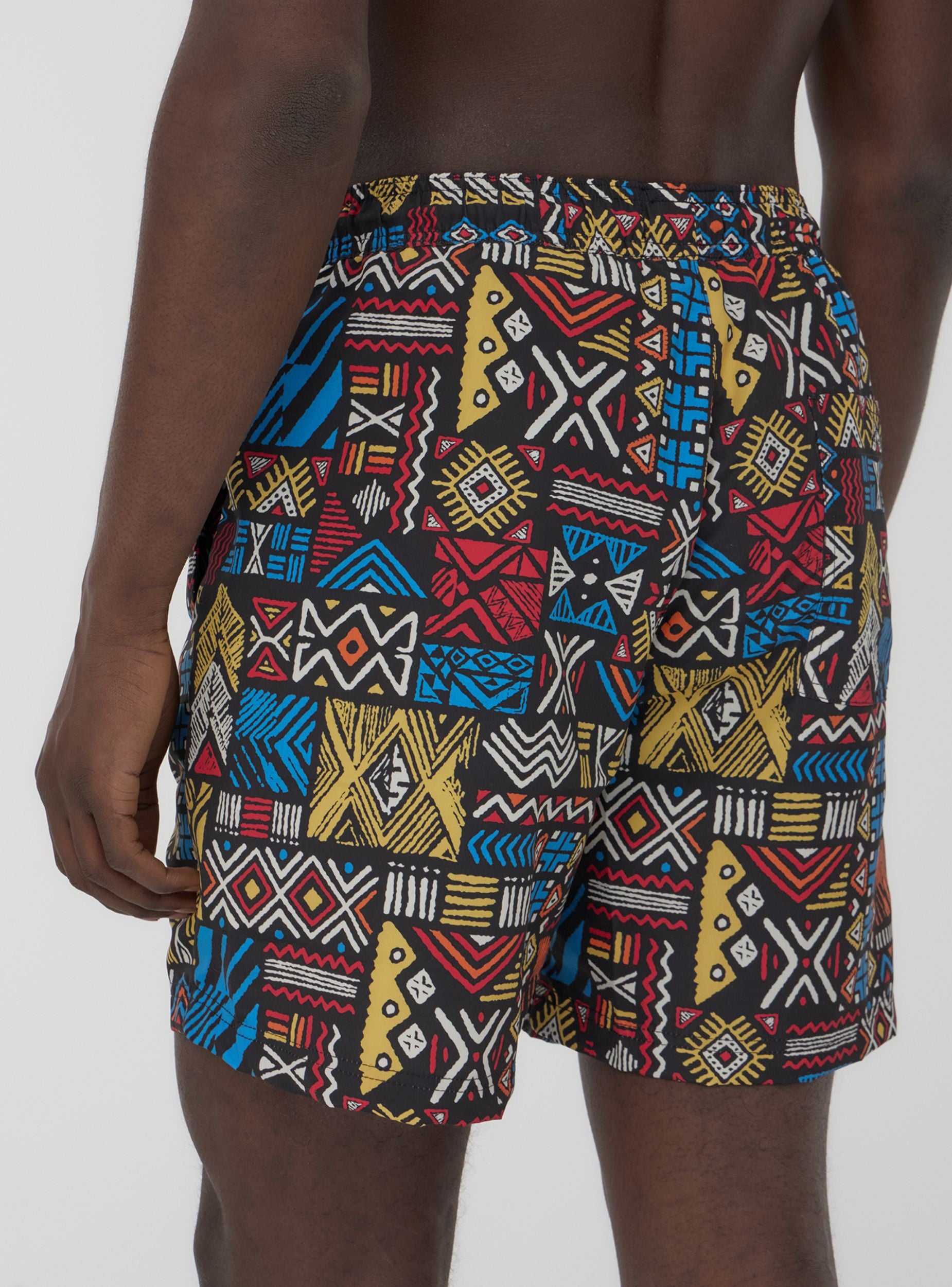 Herren-Badehose mit originellem Design, diese Bermudashorts mit ethnischem Muster sind ideal für einen markanten Look am Strand oder im Schwimmbad. Der verstellbare Kordelzug sorgt für eine perfekte Passform, während die seitlichen Taschen Praktikabilität bieten. Die hintere Tasche mit Klettverschluss fügt ein funktionales Detail hinzu. Perfekt kombinierbar mit einem T-Shirt und Flip-Flops für einen stilvollen Sommer.