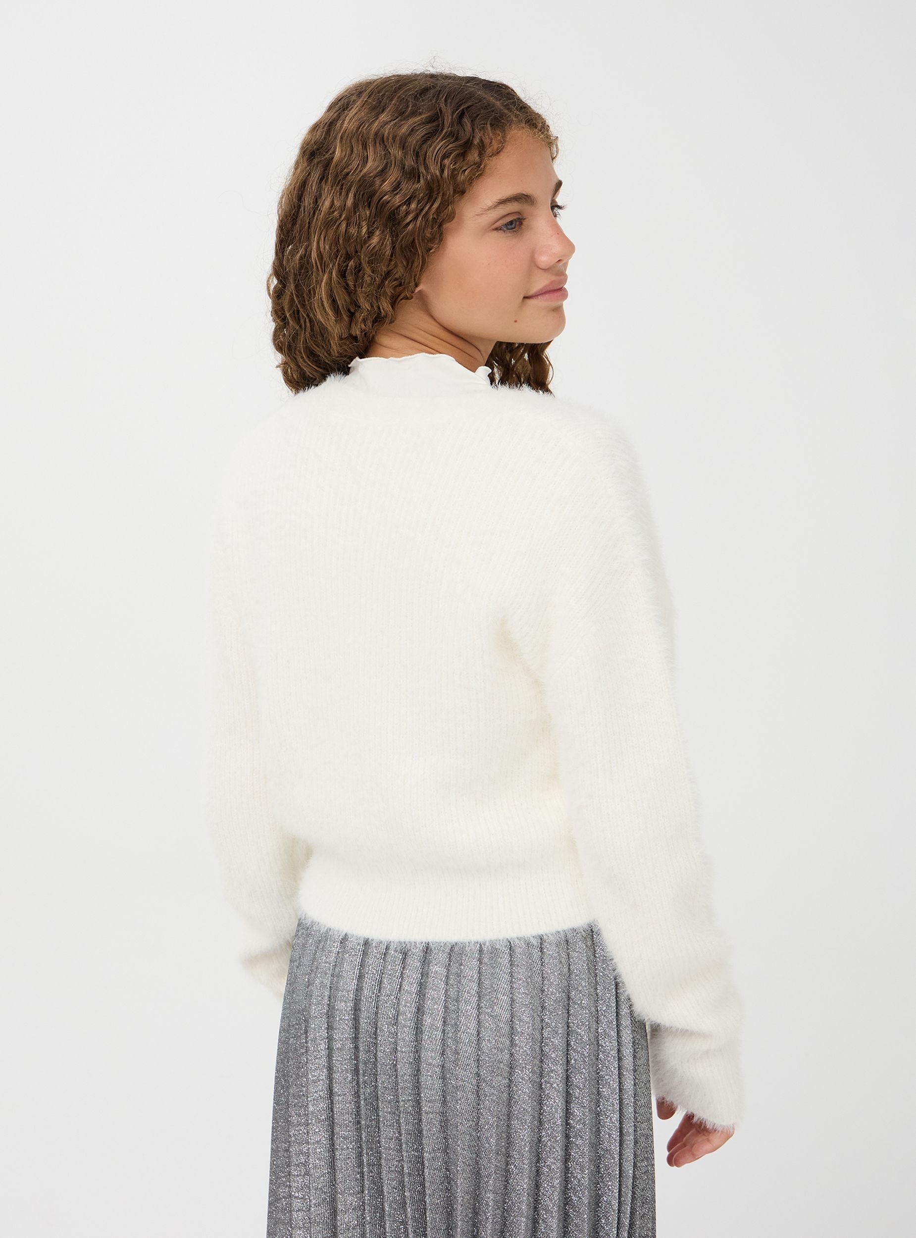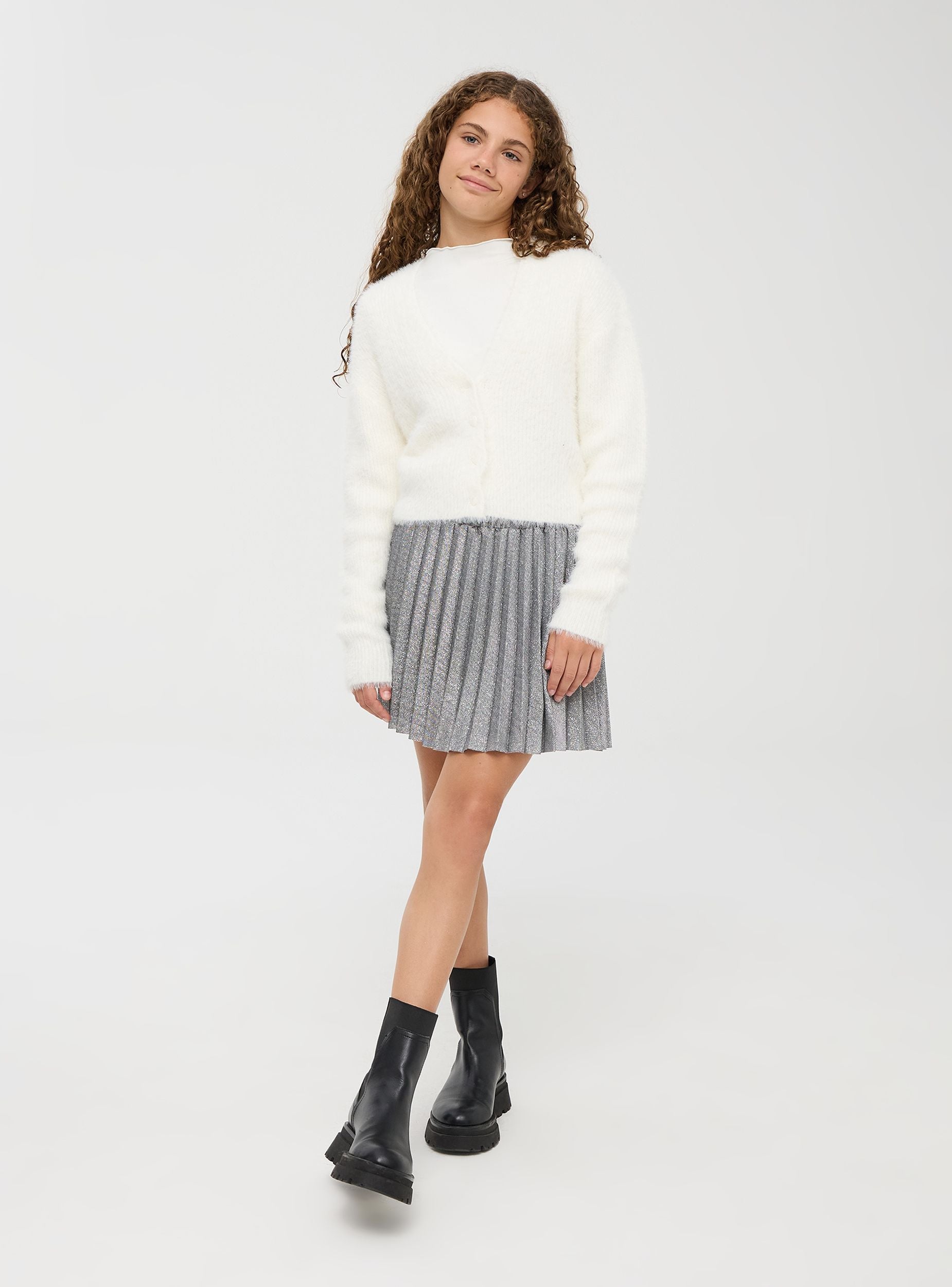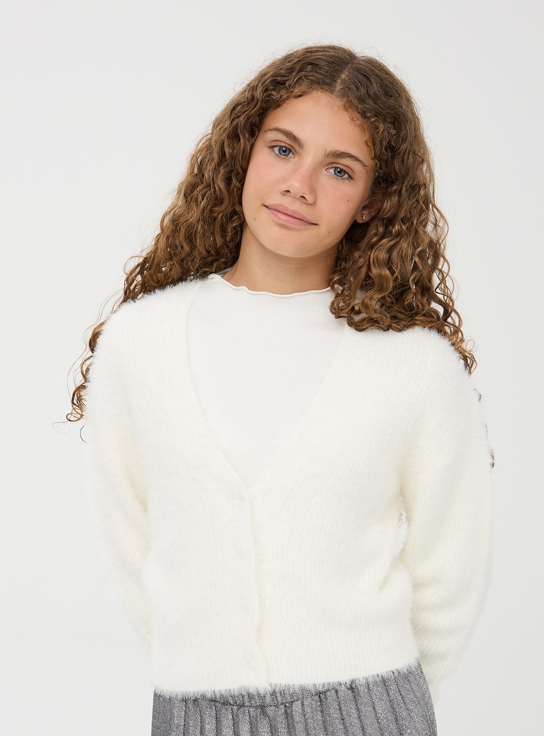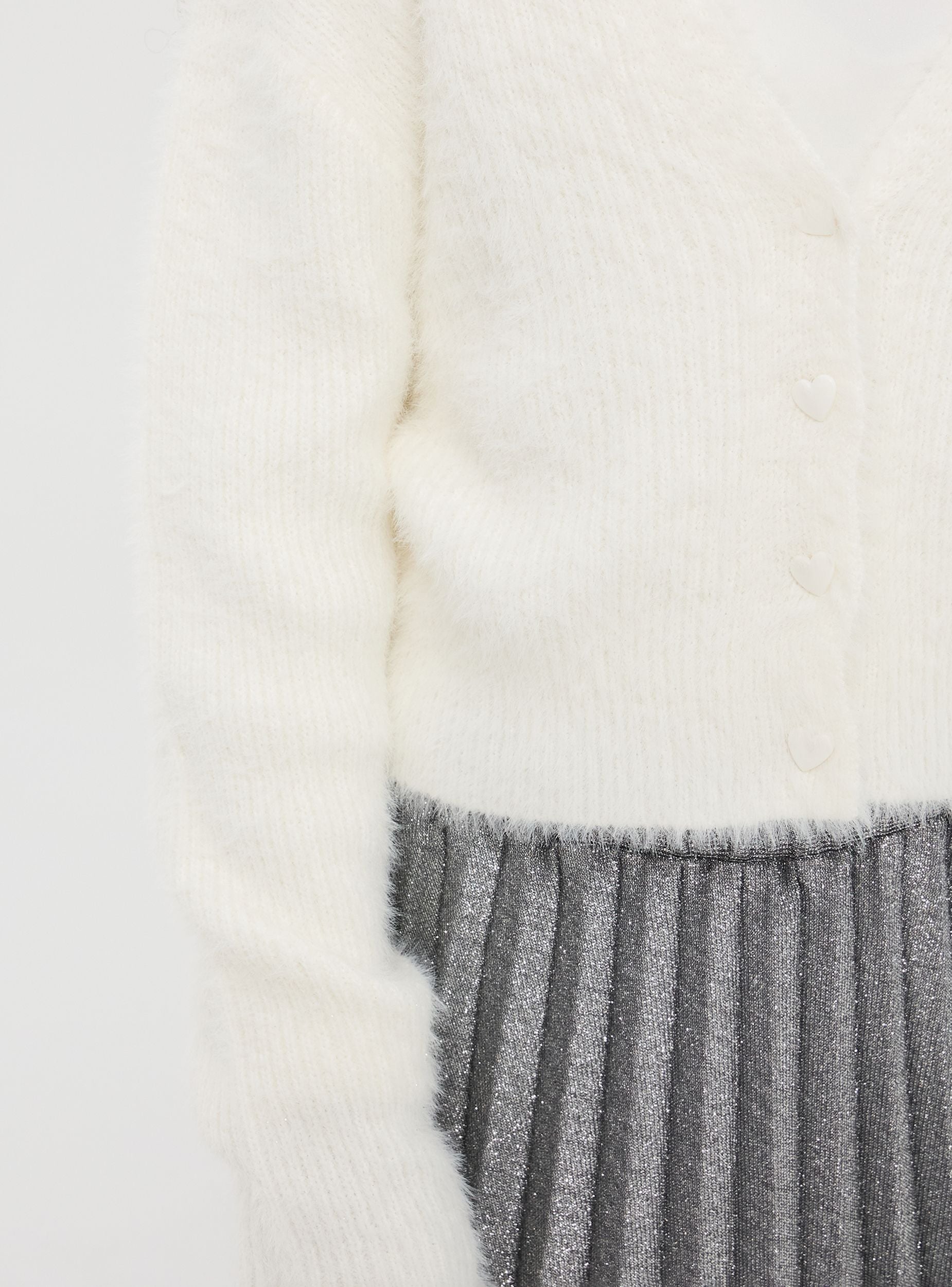 Mädchen-Cardigan mit langen Ärmeln, Knopfverschluss in Herzform, um dem Outfit einen romantischen Touch zu verleihen. Das weiche und gemütliche Design bietet optimalen Komfort und ist ideal, um das Mädchen an kühleren Tagen warm zu halten. Perfekt, um lässige oder elegante Looks zu vervollständigen, lässt es sich leicht mit Kleidern, Röcken und Hosen kombinieren. Ideal für die Schule, bei alltäglichen Aktivitäten oder für besondere Anlässe und sorgt immer für einen raffinierten und modischen Stil.Details