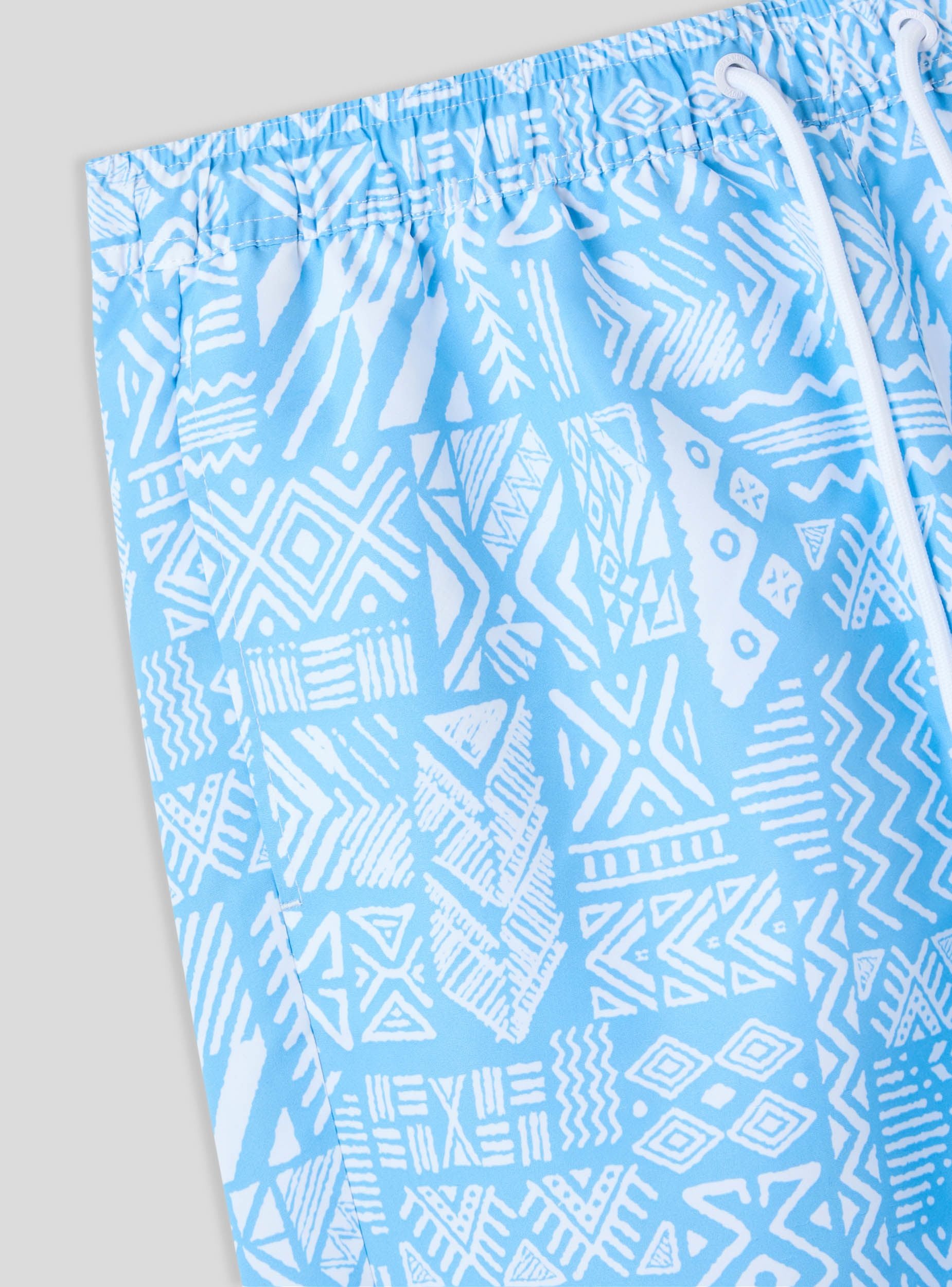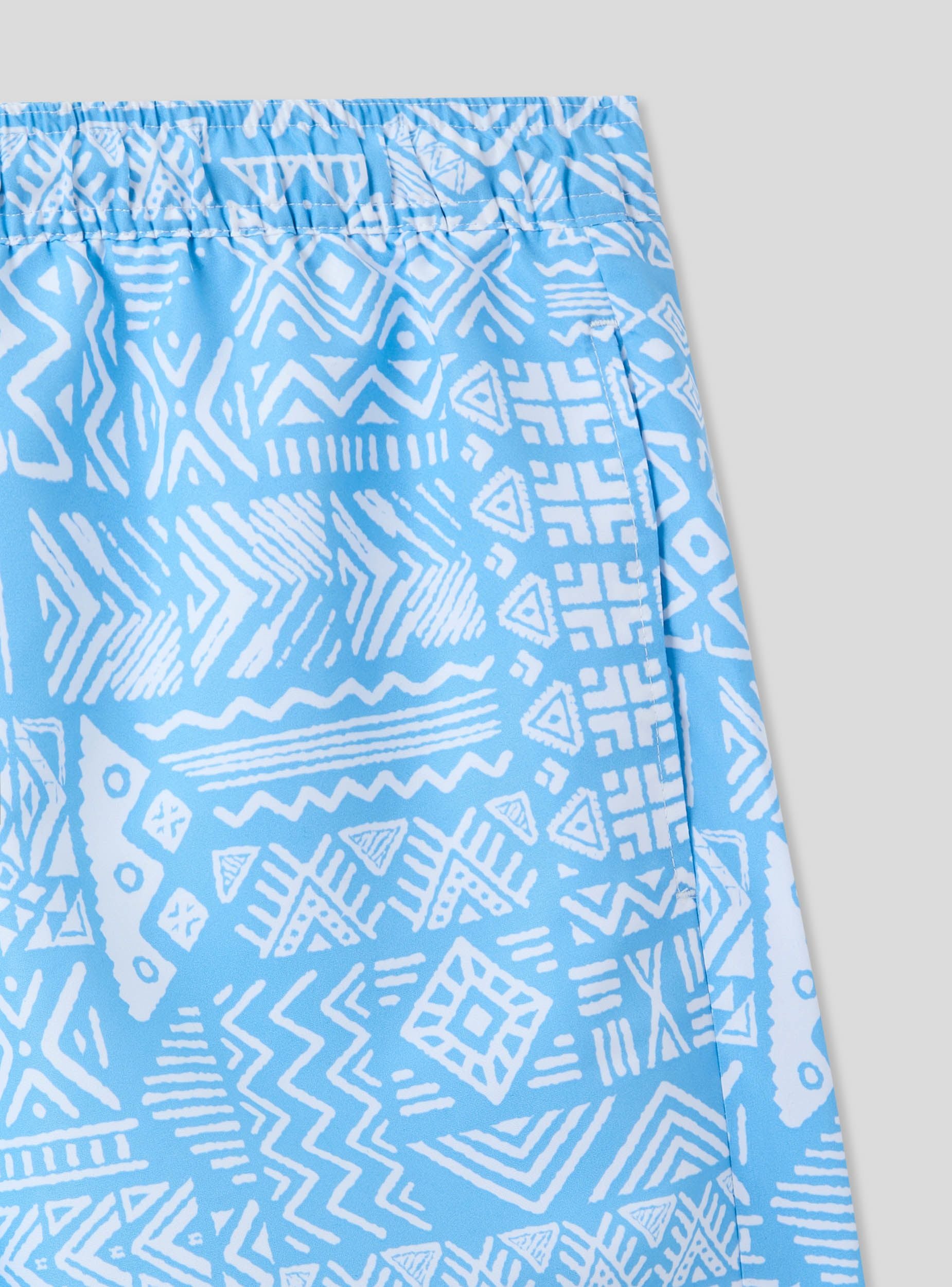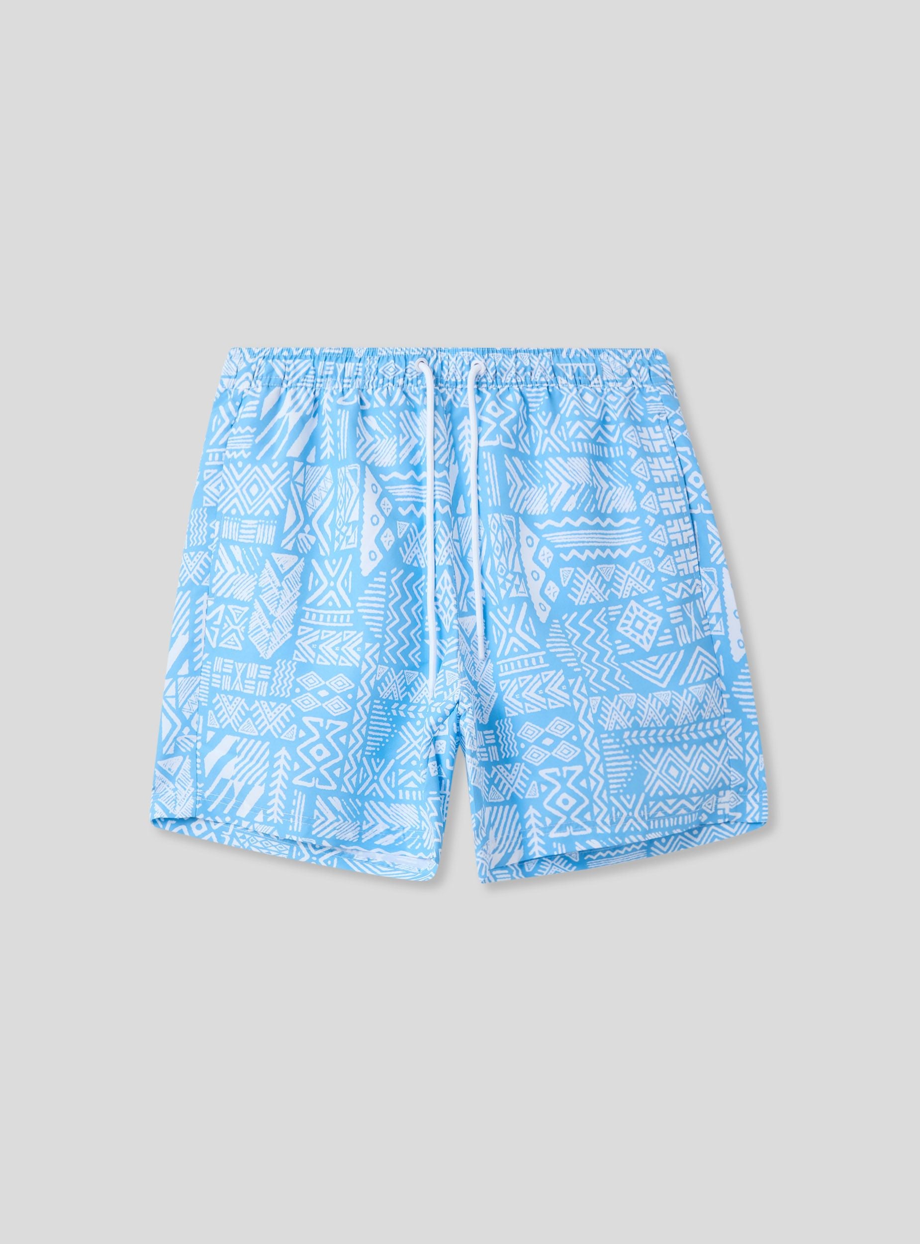 Herren-Badehose mit originellem Design, diese Bermudas mit ethnischem Muster sind ideal für einen markanten Look am Strand oder im Schwimmbad. Der verstellbare Kordelzug sorgt für eine perfekte Passform, während die Seitentaschen Praktikabilität bieten. Die hintere Tasche mit Klettverschluss fügt ein funktionales Detail hinzu. Perfekt kombinierbar mit einem T-Shirt und Flip-Flops für einen stilvollen Sommer.