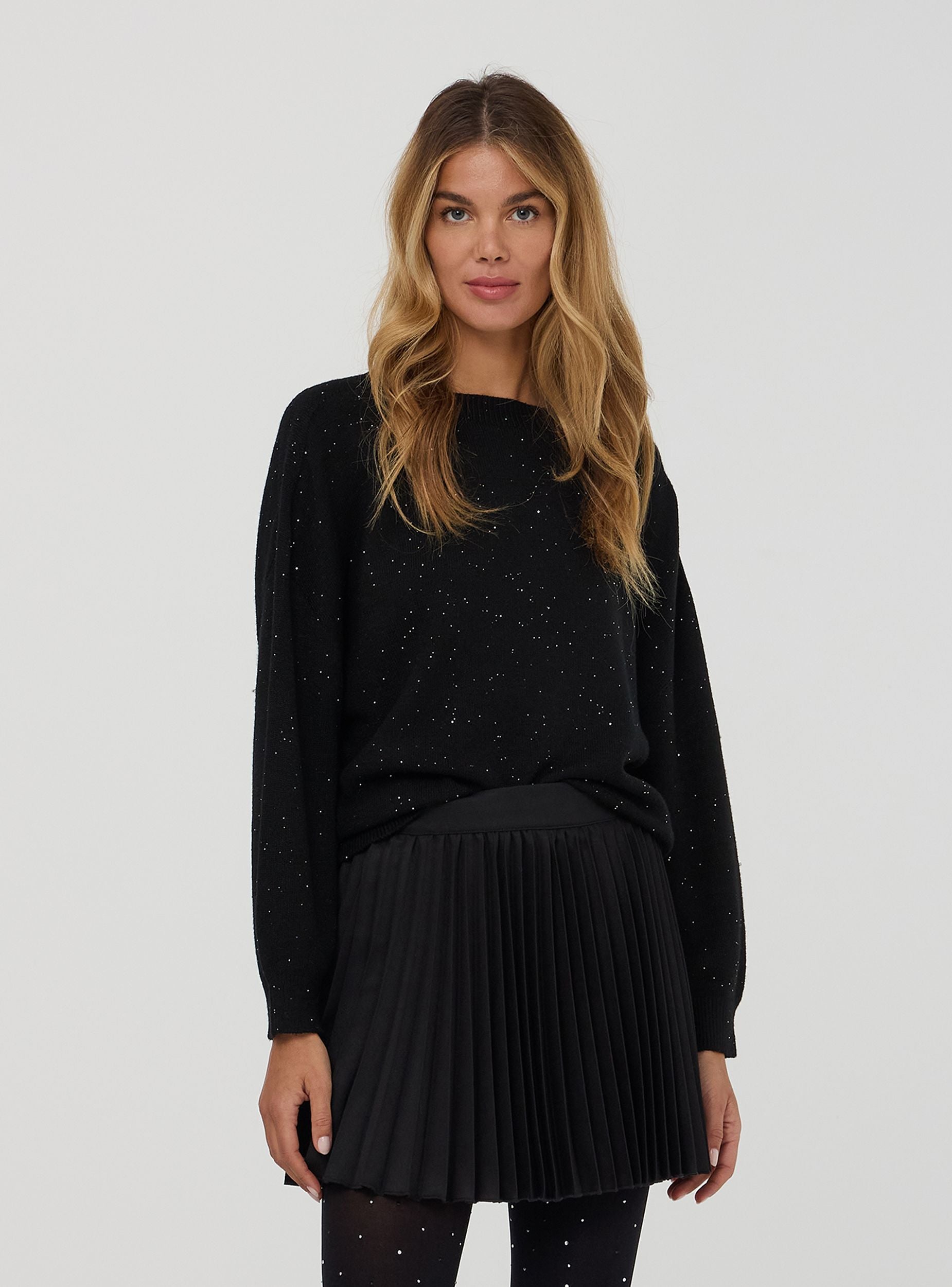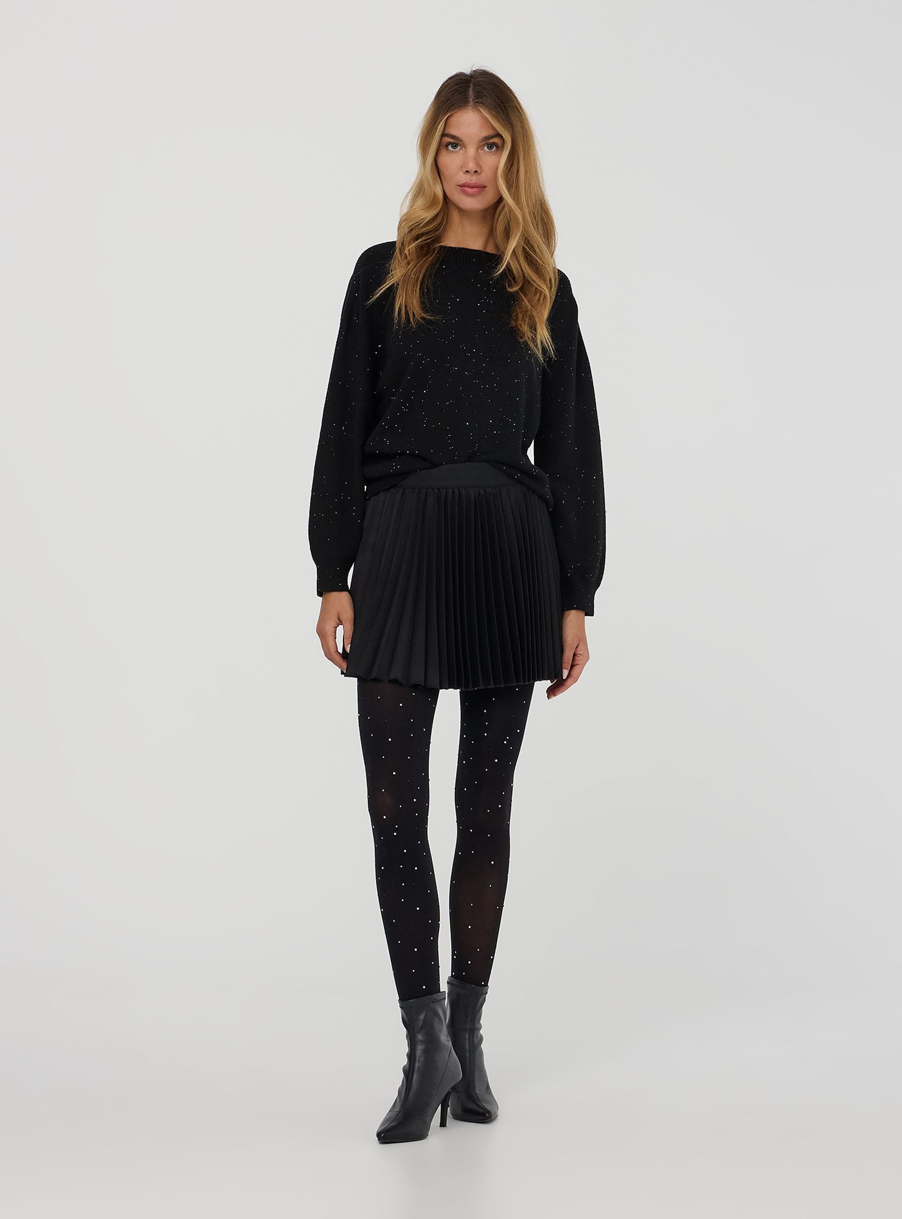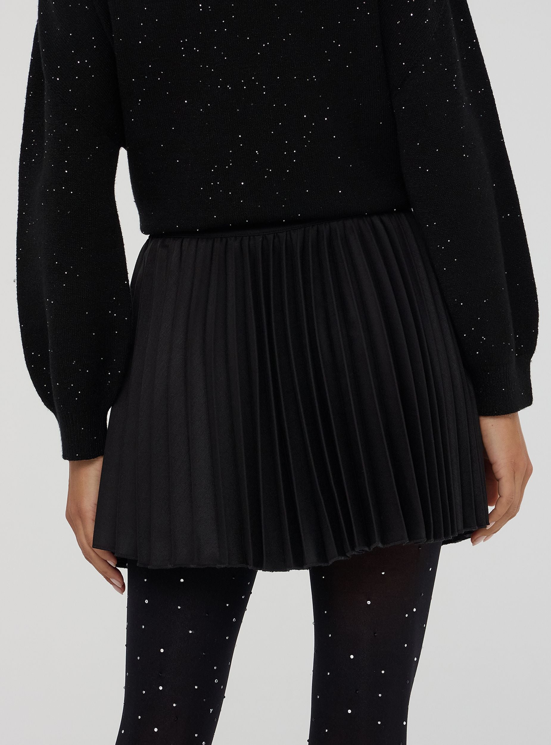 Faltrock für Damen, ideal für einen dynamischen und modischen Look. Die Plissee-Struktur verleiht Bewegung und einen Hauch von lässiger Eleganz, perfekt, um deinem Alltagsoutfit ein raffiniertes Detail hinzuzufügen. Mit einer leicht ausgestellten Silhouette betont sie die Figur und sorgt für ein frisches und lässiges Erscheinungsbild. Dieser kurze Rock passt zu verschiedenen Stilen und ist sowohl mit flachen Schuhen als auch mit Stiefeletten perfekt kombinierbar. Ein vielseitiges Kleidungsstück, das zum Must-have für alle wird, die einen femininen und zeitgenössischen Look lieben, geeignet für verschiedene Anlässe und leicht mit Tops und Blusen kombinierbar.