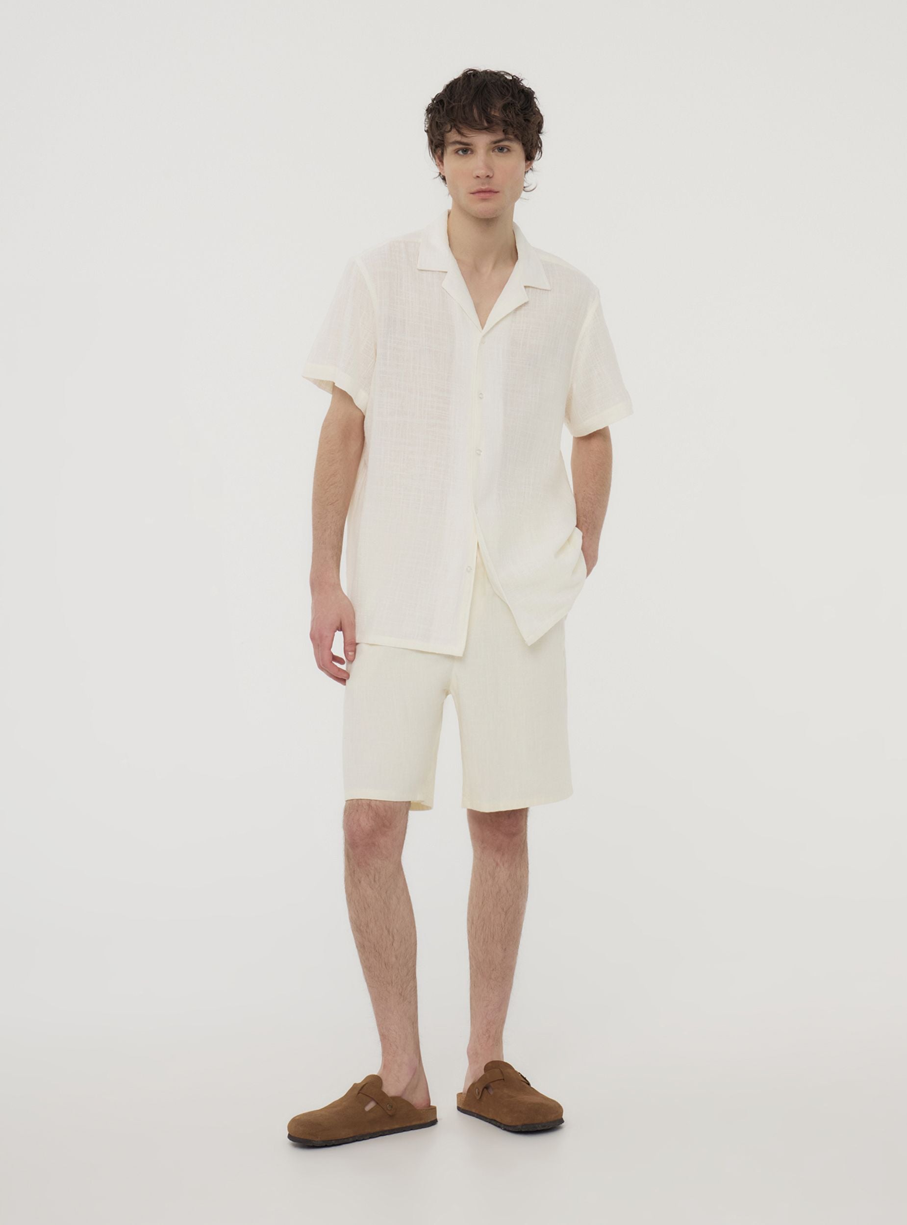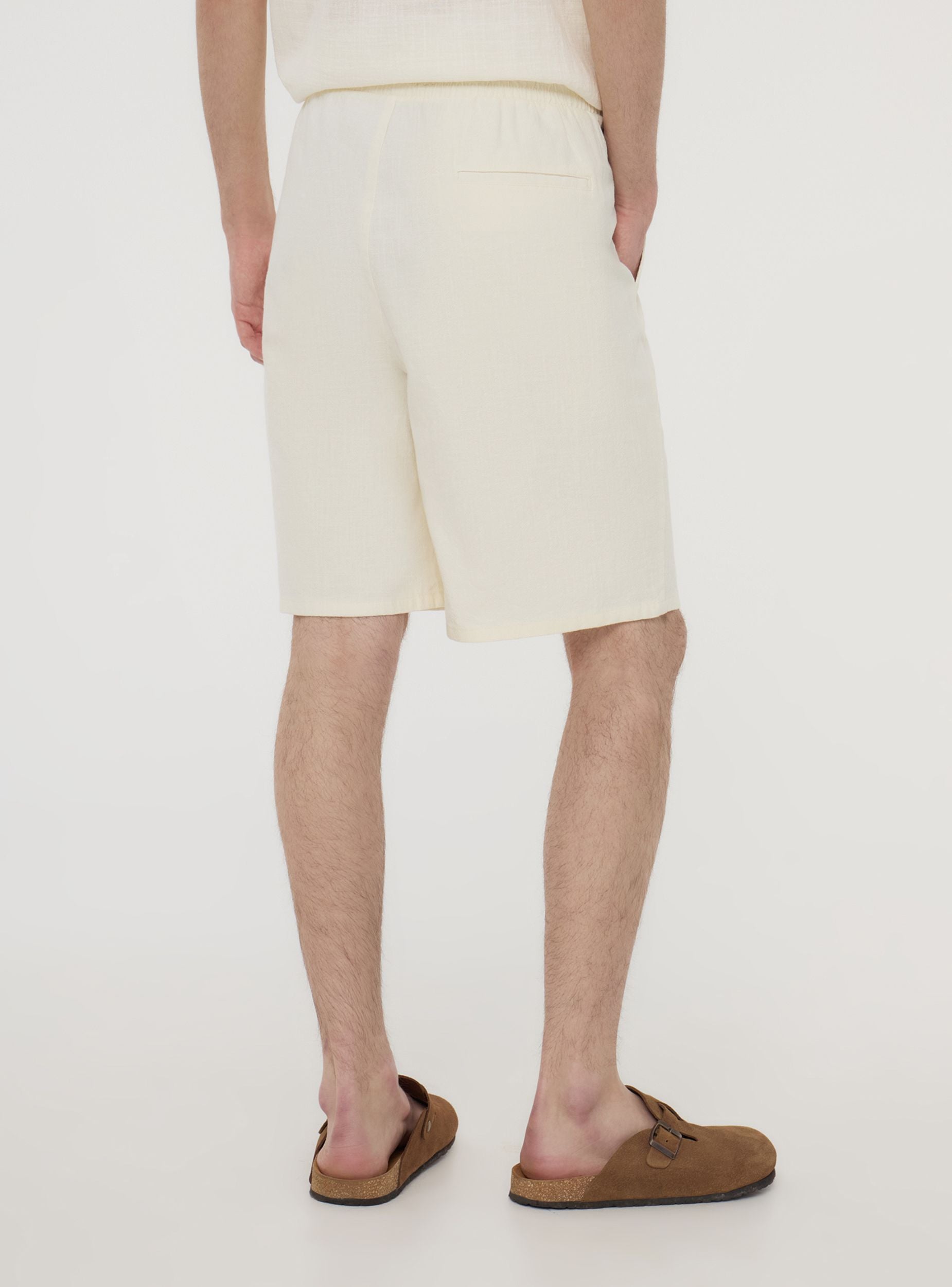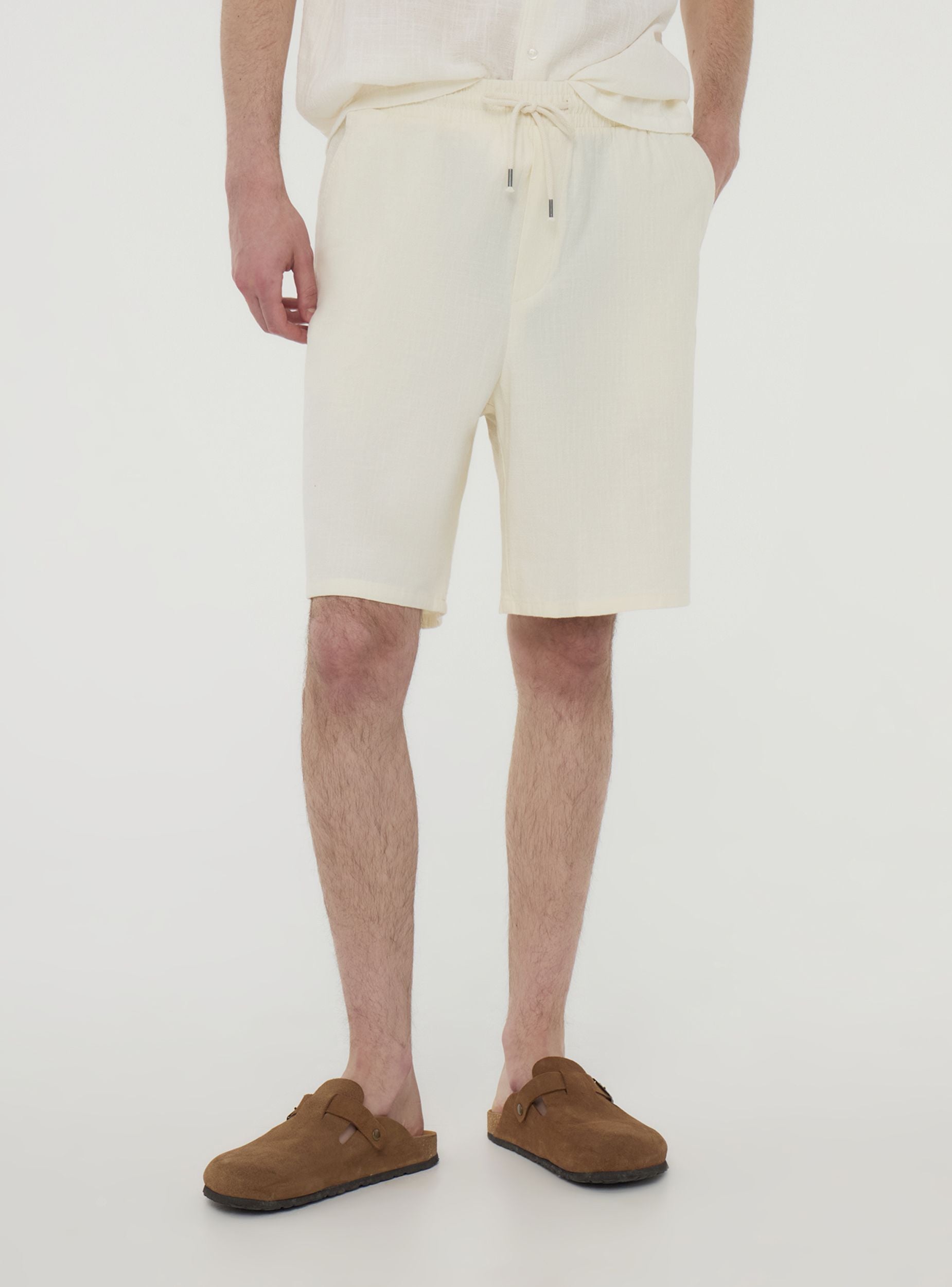 Herren-Shorts, ideal für einen lässigen und entspannten Look, perfekt für die Freizeit oder für Sommertage. Sie zeichnen sich durch eine reguläre Passform aus, haben einen elastischen Bund mit Kordelzug und seitliche Taschen. Ein vielseitiges und bequemes Kleidungsstück, geeignet für viele informelle Anlässe.Details