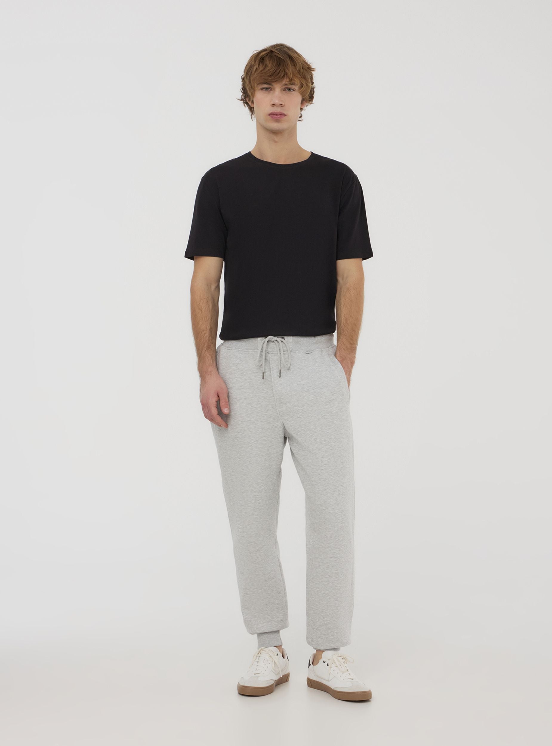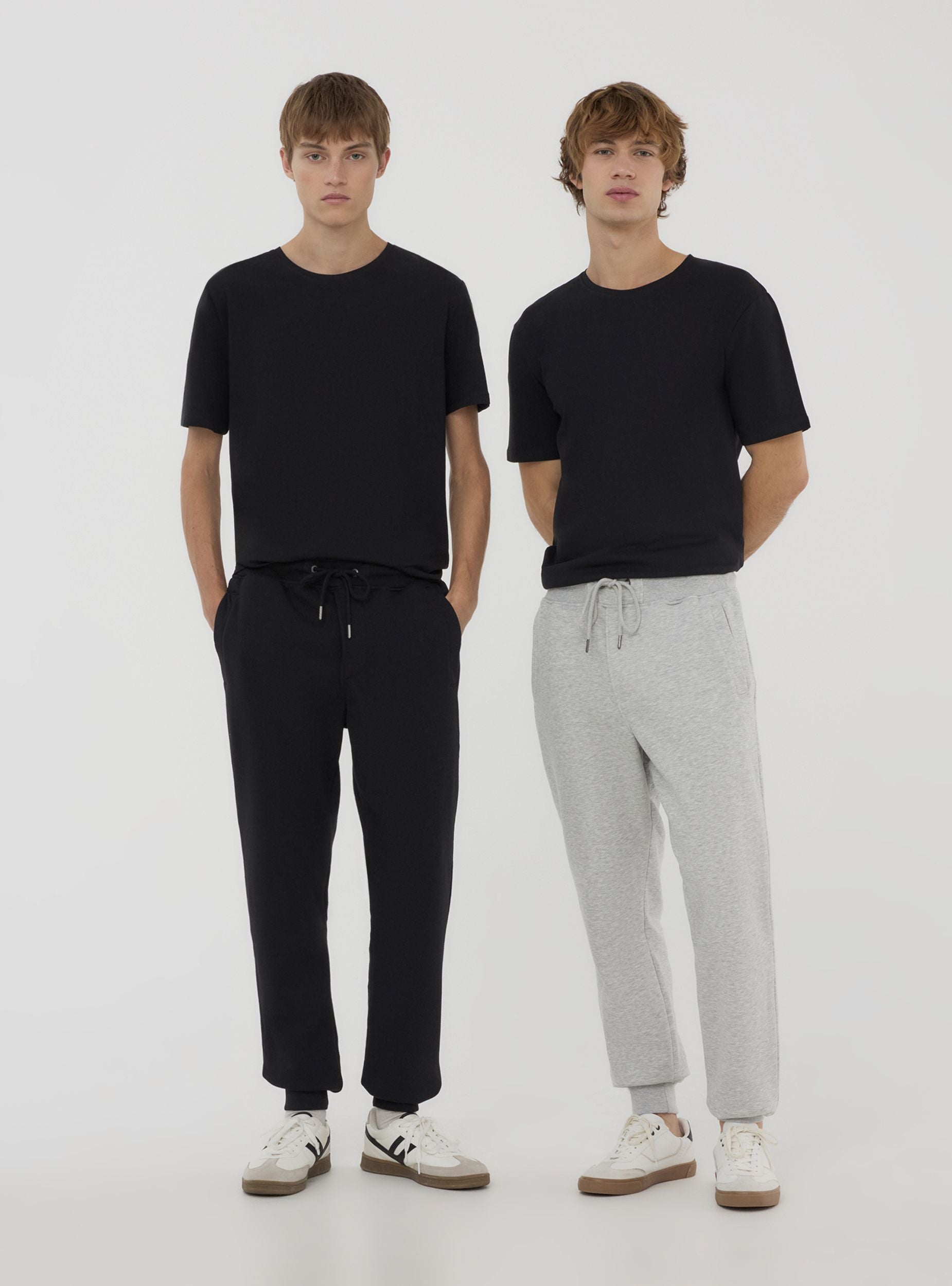 Pack consisting of two pairs of men's joggers. Made from heavy fabric in a solid colour. Model with an elasticated waistband with adjustable drawstrings to ensure a personalised and comfortable fit, side pockets and a back pocket, elasticated cuffs. Perfect for leisure time, moments of relaxation or casual outings.Details
