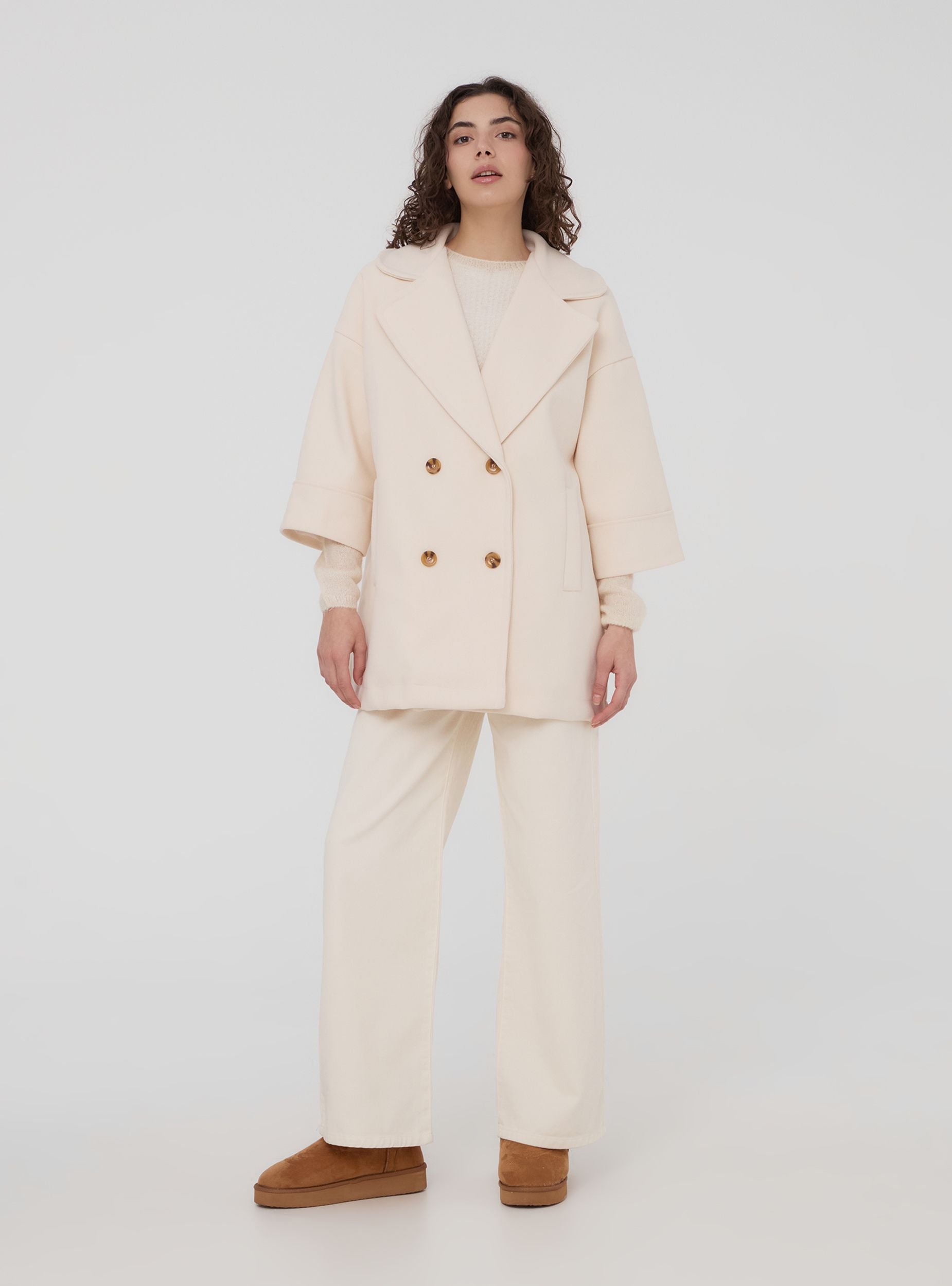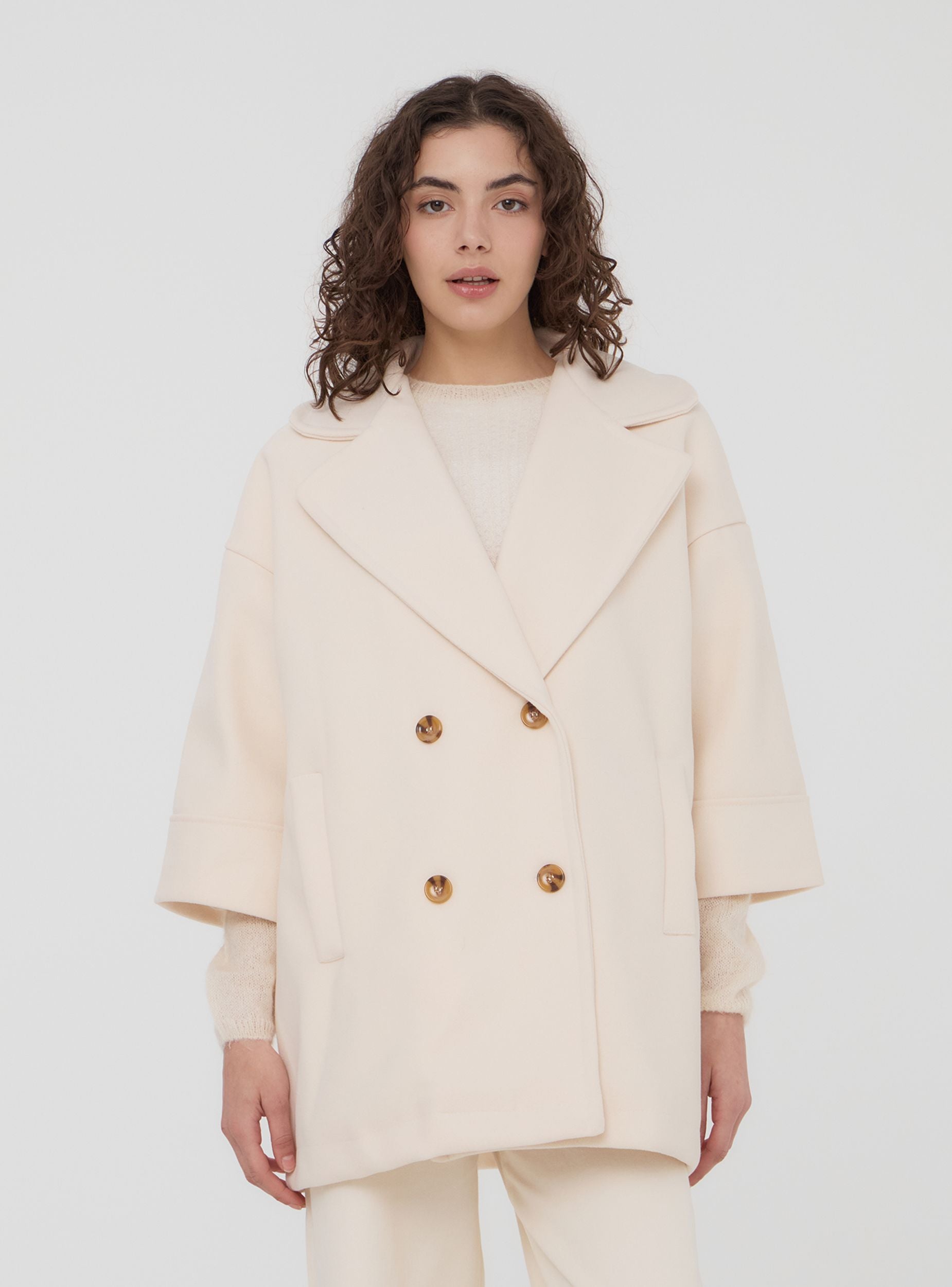 Women's oversized coat with a double-breasted design and buttons that add an elegant touch. The wide sleeves and soft silhouette provide comfort and contemporary style, perfect for tackling cooler days. A versatile and trendy piece, ideal for completing sophisticated or casual looks with a touch of personality.Details