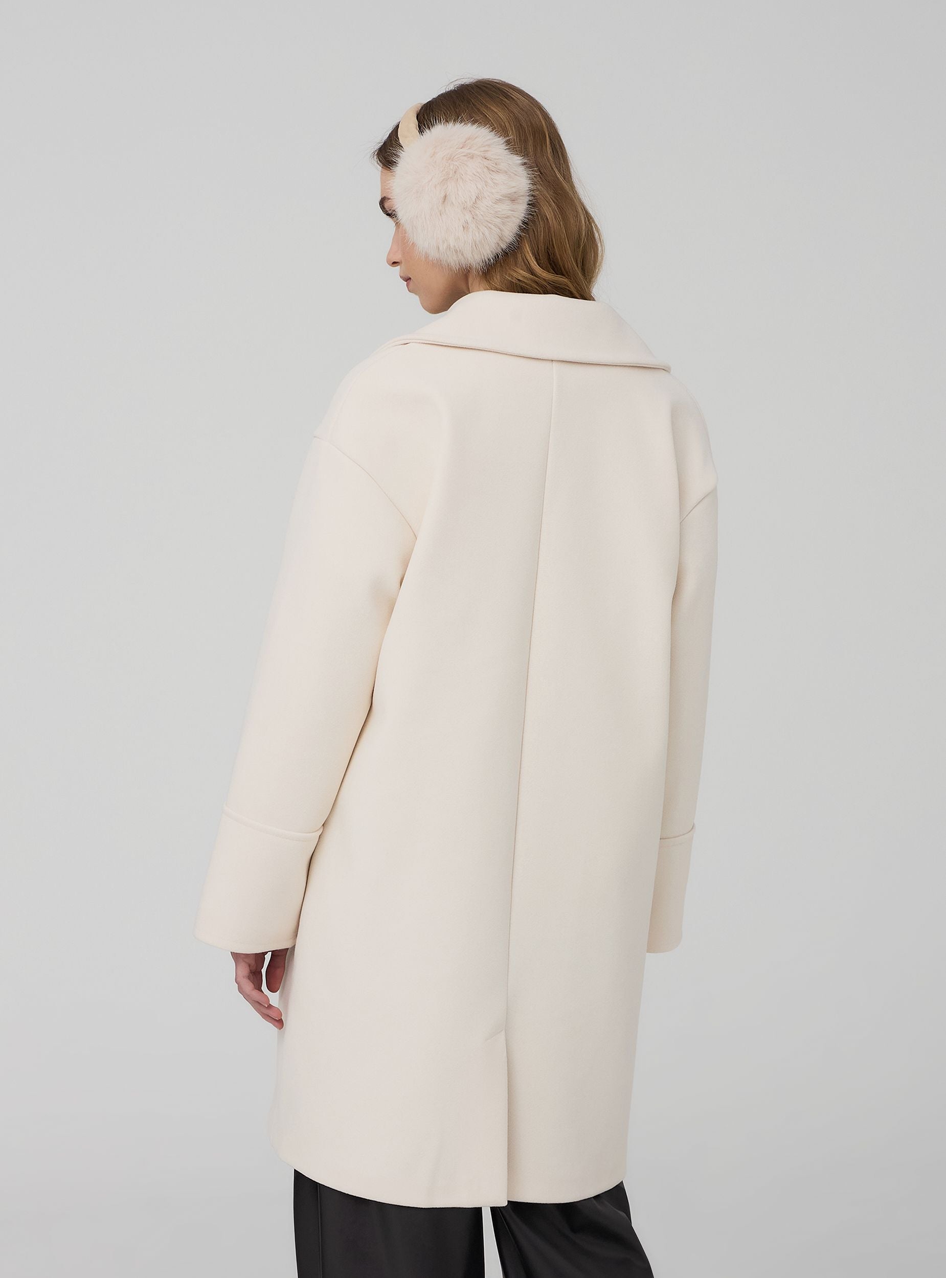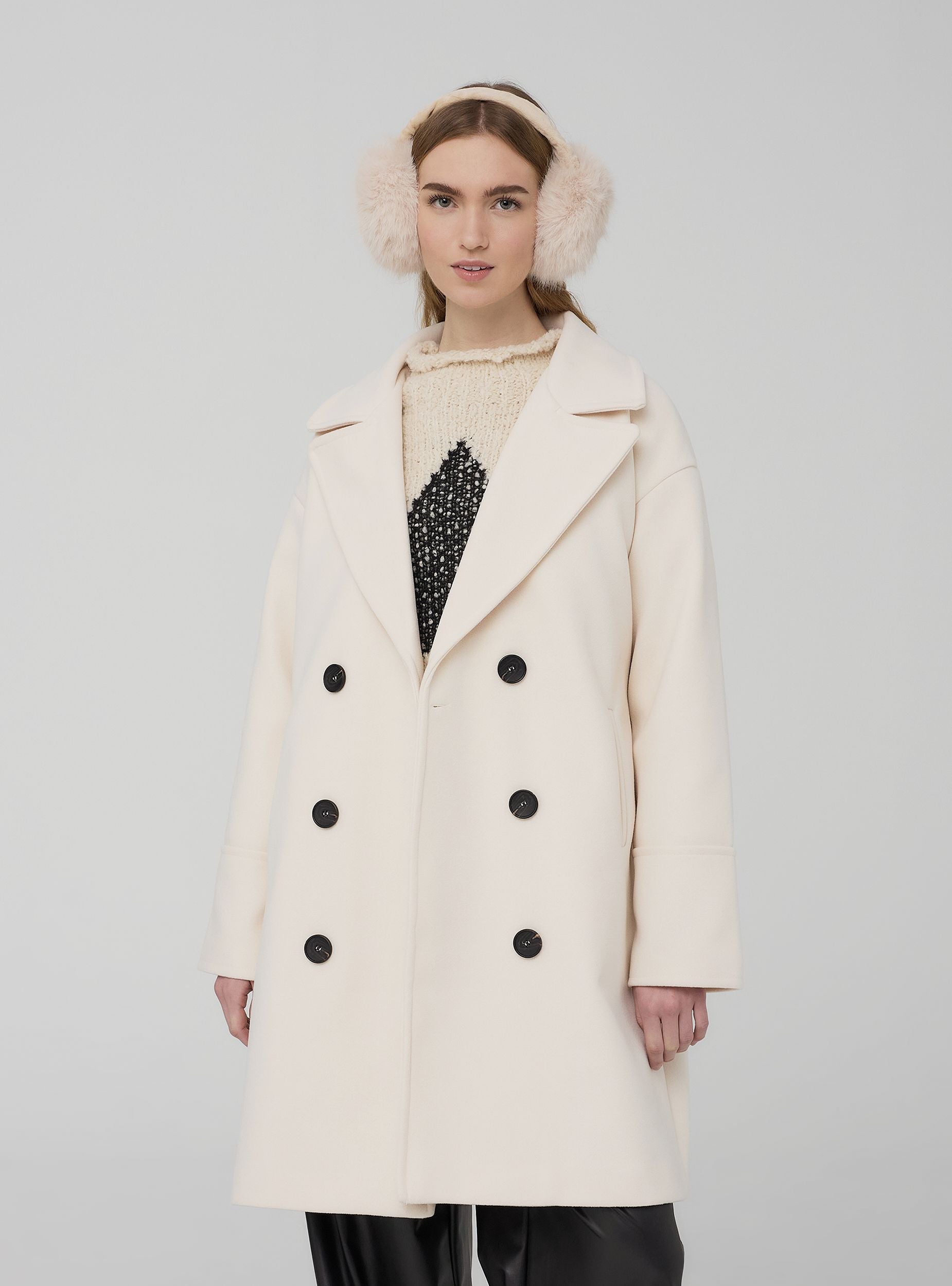 Women's coat with an elegant and versatile design, perfect for the mid-season thanks to the 3/4 length that adds a modern touch without compromising on class. Made in a solid colour, it features a double-breasted closure with buttons that enhance the silhouette, giving it a sophisticated and timeless style. The collar with wide lapels lends the garment an air of refinement, making it ideal for completing both casual and formal looks.Details