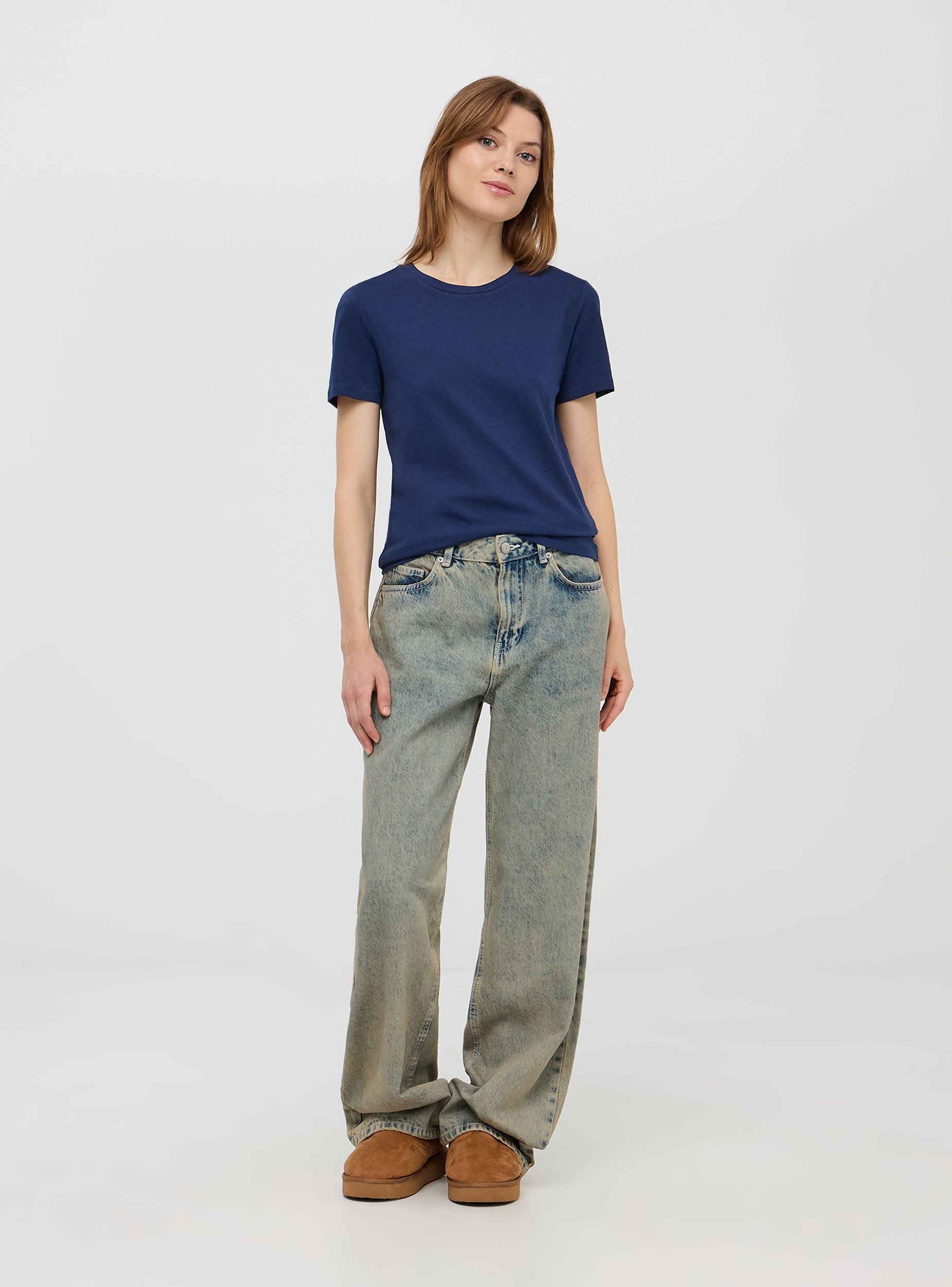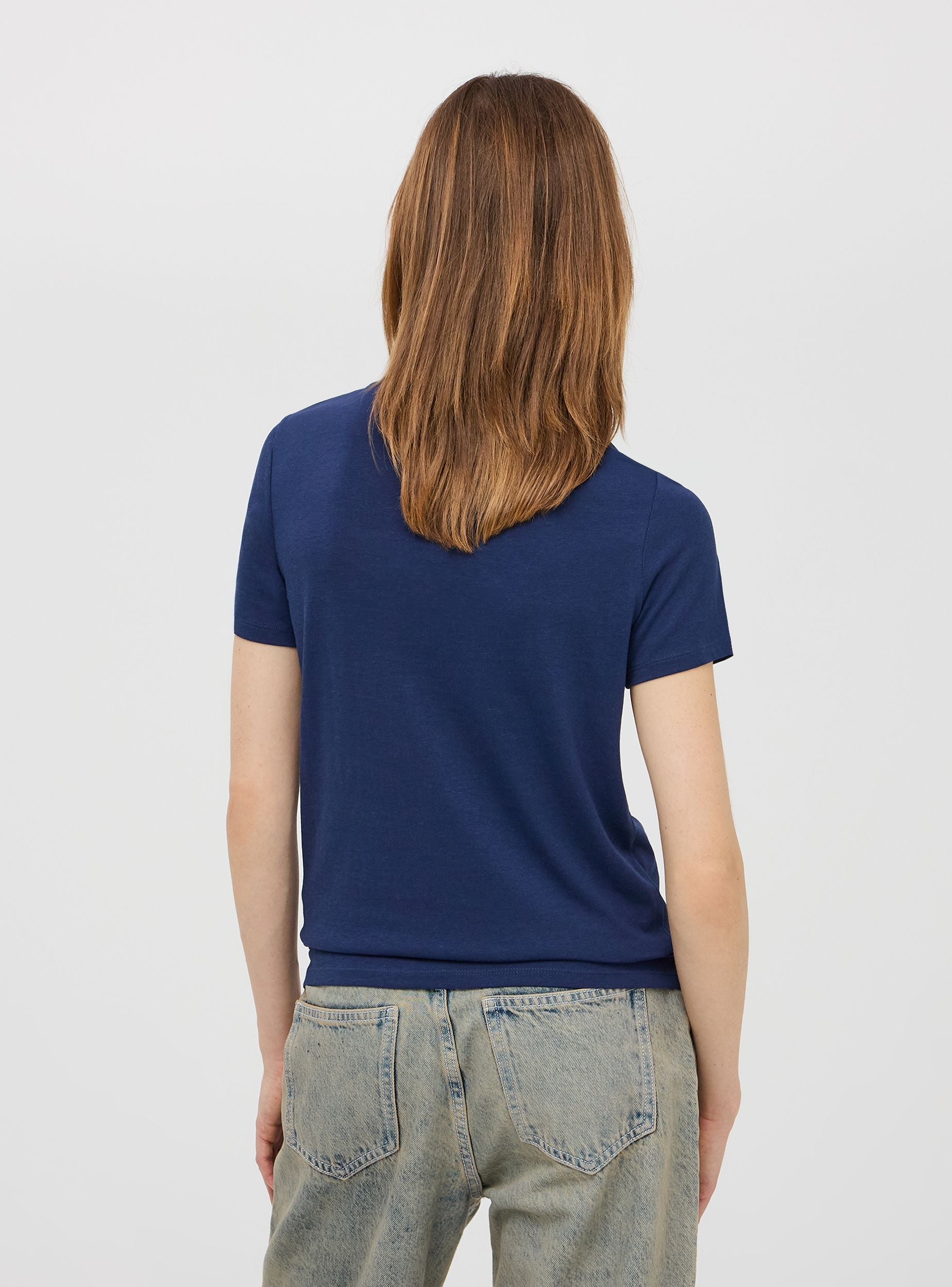 Basic women's t-shirt in cotton jersey. Crew neck model, short sleeves. Regular fit. The model is 1.77m tall and wears size S.Details