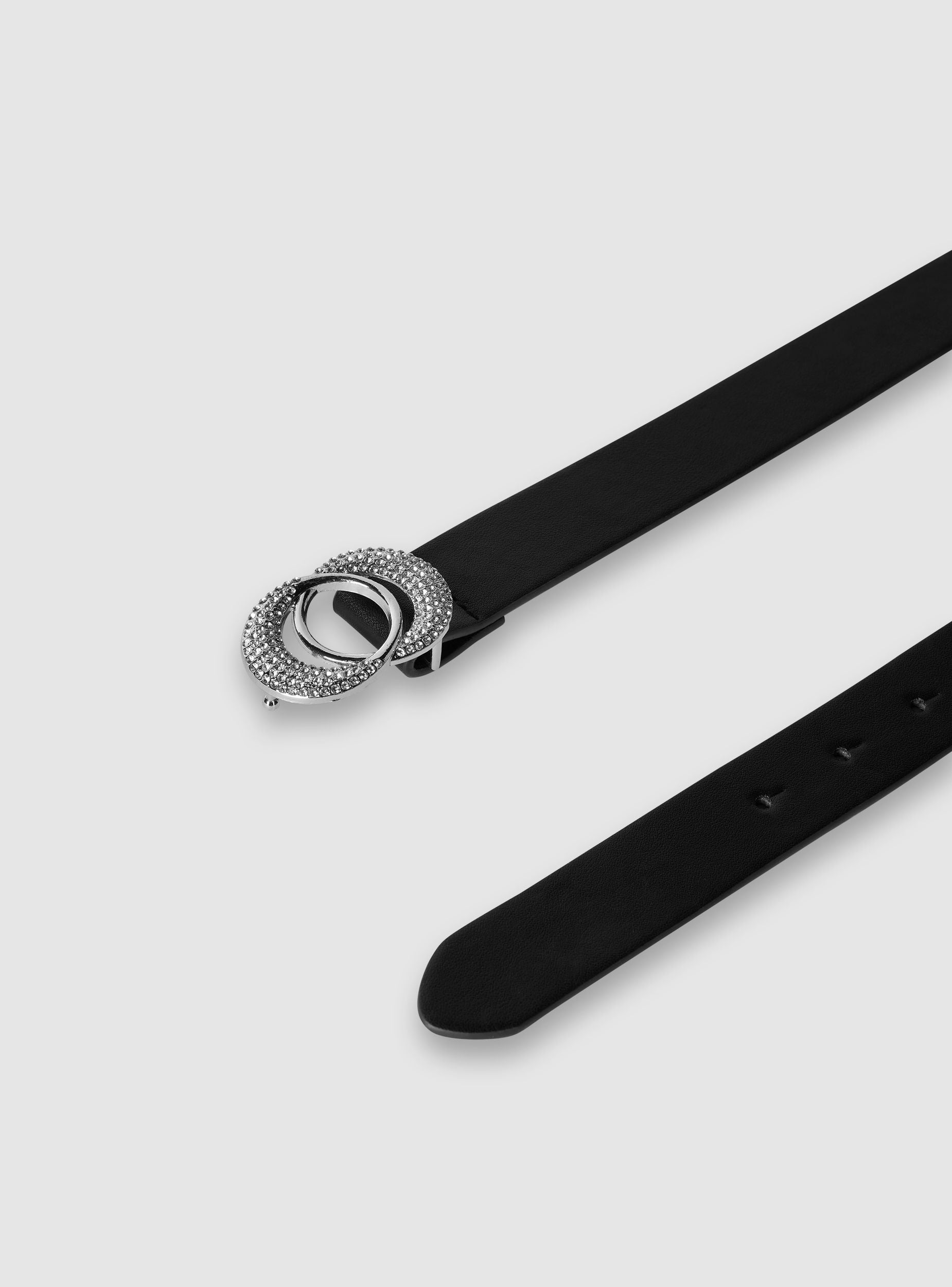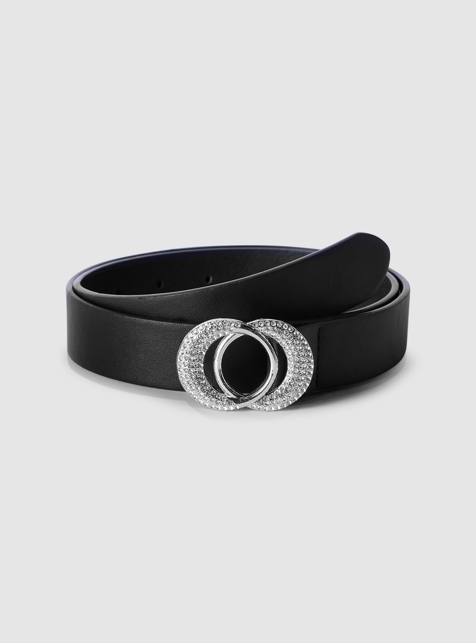 Women's belt perfect for adding a touch of style to any outfit. Ideal for enhancing the silhouette, it pairs easily with trousers, skirts, or dresses. The modern design with a buckle adorned with sparkling details makes it a versatile and trendy accessory, suitable for multiple occasions. An essential item to enrich the wardrobe with elegance and practicality.Details