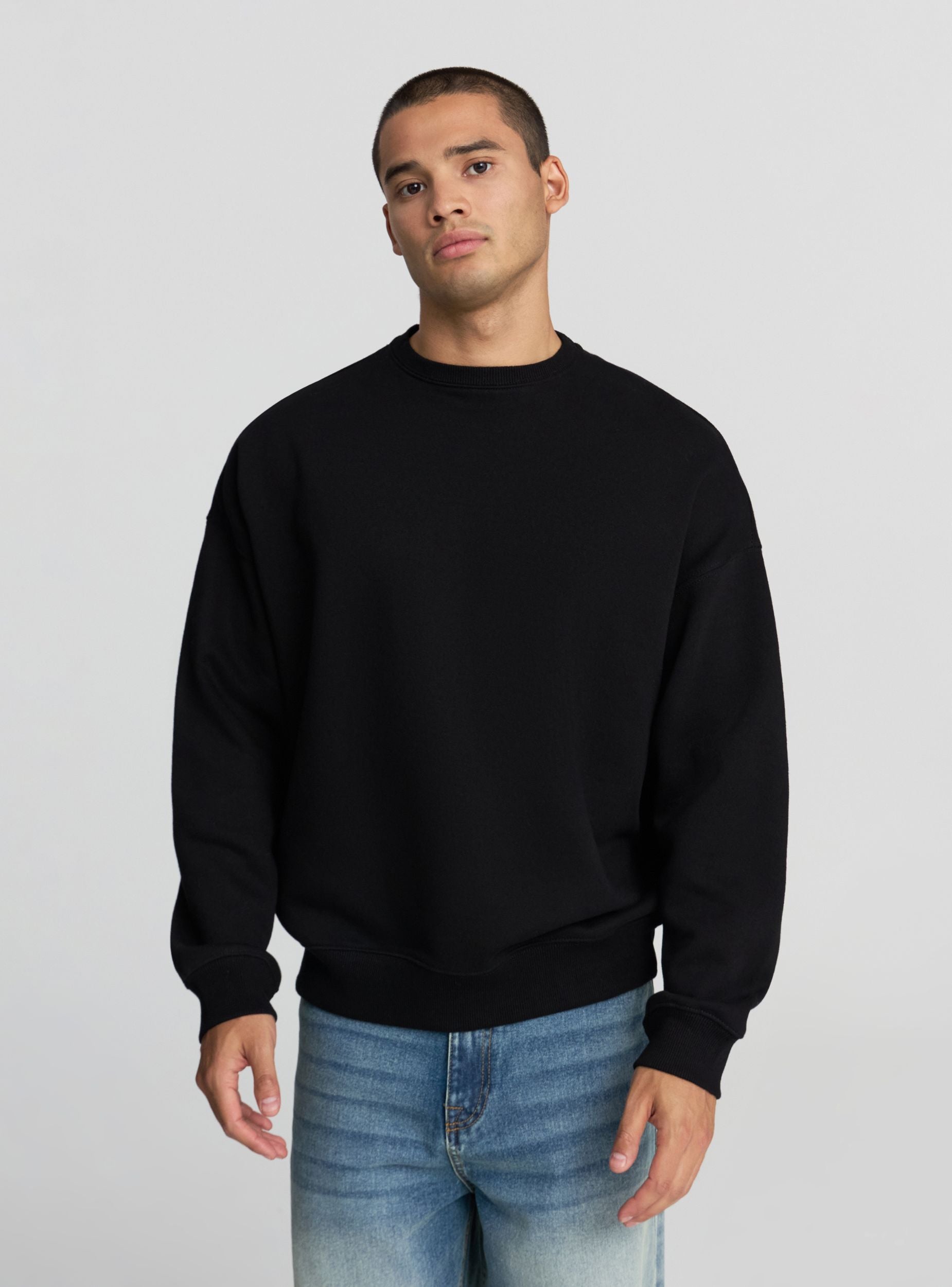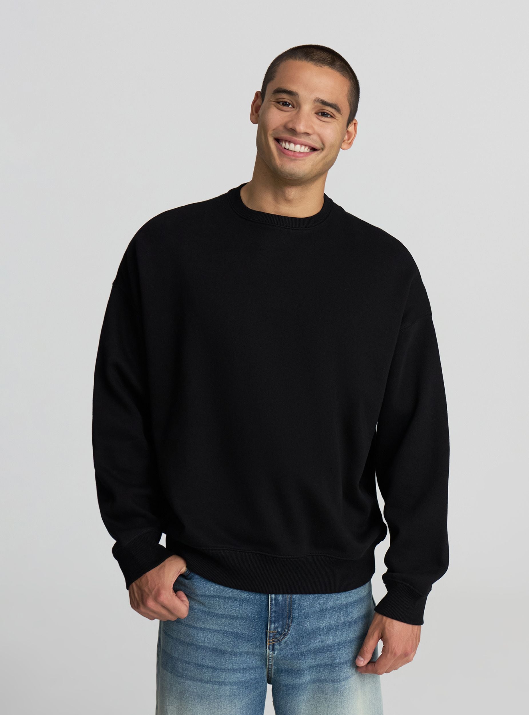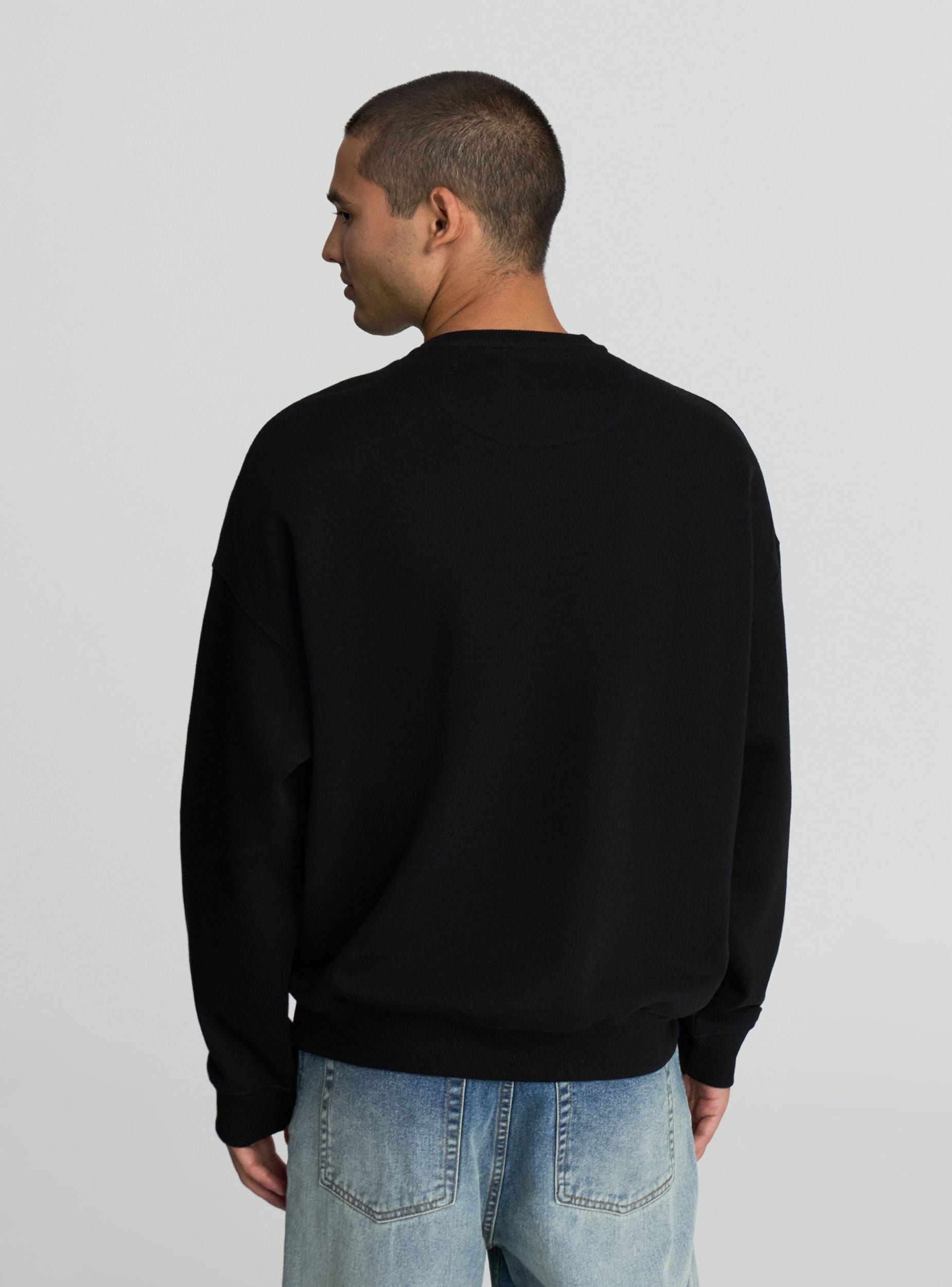 Heavyweight men's sweatshirt without a hood and without a zip, ideal for a casual and relaxed look. Perfect for relaxing days or an urban outfit, it pairs easily with jeans or joggers. The boxy fit design ensures comfort and style. Featuring a crew neck and long sleeves. A versatile piece to enrich your everyday wardrobe.Details