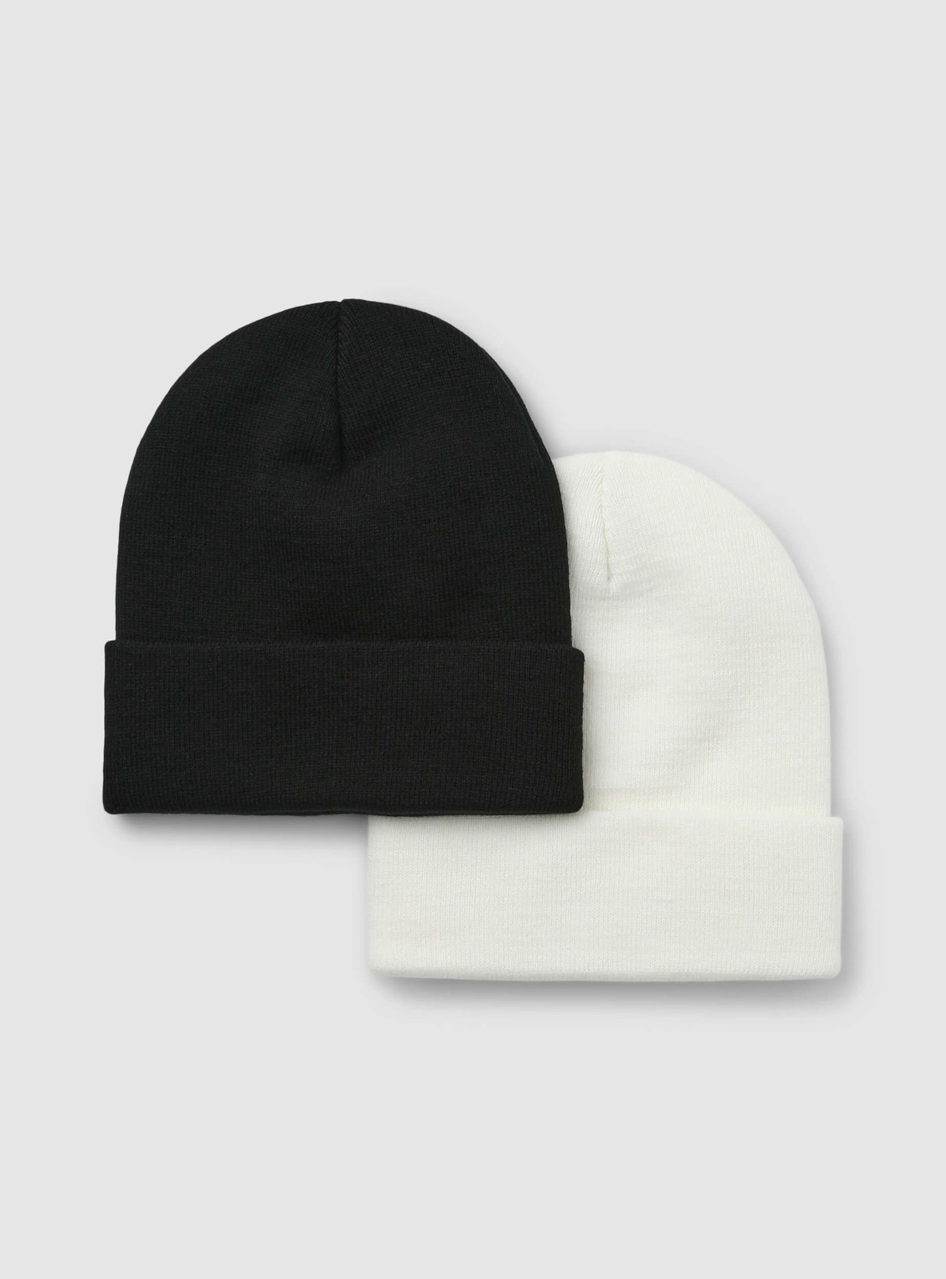 Pack containing 2 men's hats in plain fabric. Featuring a simple design with a turned-up brim, they ensure comfort and a snug fit. Perfect for completing your casual look during cold days. Ideal for leisure, outdoor activities, or casual wear.
